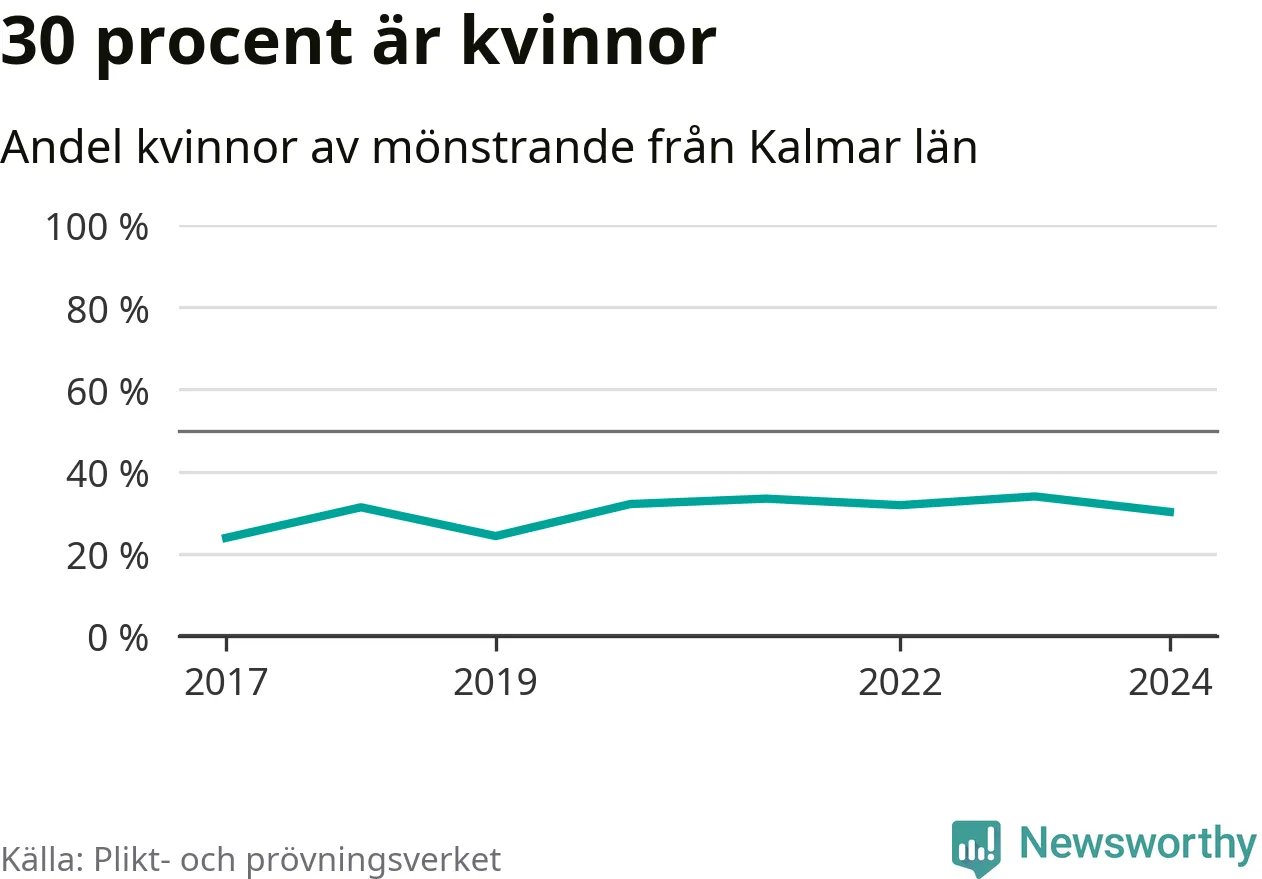 Av de som skrivits in till någon av Försvarmaktens grundutbildningar det senaste året, från juni 2023 till mars i år, kommer 187 (153 män och 34 kvinnor) från Kalmar län. 147 av dessa antogs efter att ha kallats till mönstring.