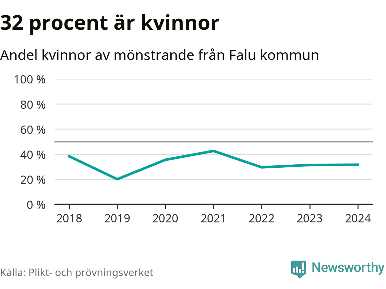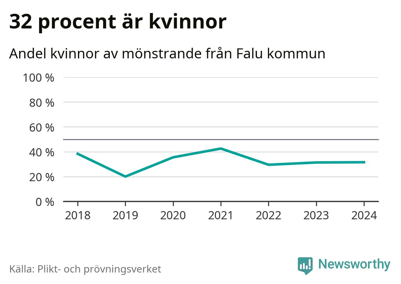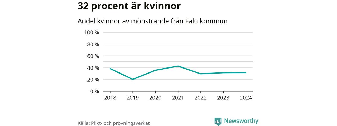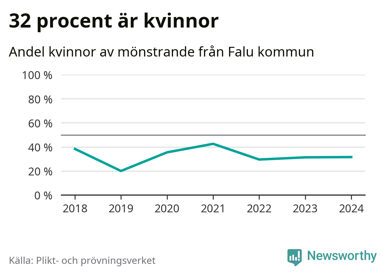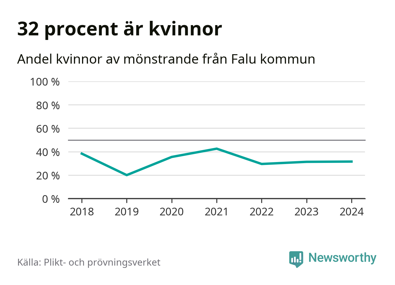 53 av de som kallats till mönstring från Falun är kvinnor, vilket motsvarar 32 procent av de mönstrande. I absoluta tal är det fler kvinnor än något år sedan värnplikten återinfördes, men 2021 var en större andel av de mönstrande från kommunen kvinnor (43 procent). I riket som helhet är 30 procent av de mönstrande tjejer.
