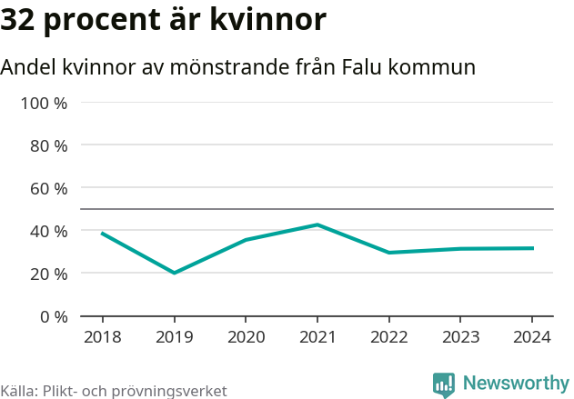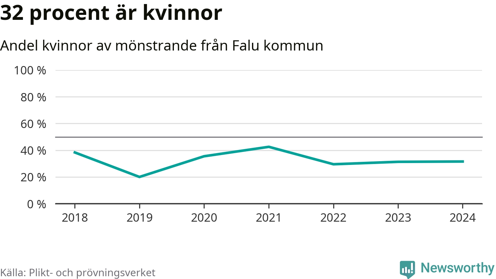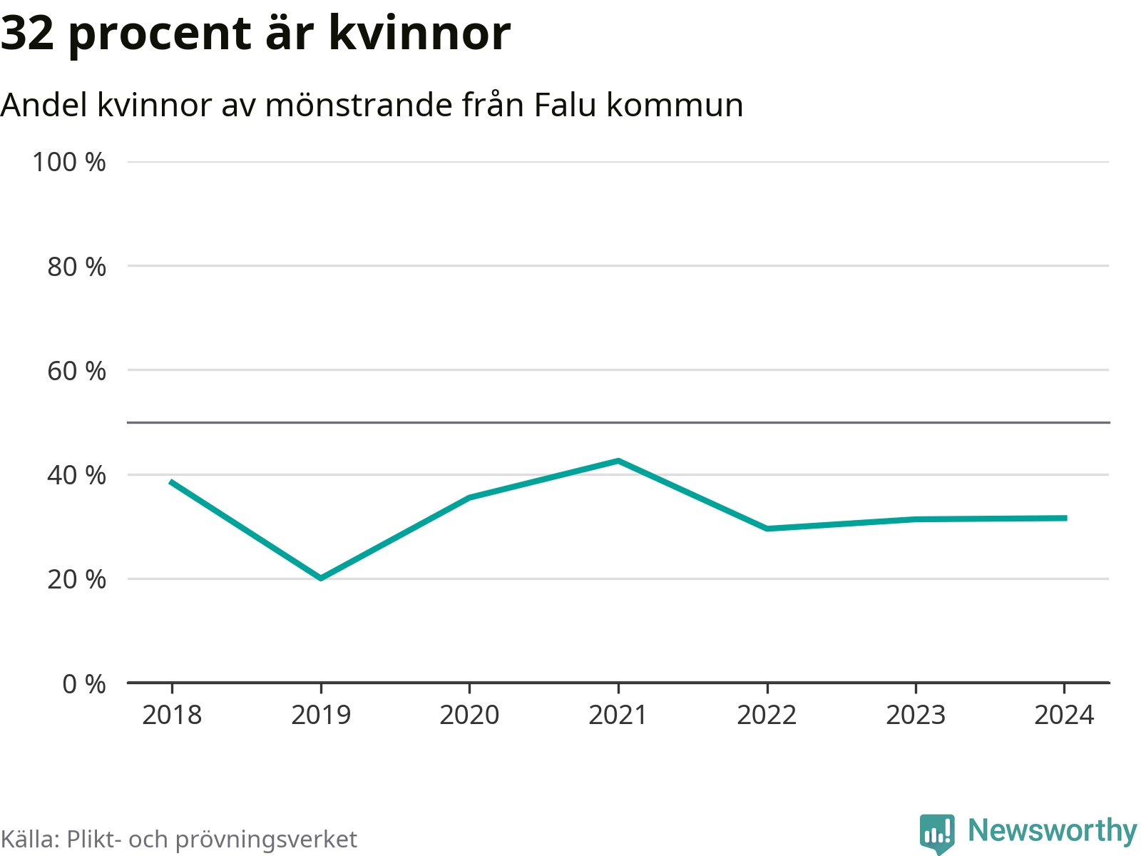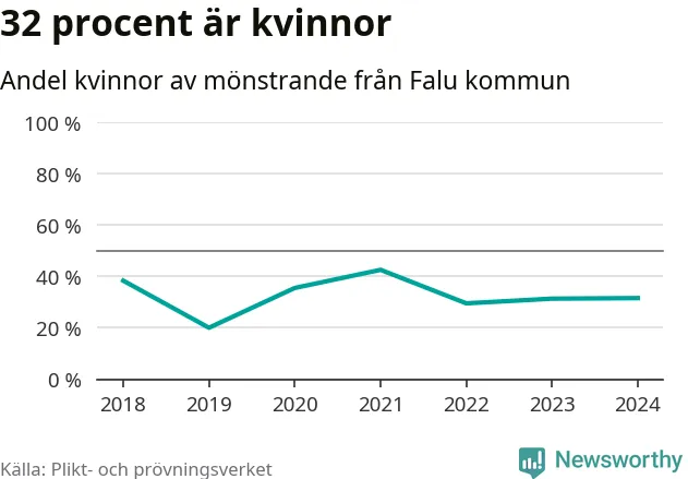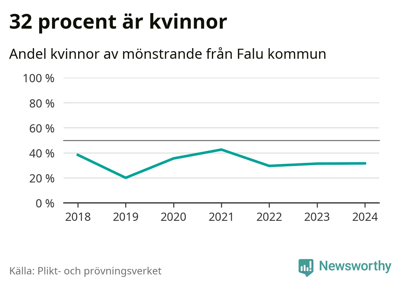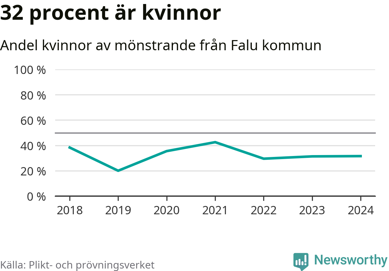 53 av de som kallats till mönstring från Falun är kvinnor, vilket motsvarar 32 procent av de mönstrande. I absoluta tal är det fler kvinnor än något år sedan värnplikten återinfördes, men 2021 var en större andel av de mönstrande från kommunen kvinnor (43 procent). I riket som helhet är 30 procent av de mönstrande tjejer.