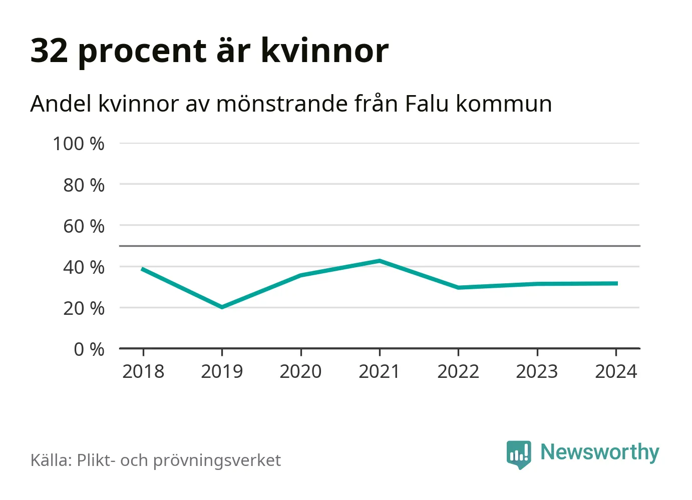 Av de som skrivits in till någon av Försvarmaktens grundutbildningar det senaste året, från juni 2023 till mars i år, kommer 60 (45 män och 15 kvinnor) från Falun. 51 av dessa antogs efter att ha kallats till mönstring.