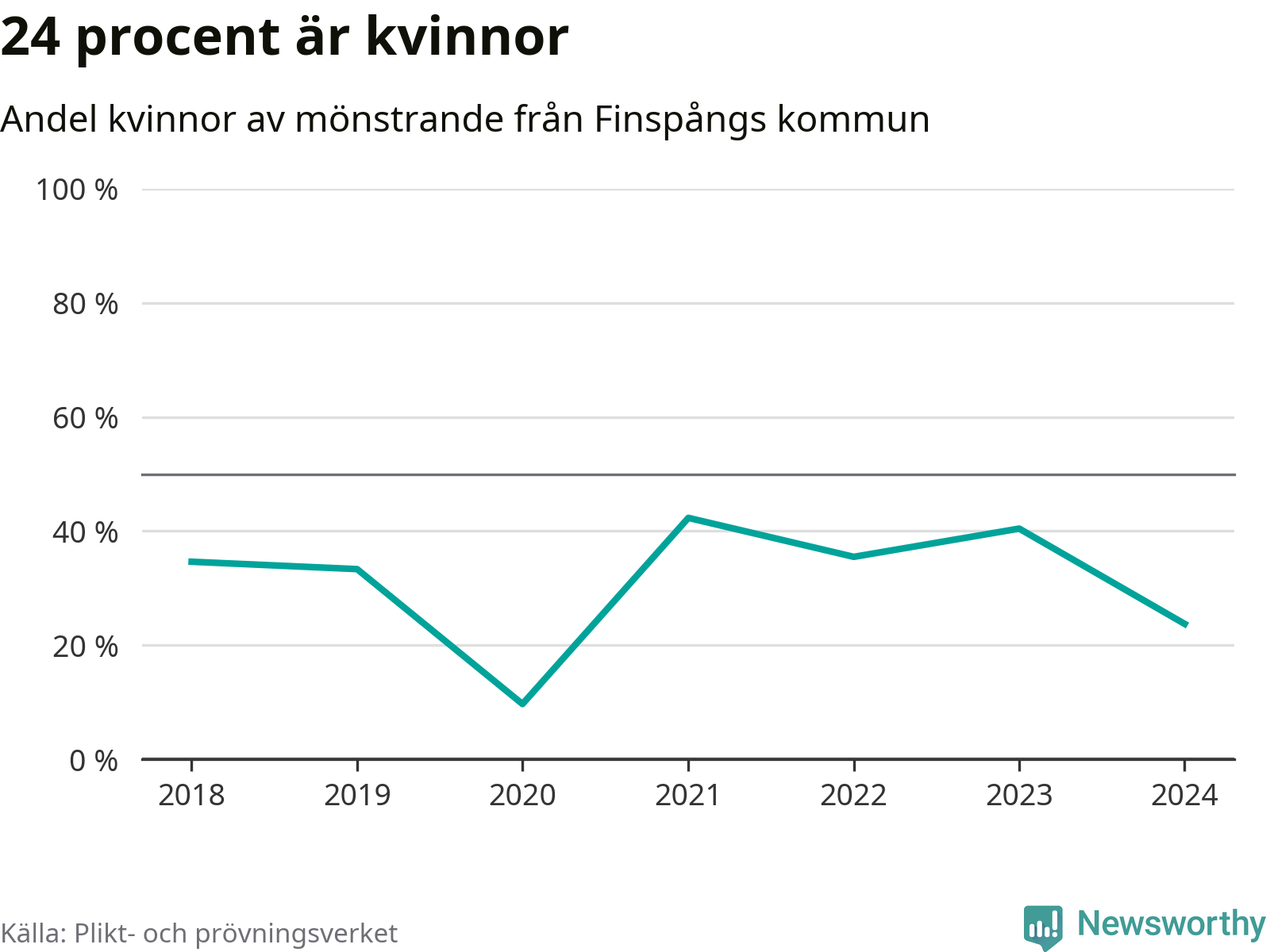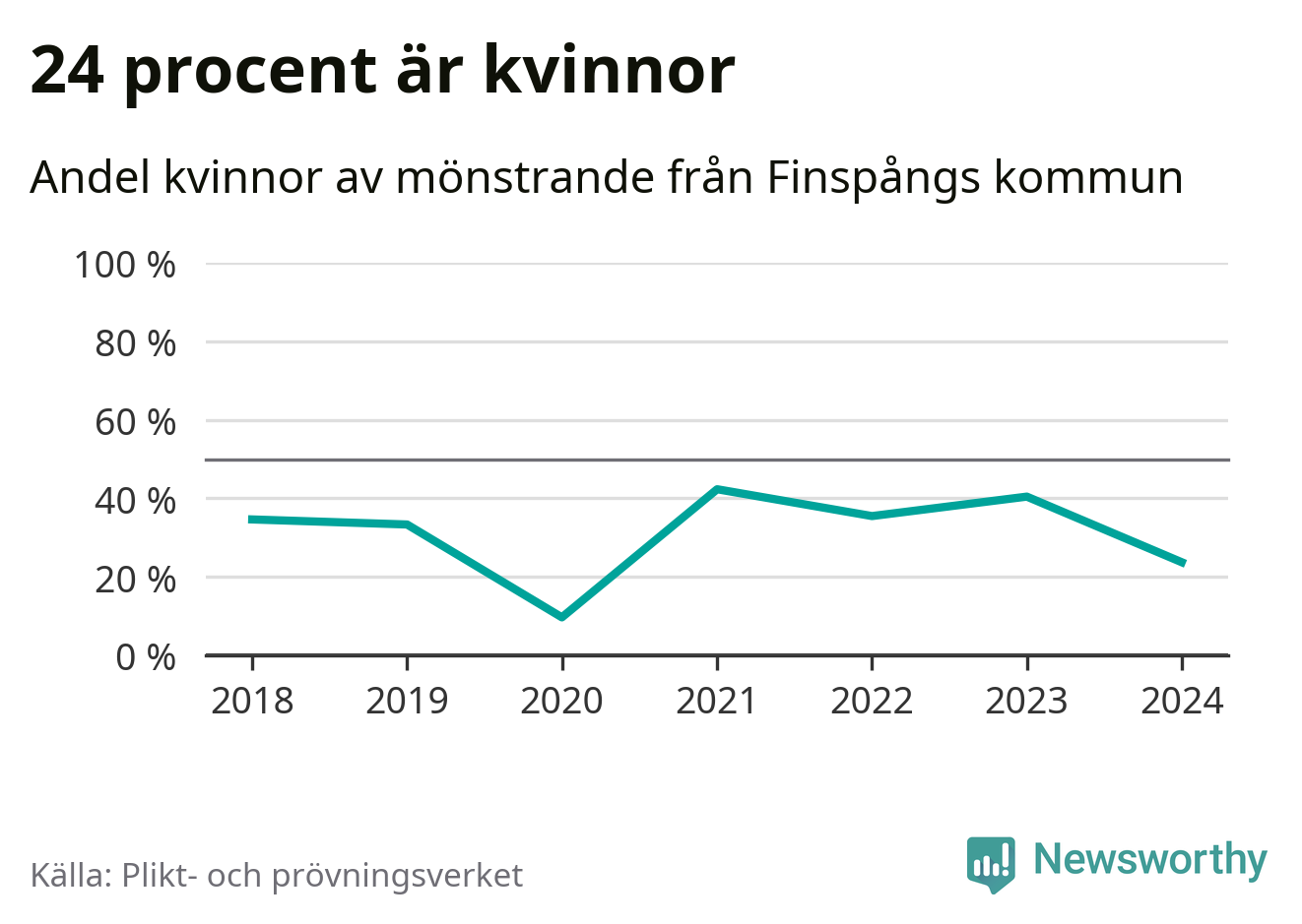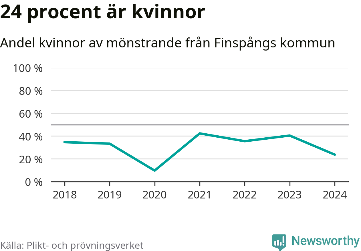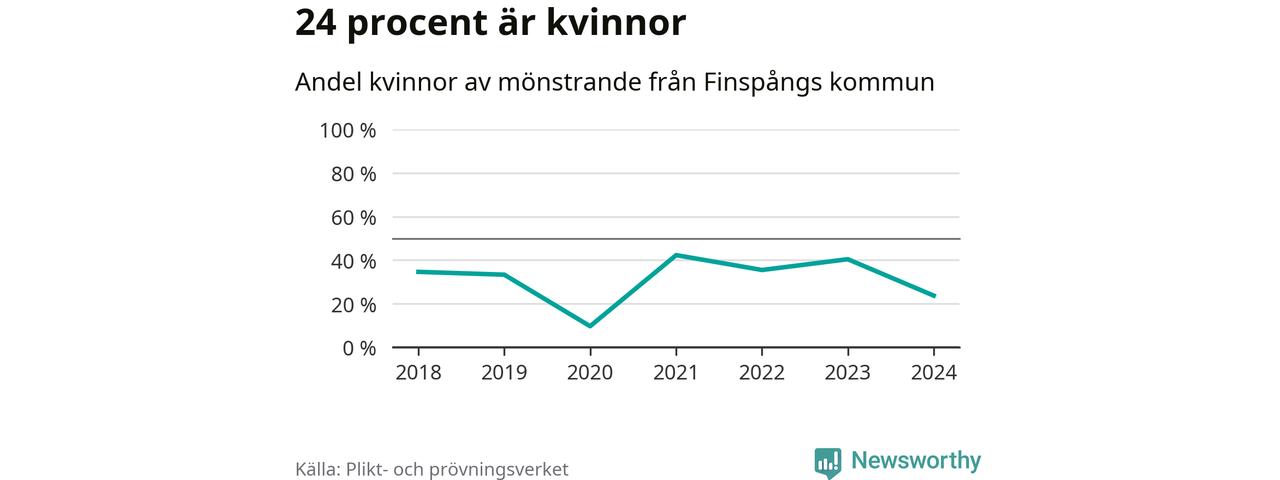 14 av de som kallats till mönstring från Finspång är kvinnor, vilket motsvarar 24 procent av de mönstrande. Som mest har 19 kvinnor kallats från kommunen (2023). I riket som helhet är 30 procent av de mönstrande tjejer.