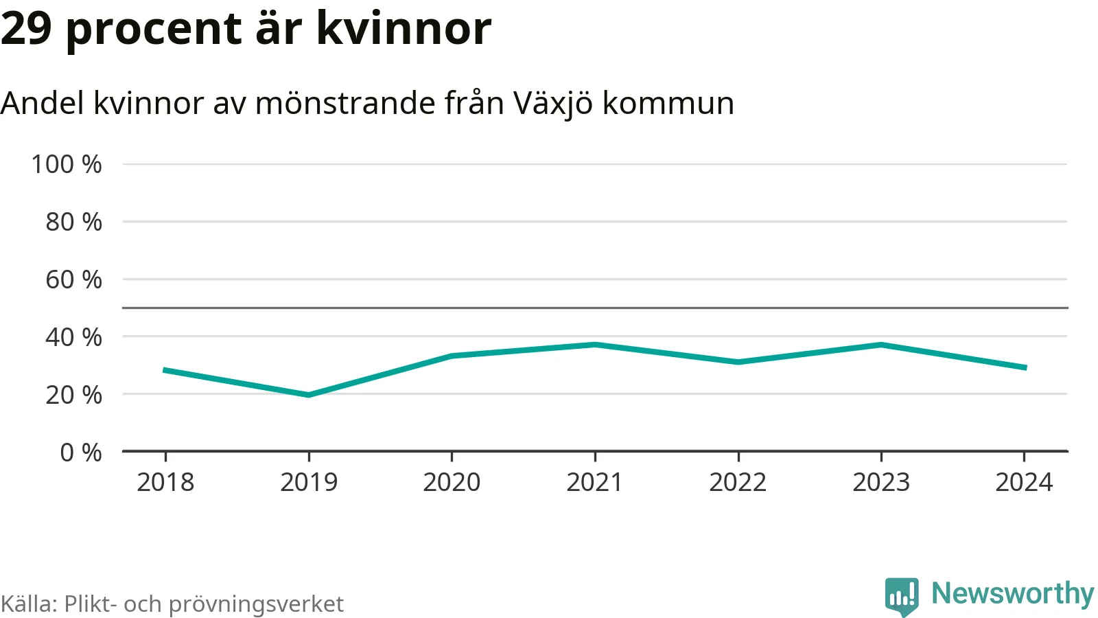 Nu kallas 27 900 svenskar födda 2006 till mönstring. Och 299 av dem kommer från Växjö, enligt ny statistik från Plikt- och prövningsverket. Det innebär att nästan var fjärde invånare i åldersgruppen i kommunen kallas till mönstring. Det är ungefär lika stor andel som i Kronoberg totalt. Även i riket som helhet kallas nästan var fjärde person i årskullen.