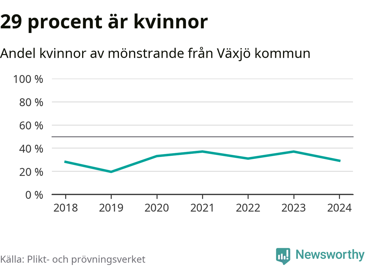 Av de som skrivits in till någon av Försvarmaktens grundutbildningar det senaste året, från juni 2023 till mars i år, kommer 80 (66 män och 14 kvinnor) från Växjö. 61 av dessa antogs efter att ha kallats till mönstring.
