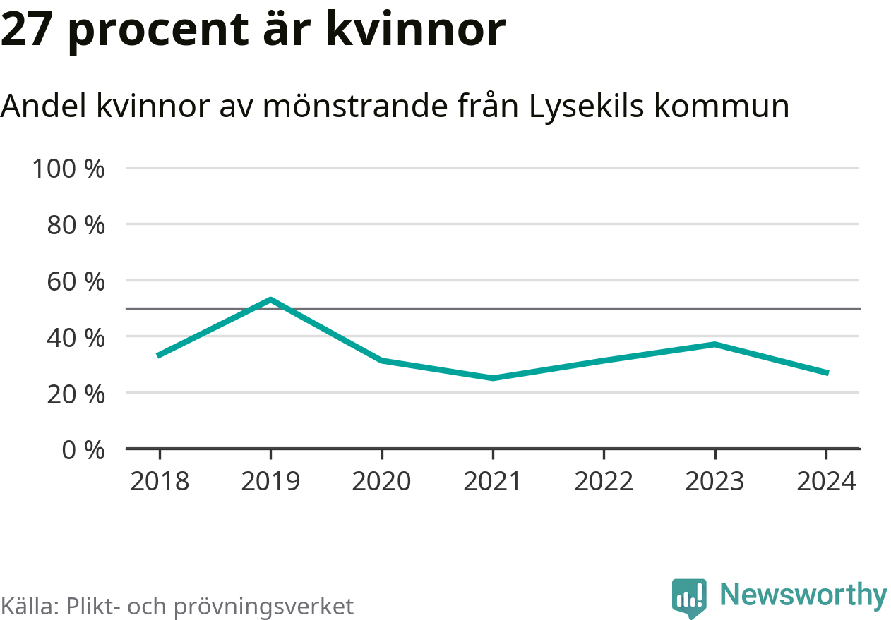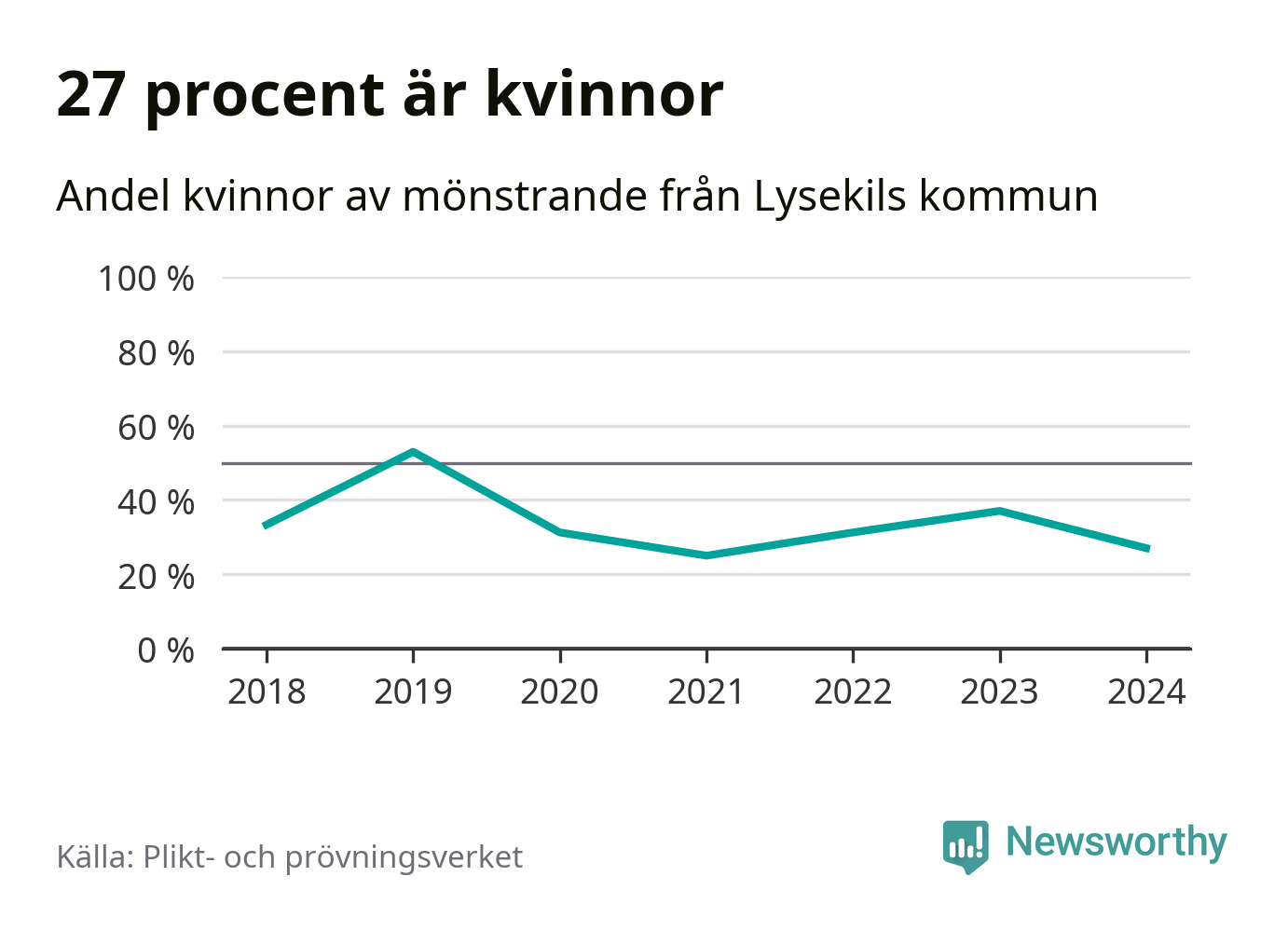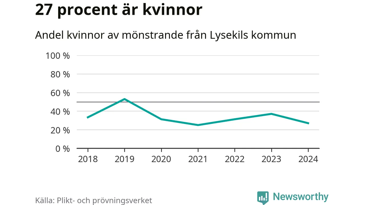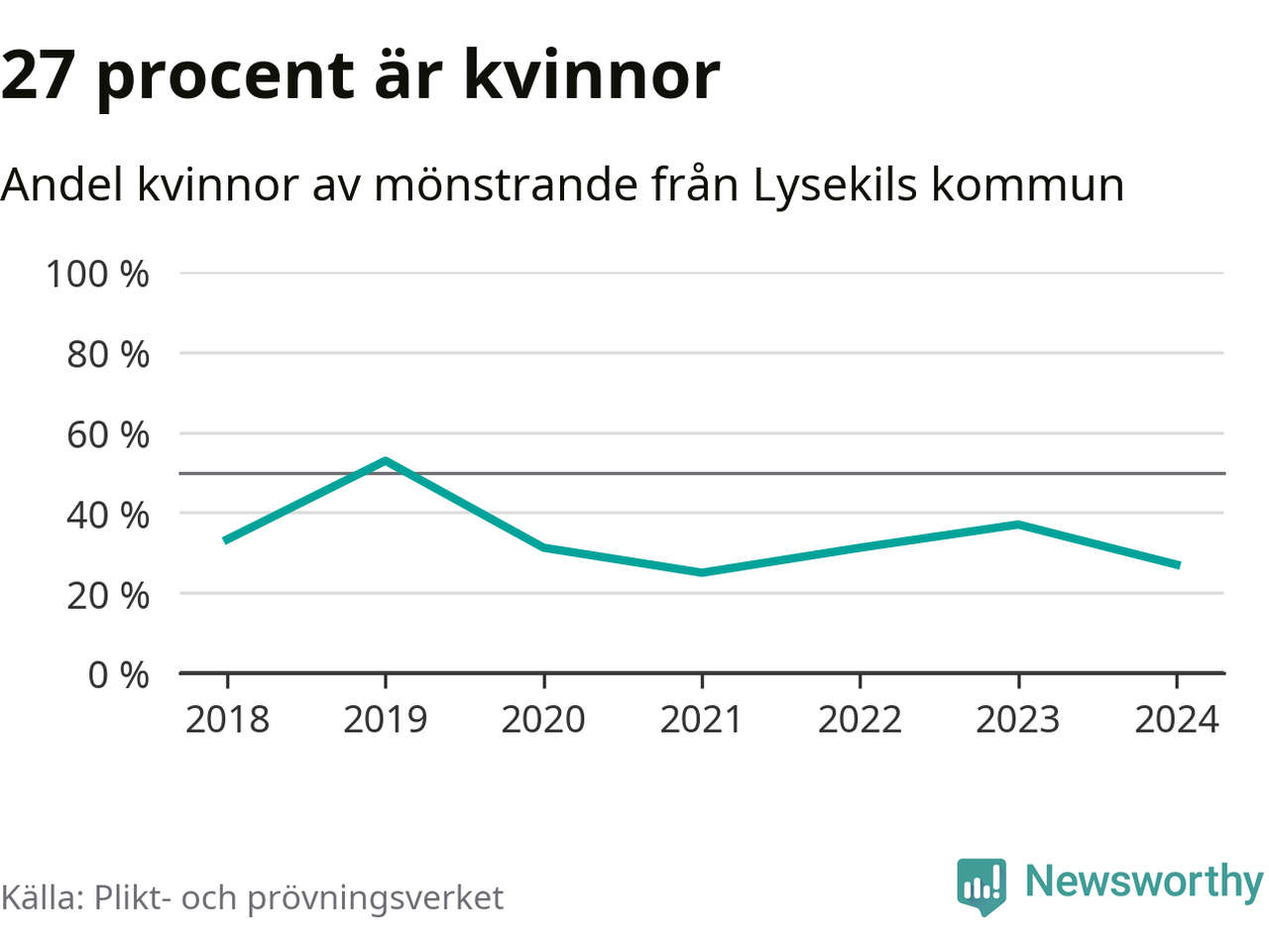 Tio av de som kallats till mönstring från Lysekil är kvinnor, vilket motsvarar 27 procent av de mönstrande. I absoluta tal är det fler kvinnor än något år sedan värnplikten återinfördes, men 2019 var en större andel av de mönstrande från kommunen kvinnor (53 procent). I riket som helhet är 30 procent av de mönstrande tjejer.