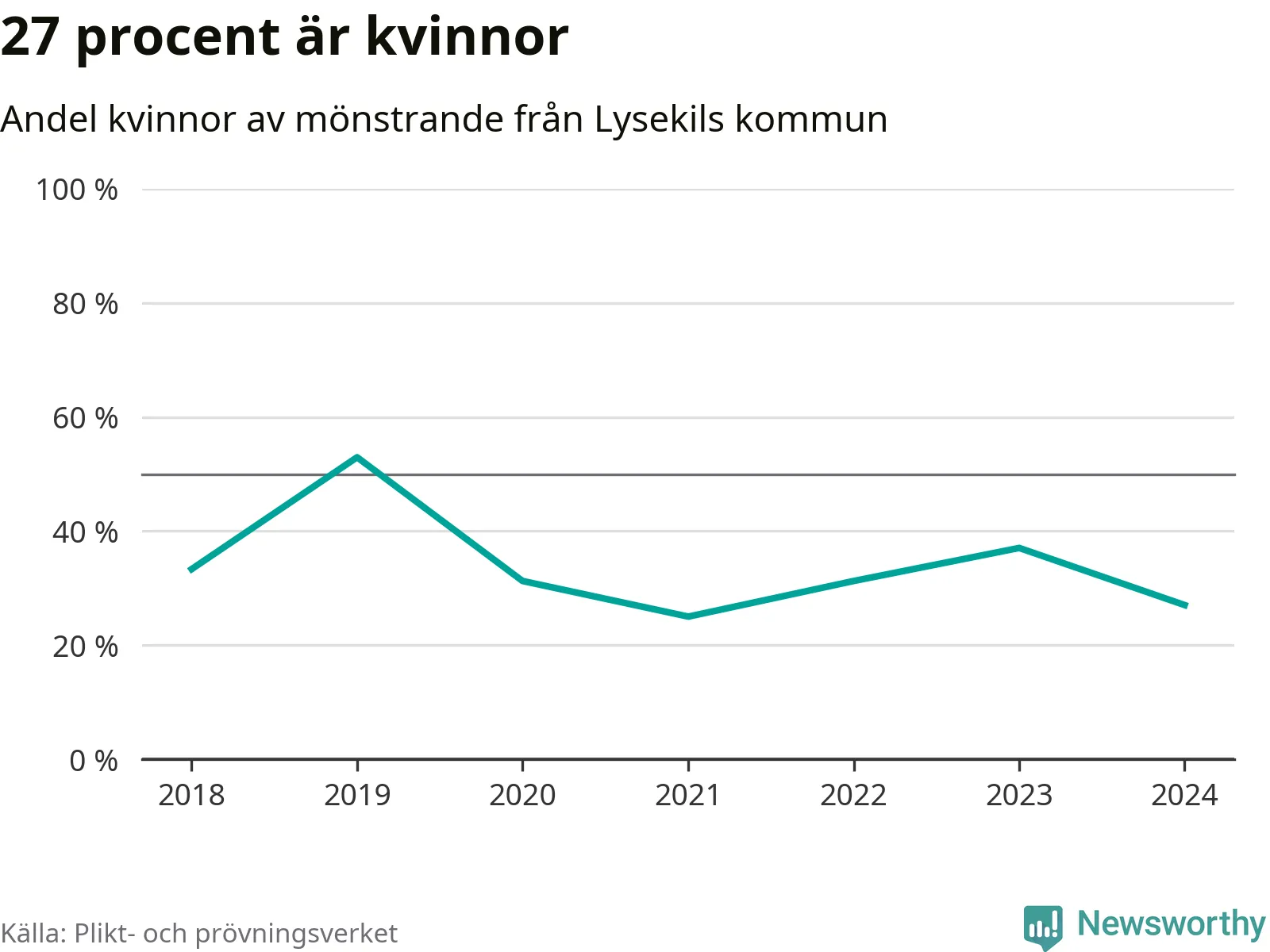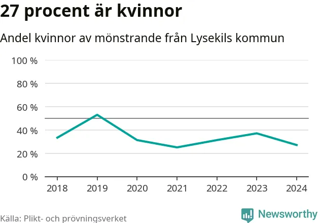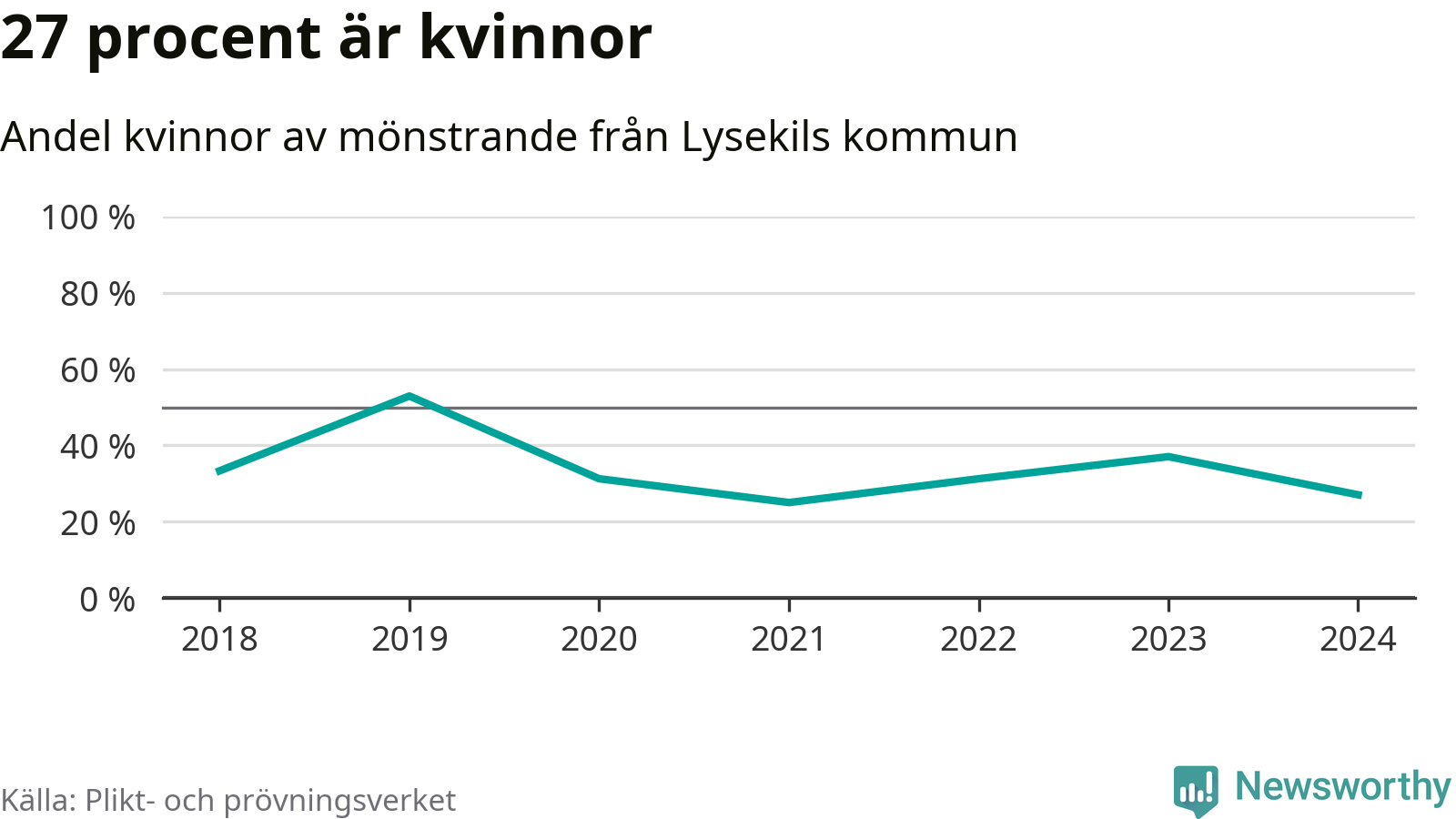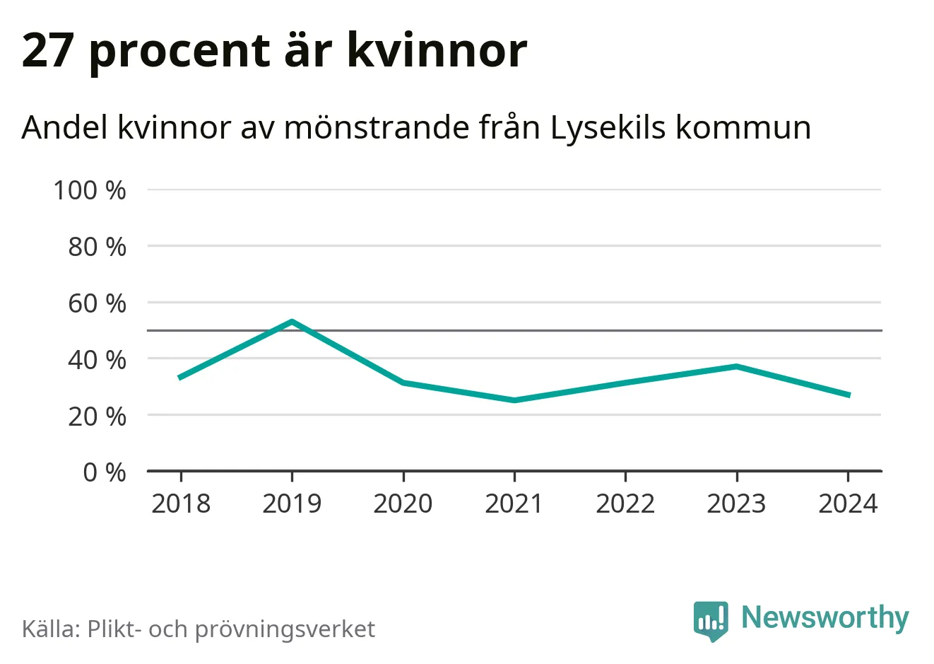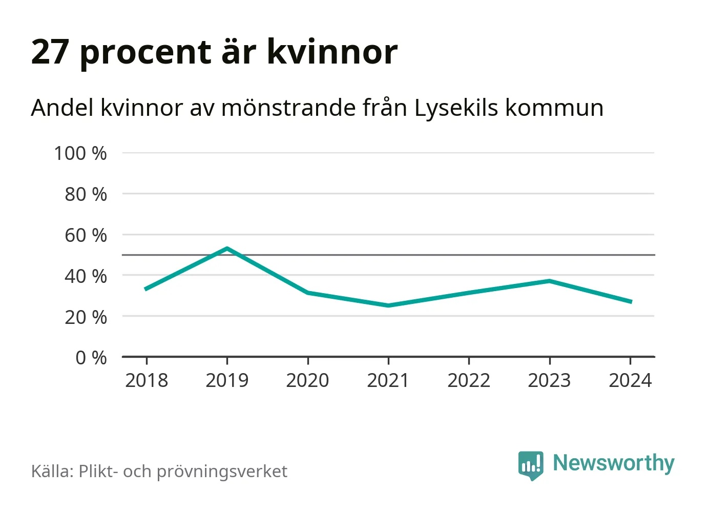 Tio av de som kallats till mönstring från Lysekil är kvinnor, vilket motsvarar 27 procent av de mönstrande. I absoluta tal är det fler kvinnor än något år sedan värnplikten återinfördes, men 2019 var en större andel av de mönstrande från kommunen kvinnor (53 procent). I riket som helhet är 30 procent av de mönstrande tjejer.