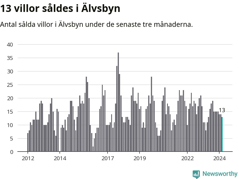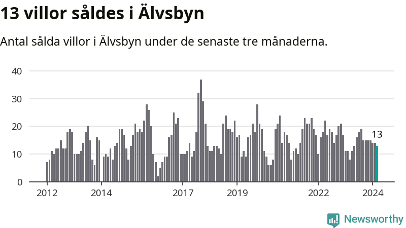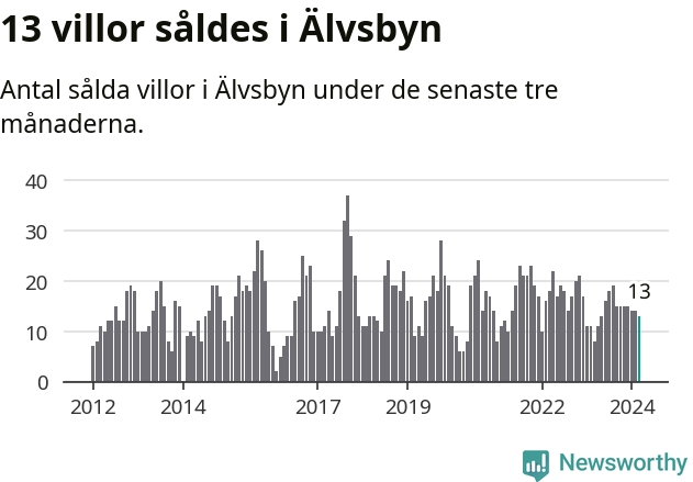 Mellan januari och mars gjordes sammanlagt 13 affärer med villor i Älvsbyns kommun. Det kan jämföras med åtta vid motsvarande tid i fjol.