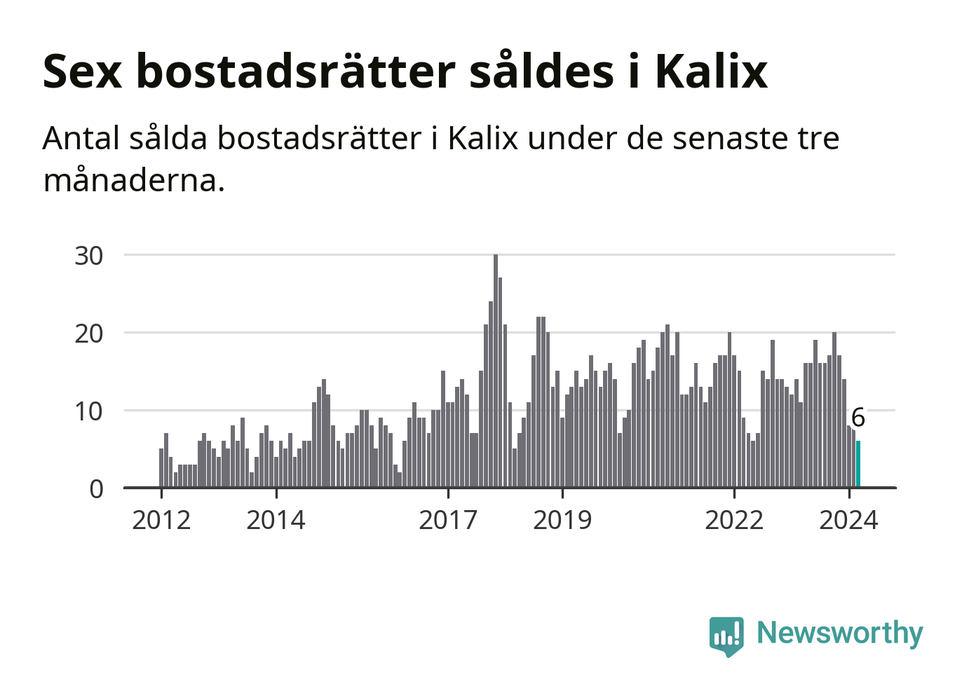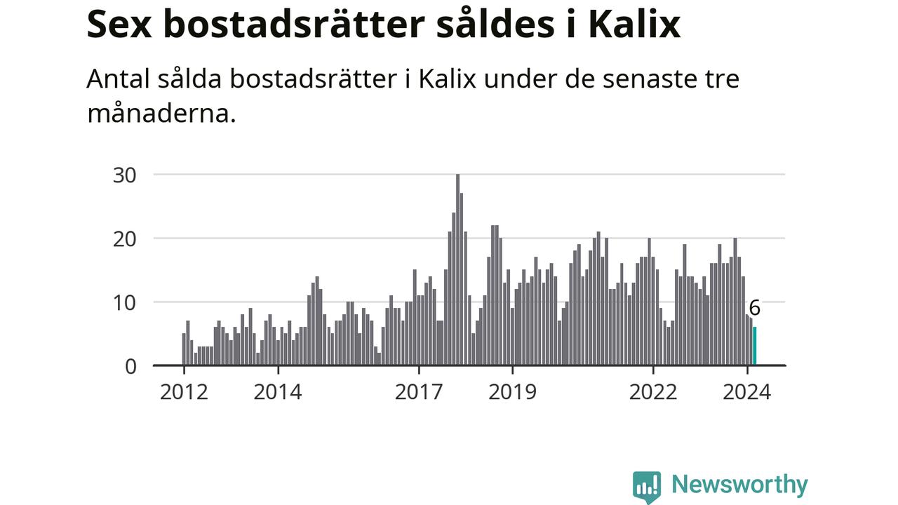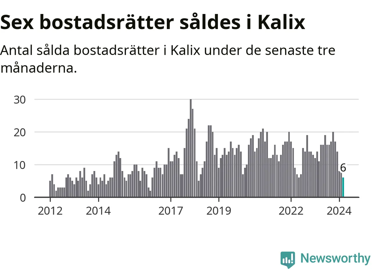 Mellan januari och mars gjordes sammanlagt sex affärer med bostadsrätter i Kalix kommun. Det kan jämföras med elva vid motsvarande tid i fjol.