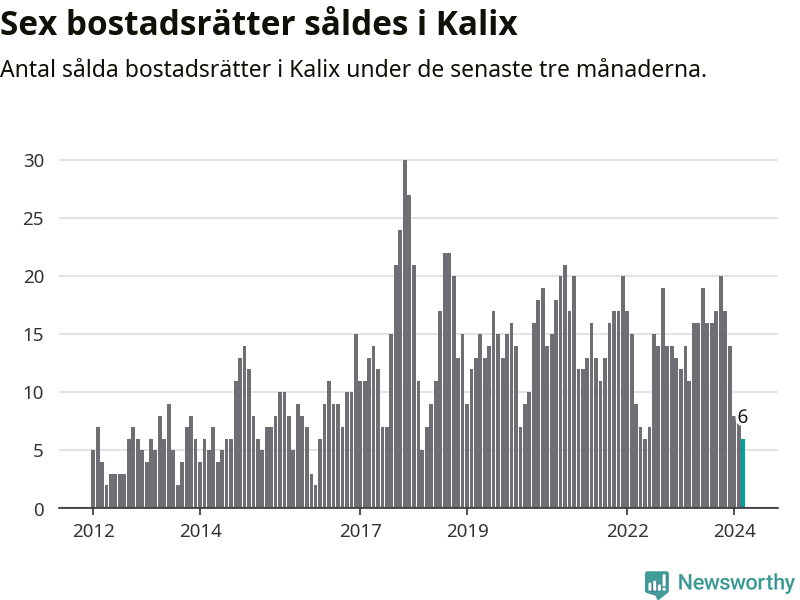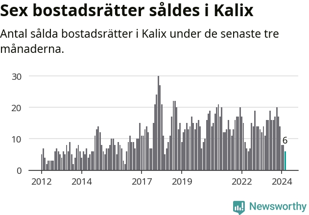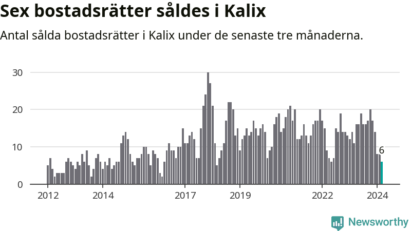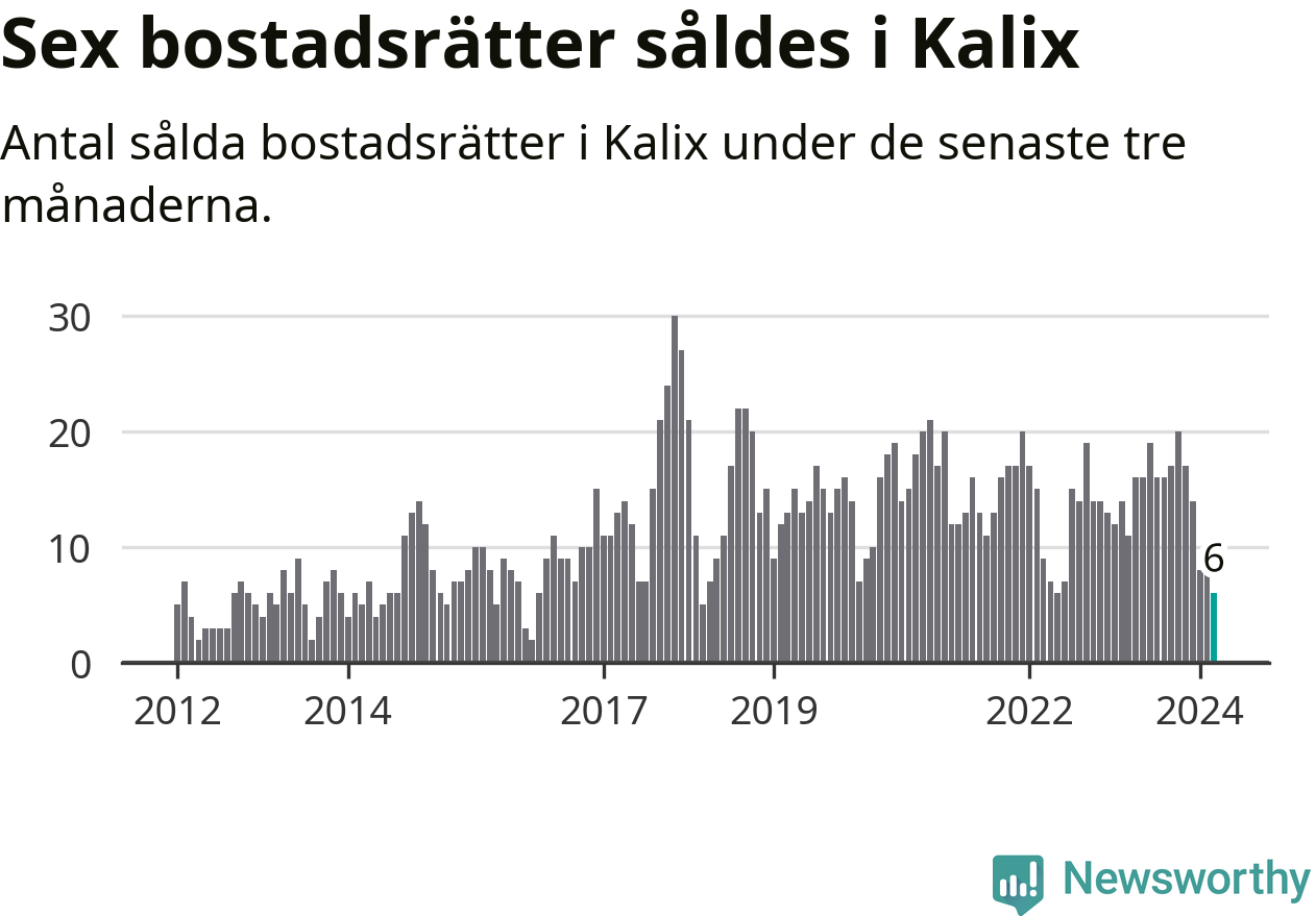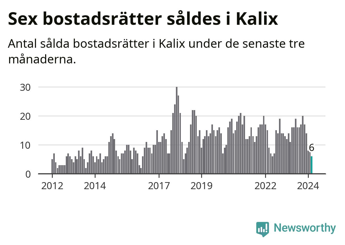 Mellan januari och mars gjordes sammanlagt sex affärer med bostadsrätter i Kalix kommun. Det kan jämföras med elva vid motsvarande tid i fjol.