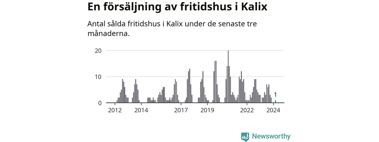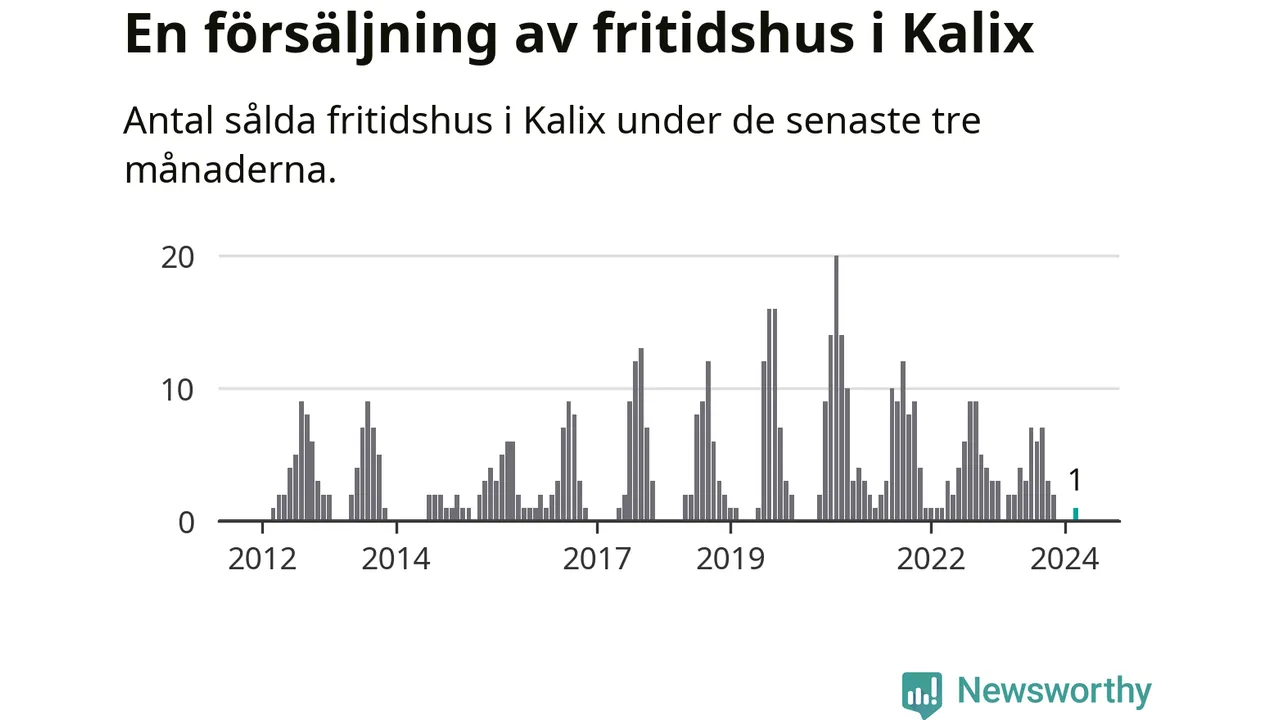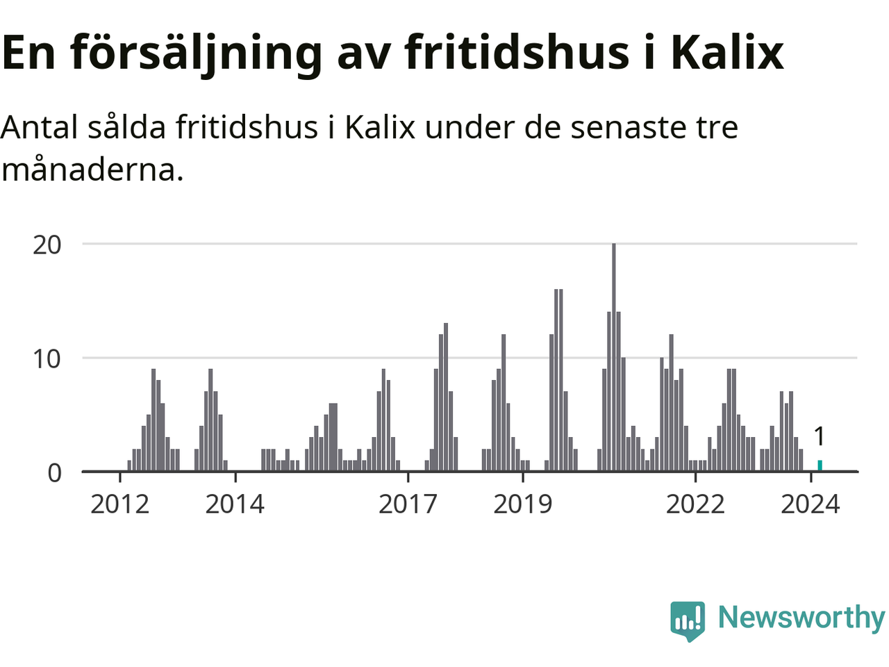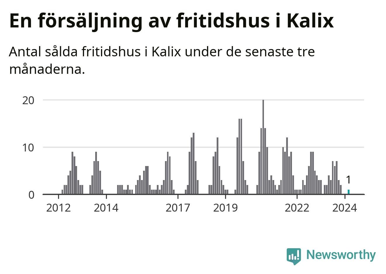 Mellan januari och mars gjordes sammanlagt en affär med fritidshus i Kalix kommun. Det kan jämföras med två vid motsvarande tid i fjol.