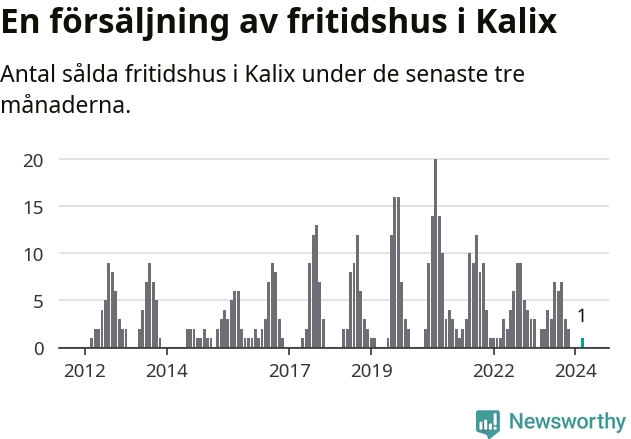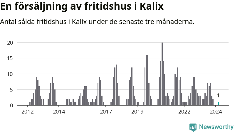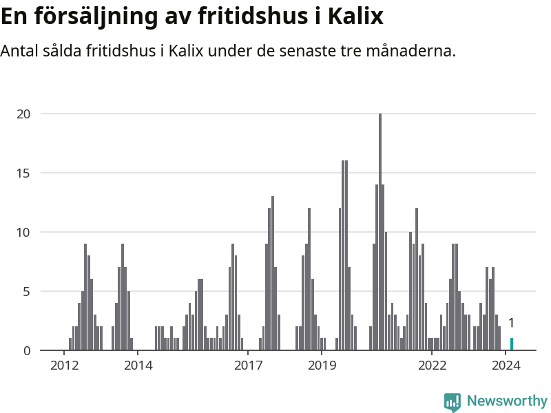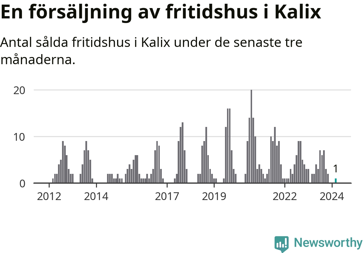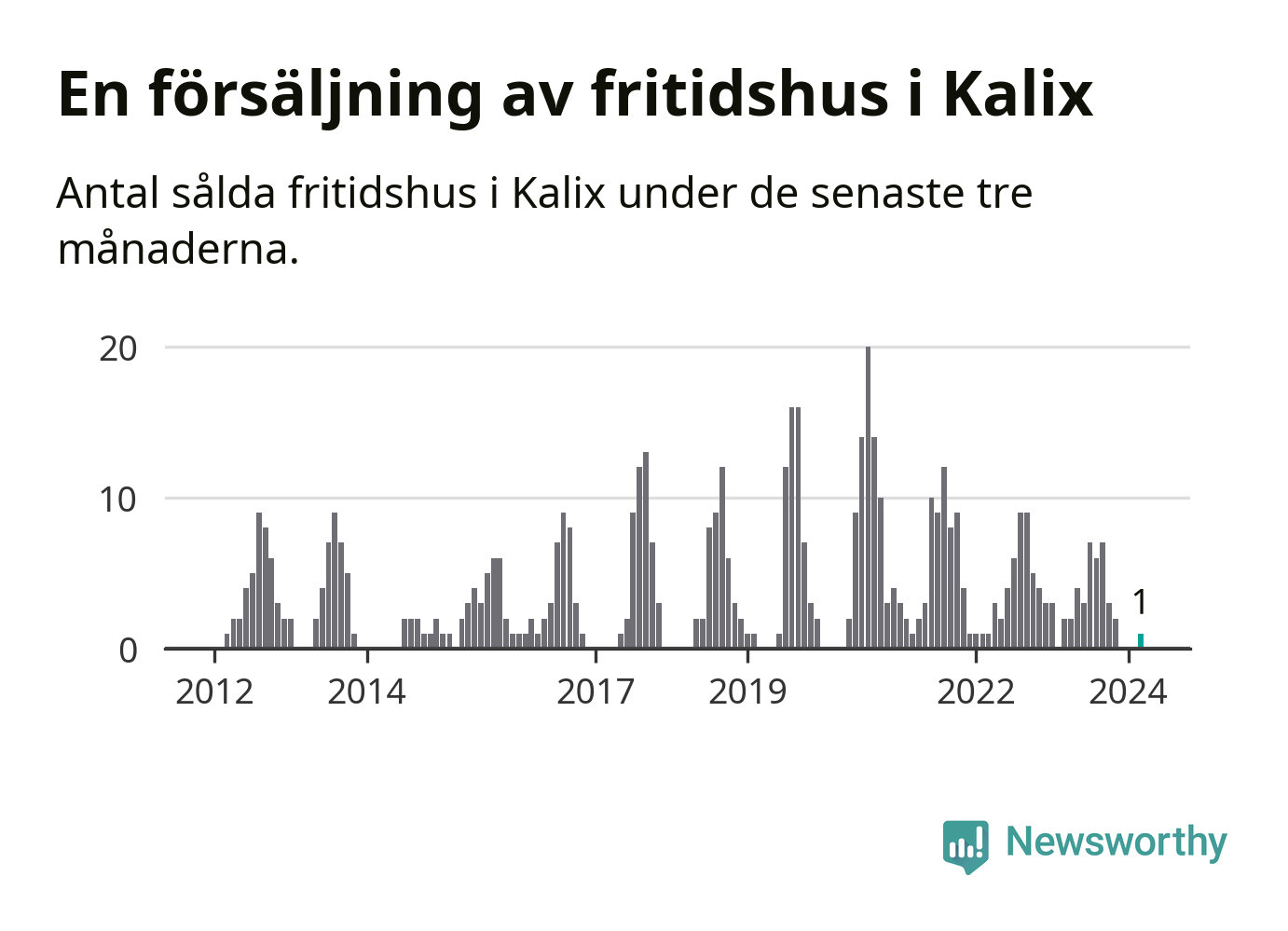 Mellan januari och mars gjordes sammanlagt en affär med fritidshus i Kalix kommun. Det kan jämföras med två vid motsvarande tid i fjol.