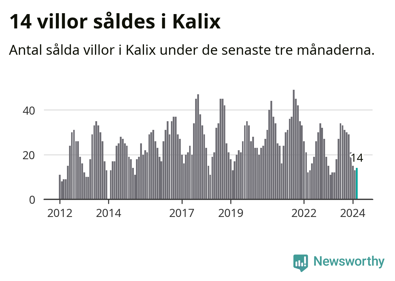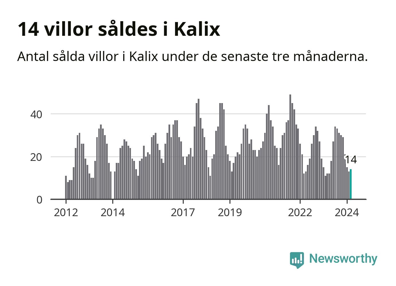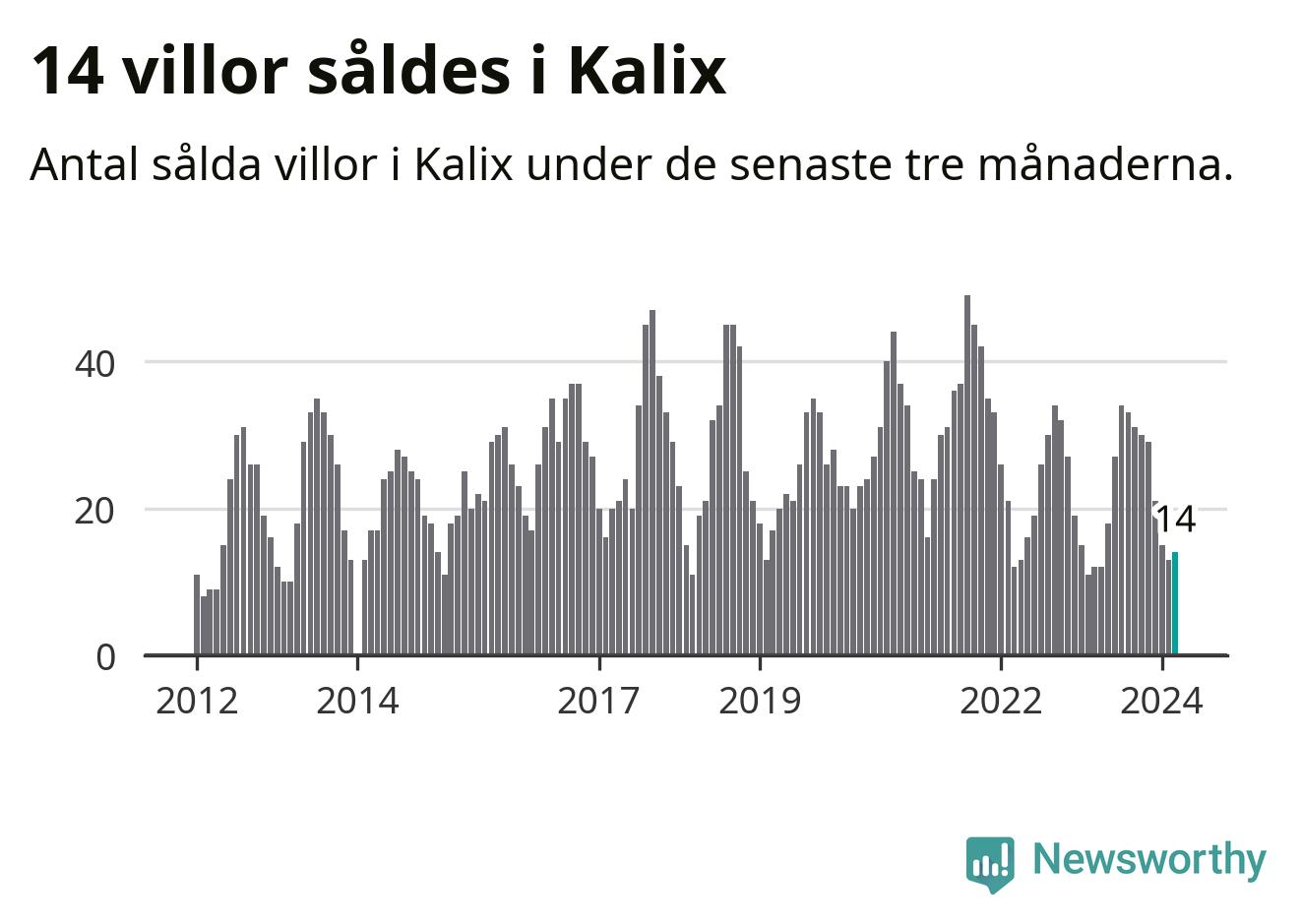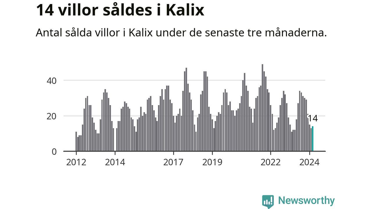 Mellan januari och mars gjordes sammanlagt 14 affärer med villor i Kalix kommun. Det kan jämföras med tolv vid motsvarande tid i fjol.