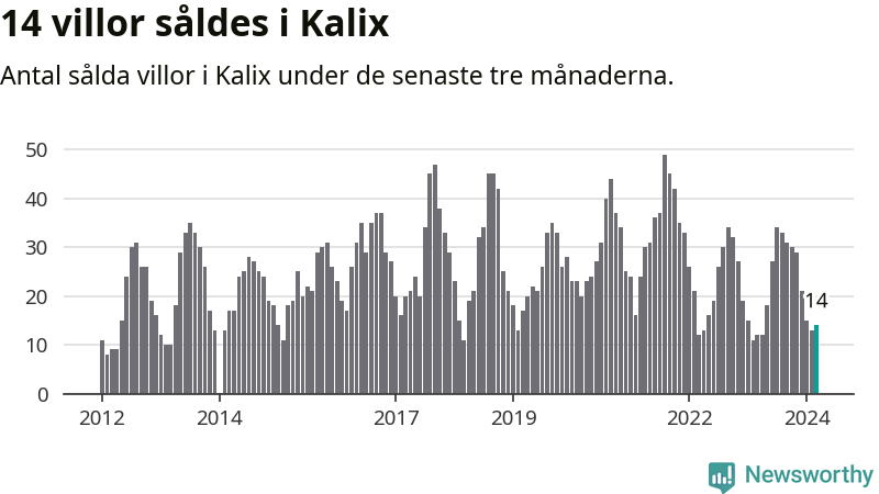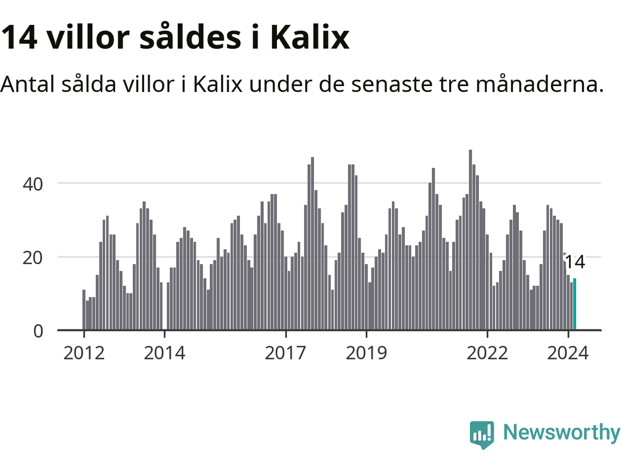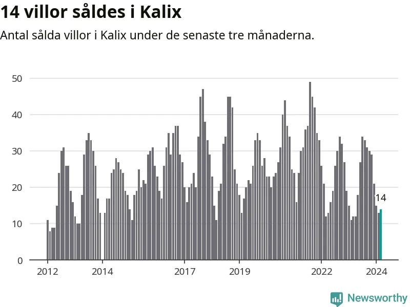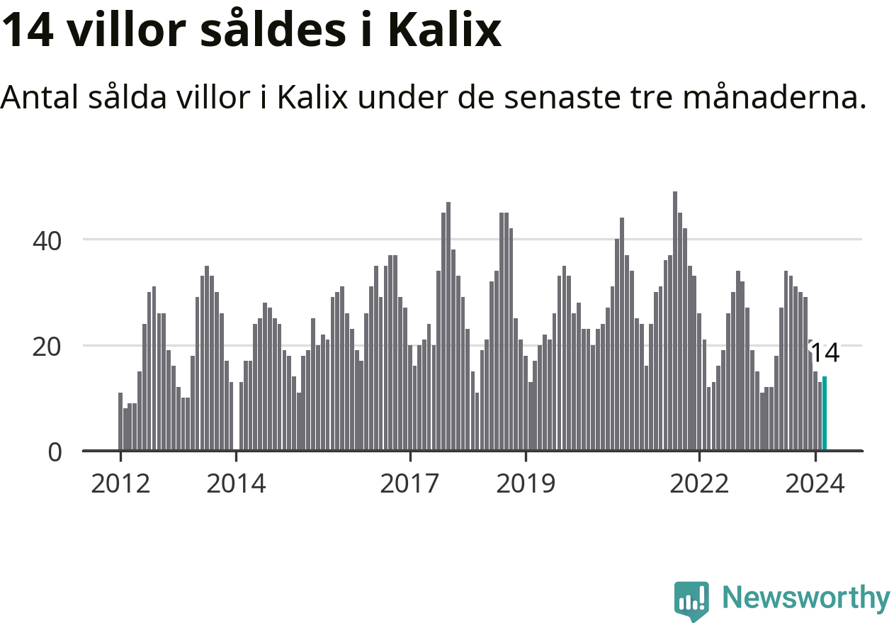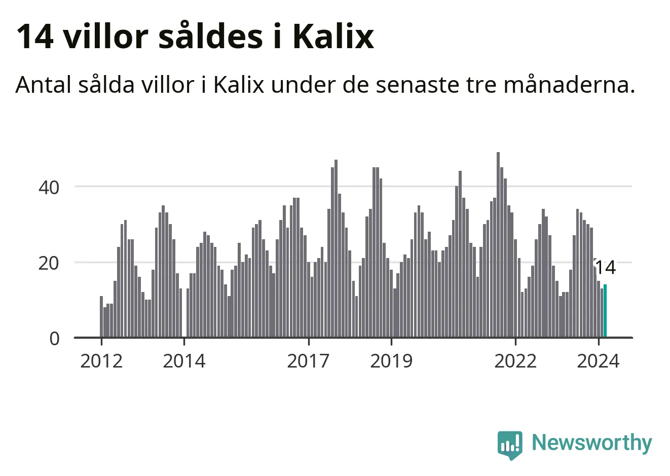 Mellan januari och mars gjordes sammanlagt 14 affärer med villor i Kalix kommun. Det kan jämföras med tolv vid motsvarande tid i fjol.