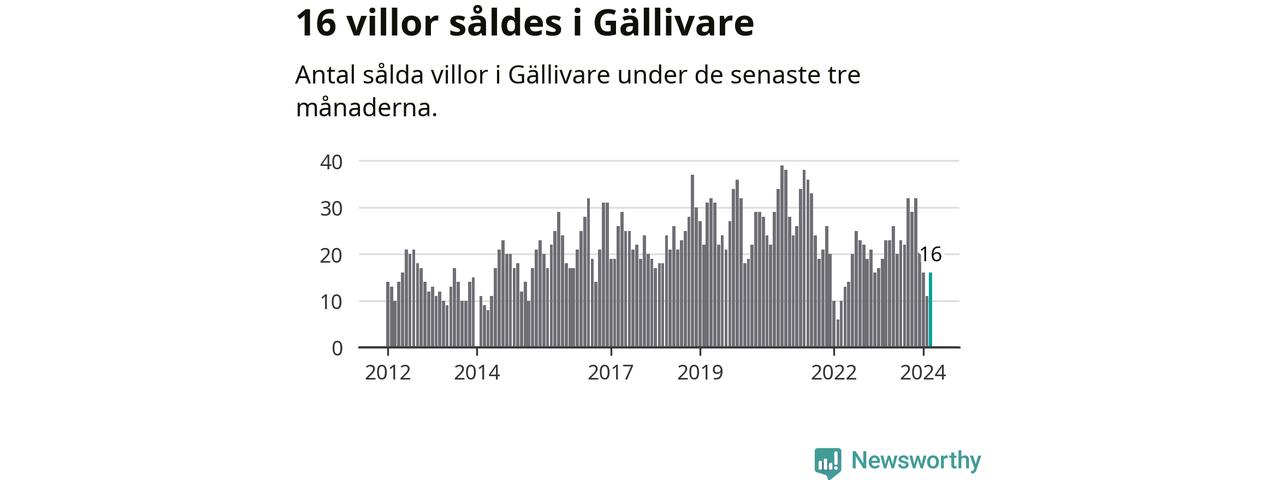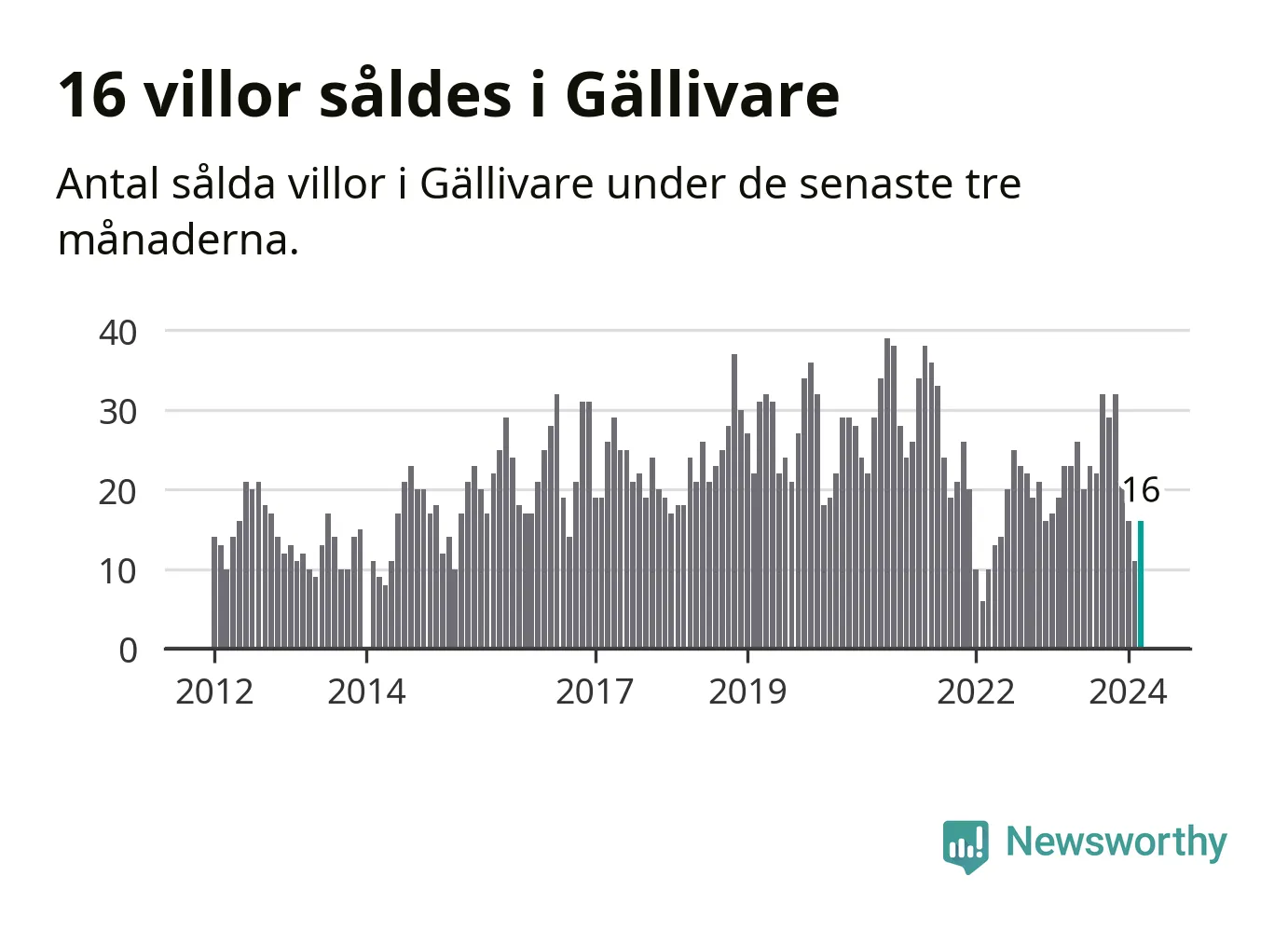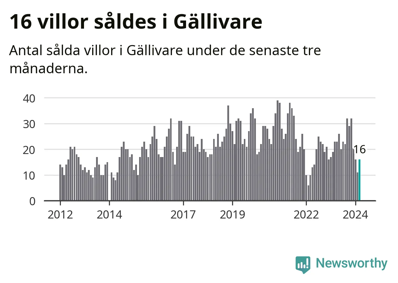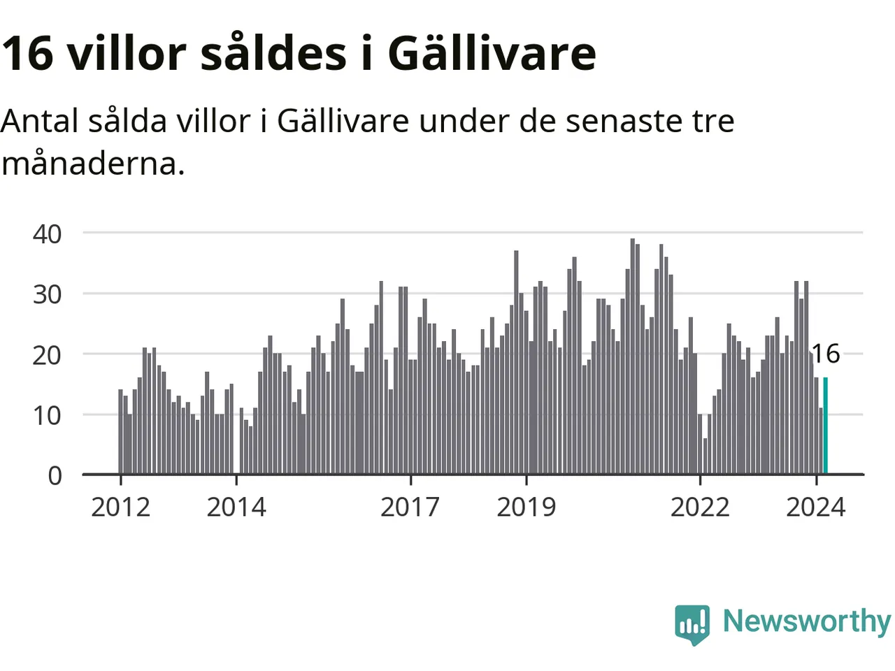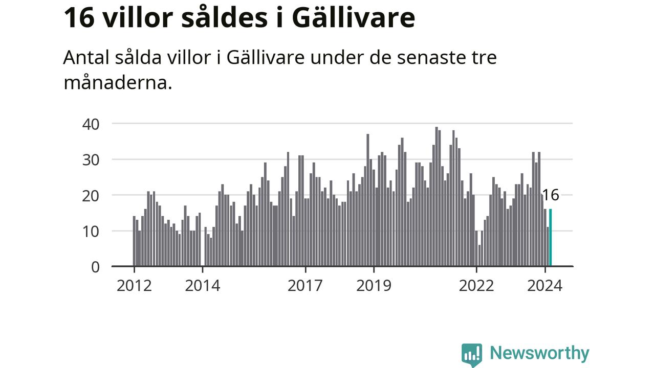 Mellan januari och mars gjordes sammanlagt 16 affärer med villor i Gällivare kommun. Det kan jämföras med 23 vid motsvarande tid i fjol.