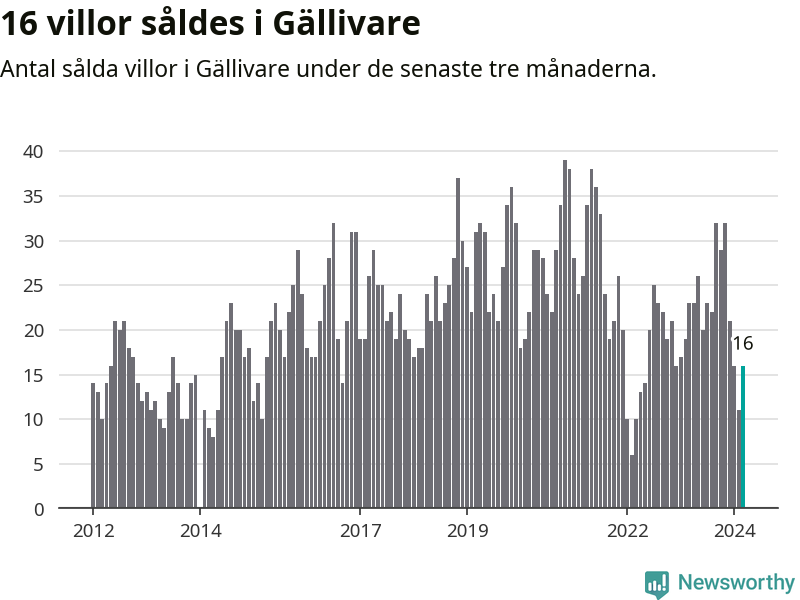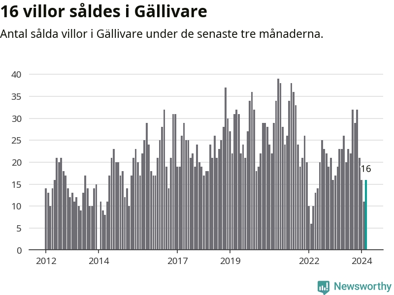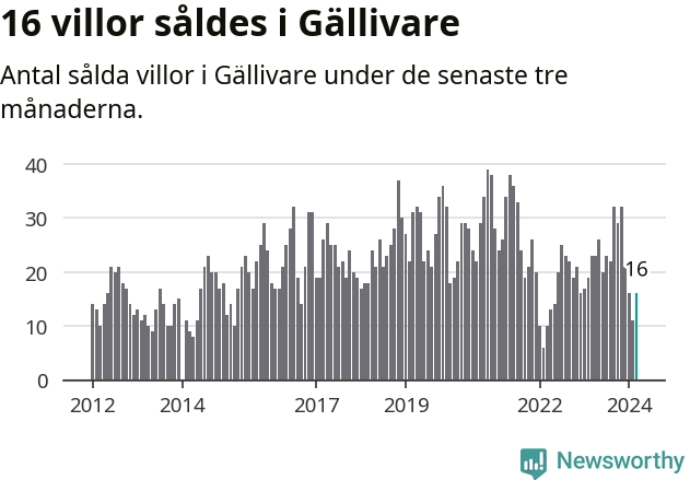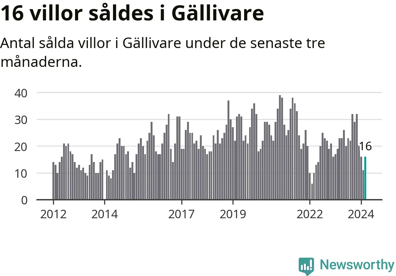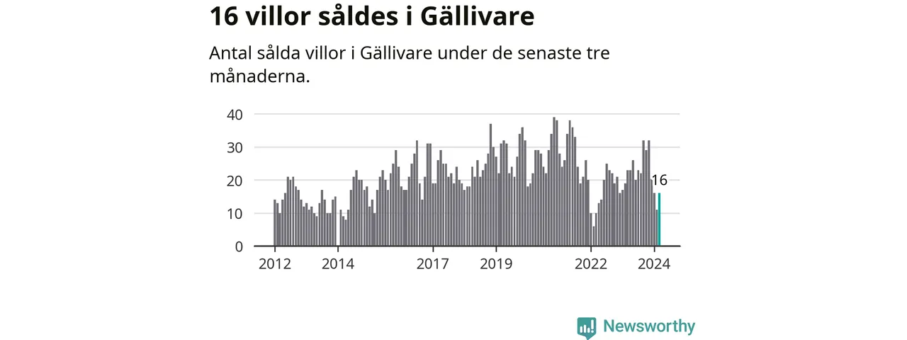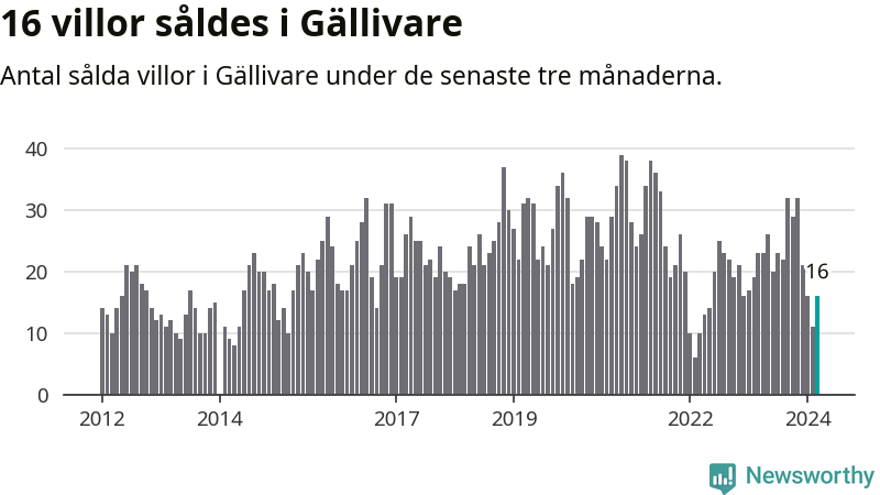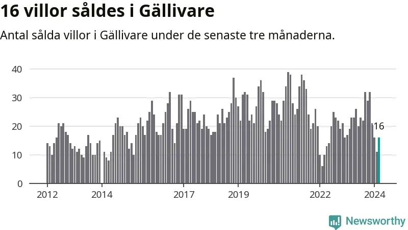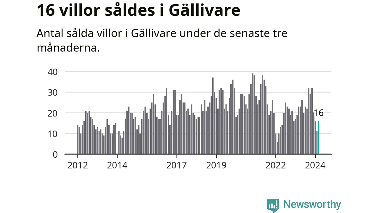 Mellan januari och mars gjordes sammanlagt 16 affärer med villor i Gällivare kommun. Det kan jämföras med 23 vid motsvarande tid i fjol.