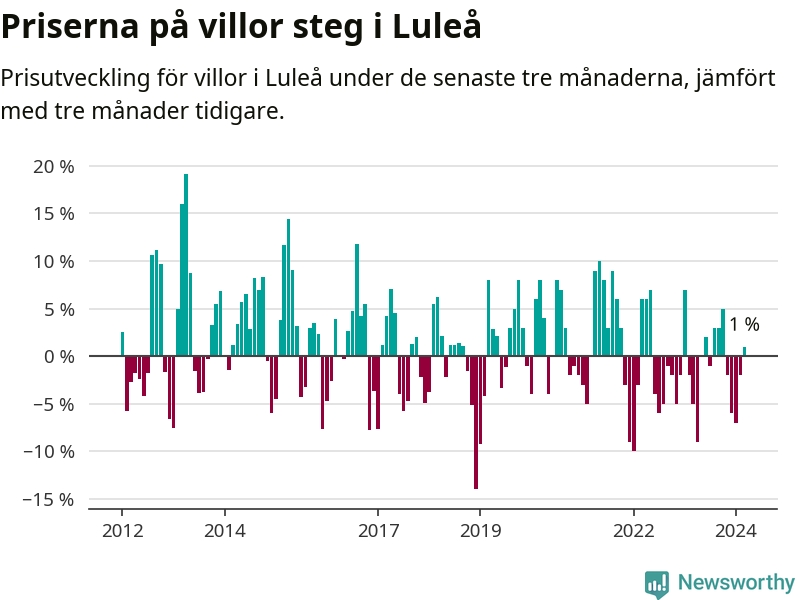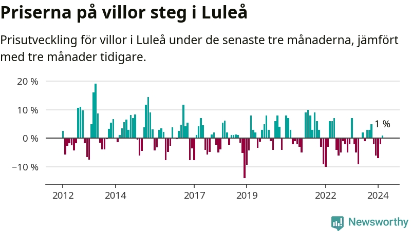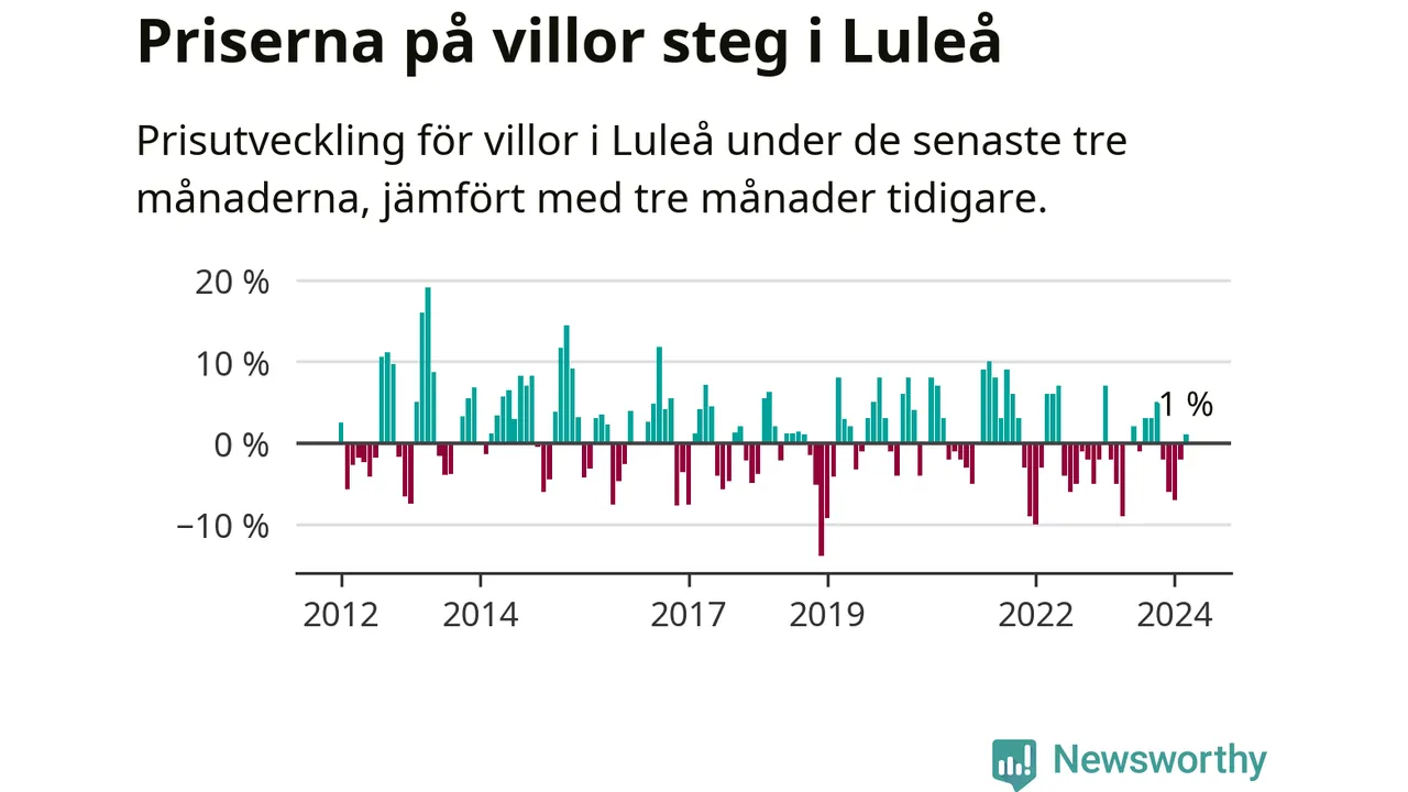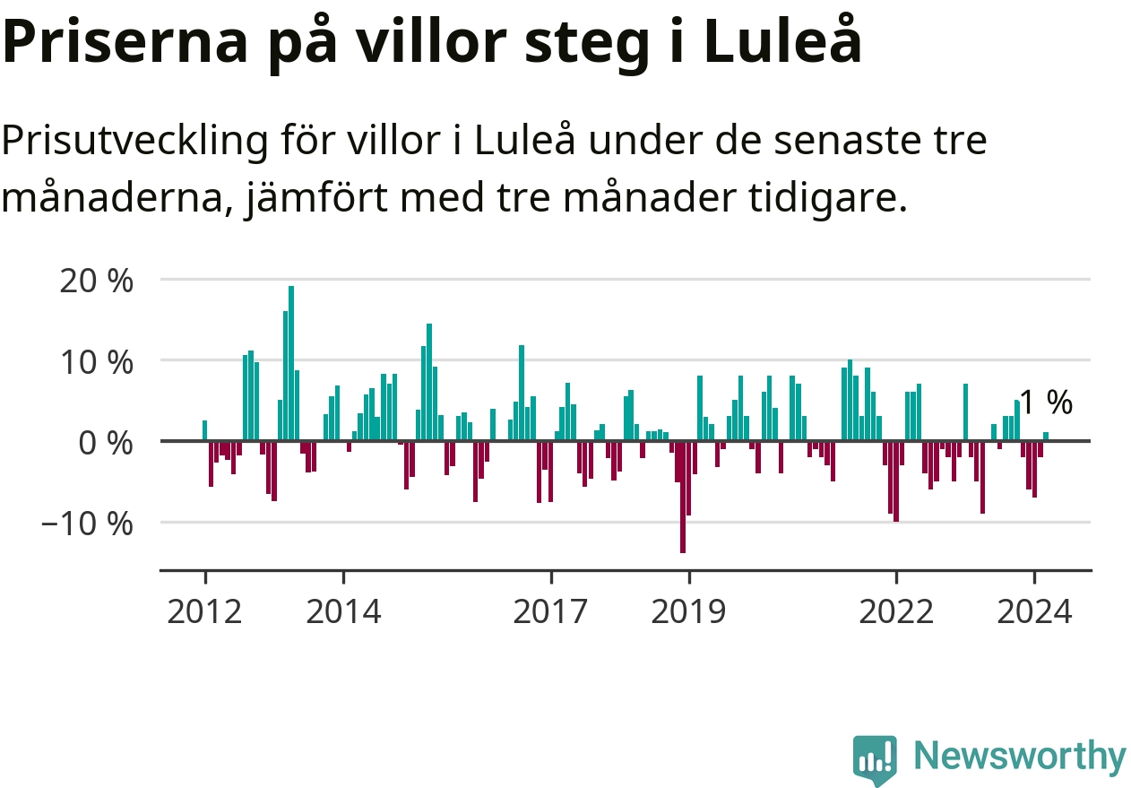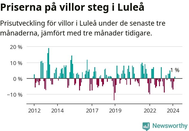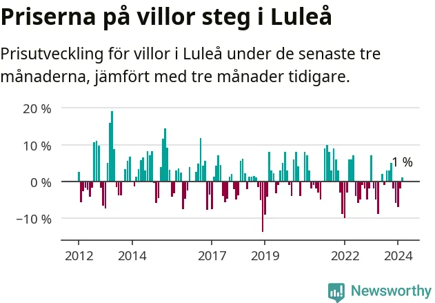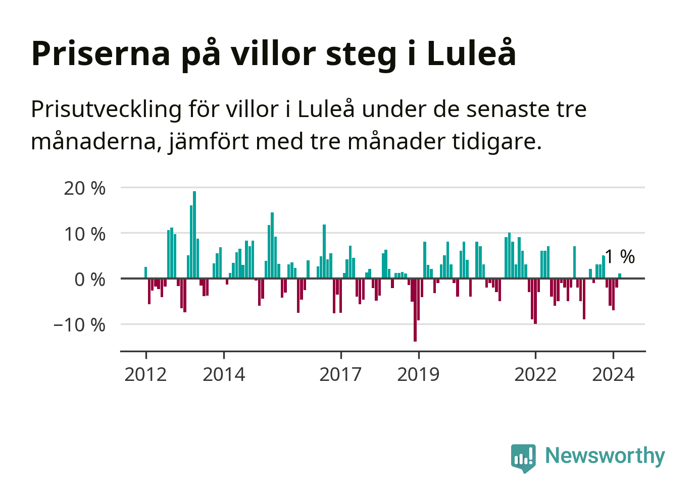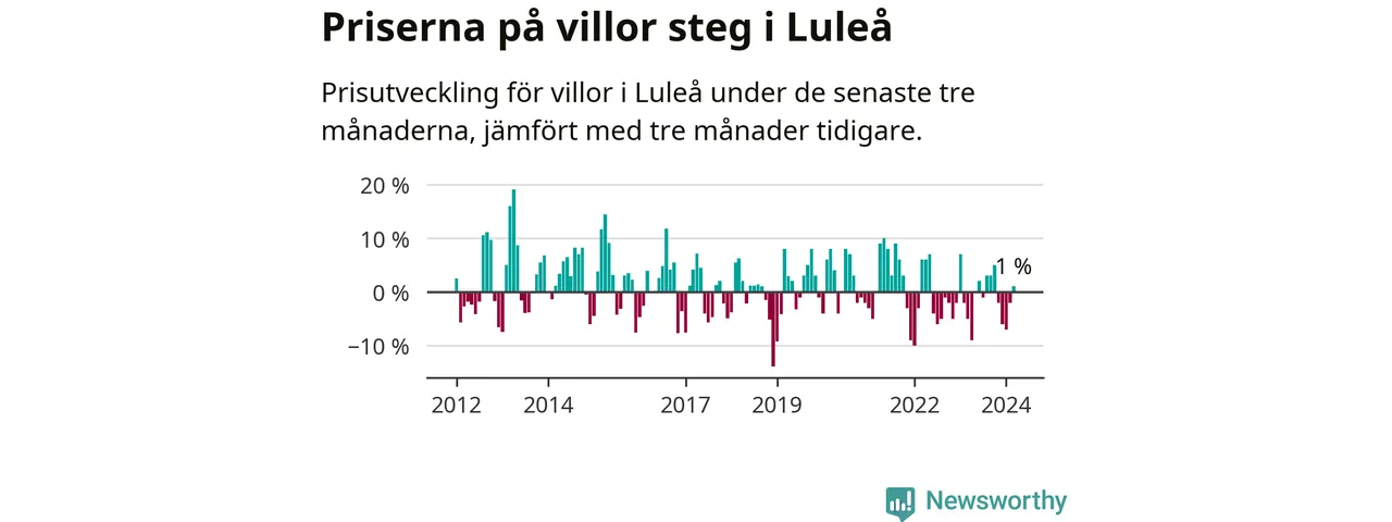 Villapriserna har gått upp i Luleå kommun. Medelpriset på försäljningarna under de senaste tre månaderna visar på en uppgång med 1 procent.
