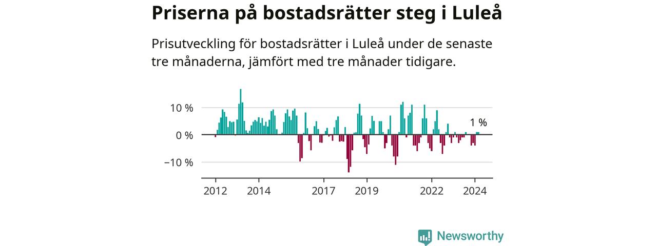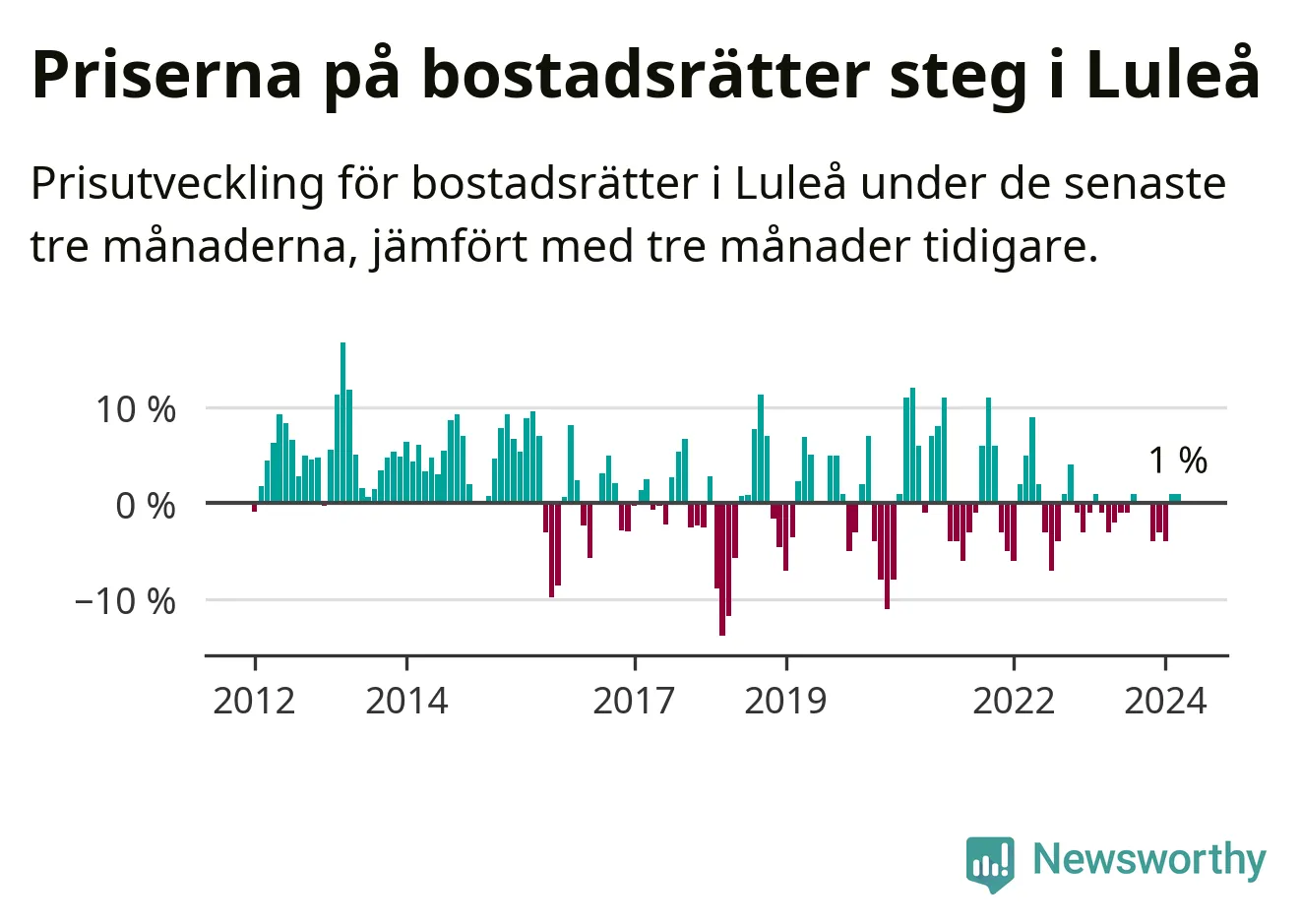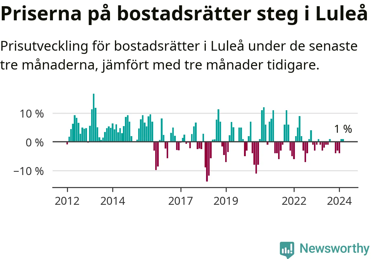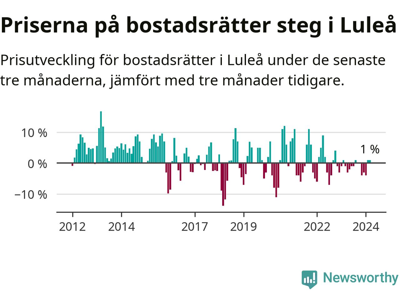 Priserna på bostadsrätter har gått upp i Luleå kommun. Medelpriset på försäljningarna under de senaste tre månaderna visar på en uppgång med 1 procent.