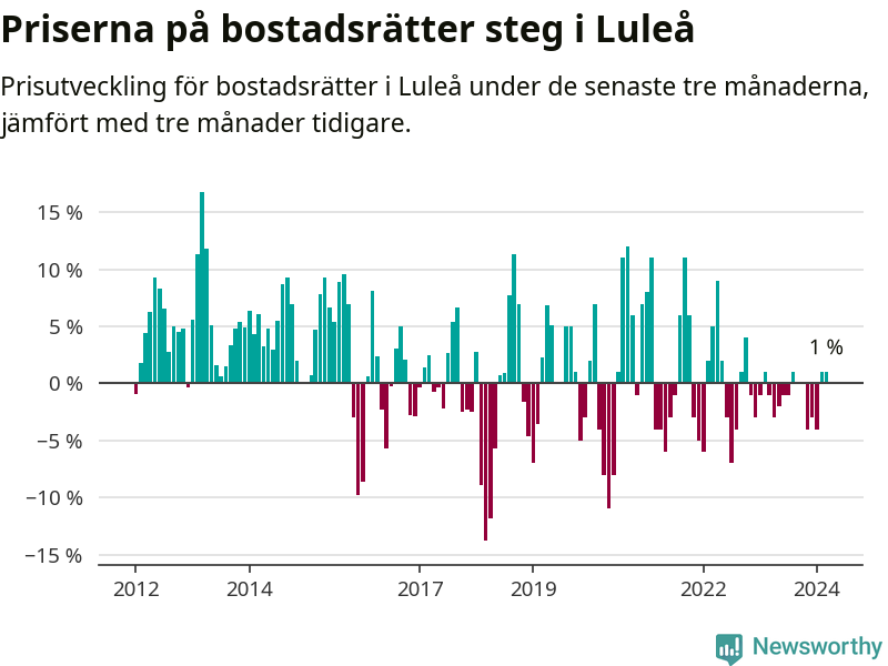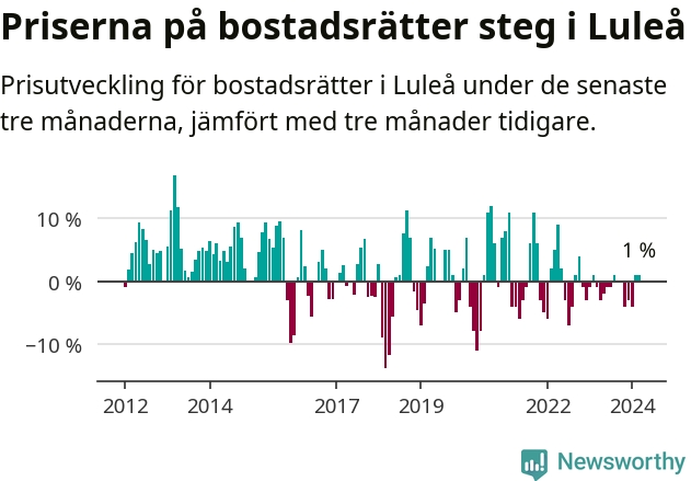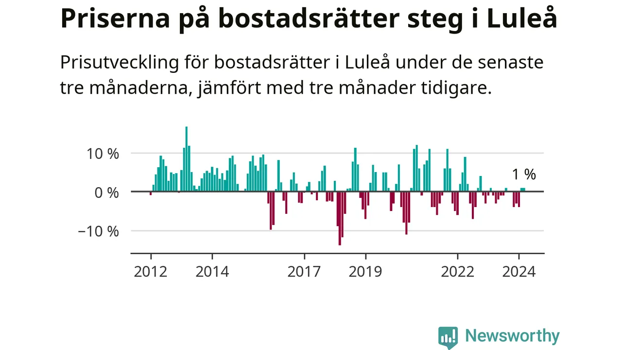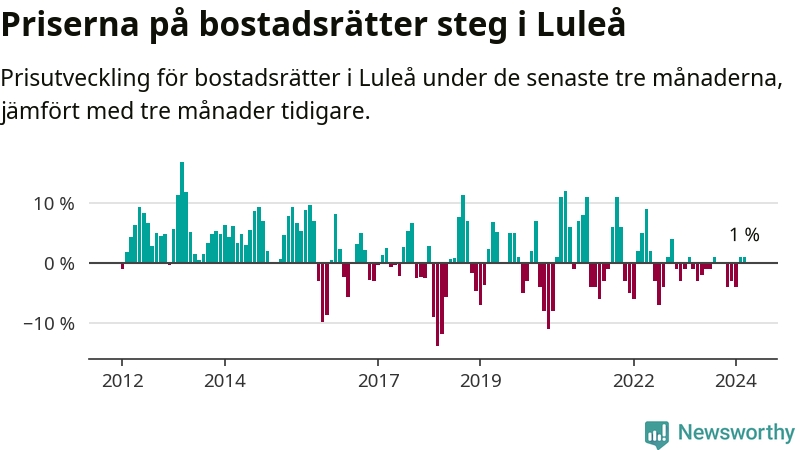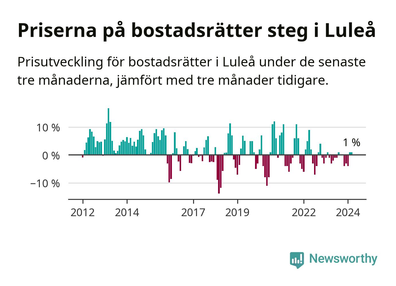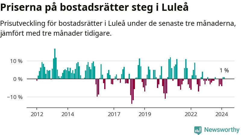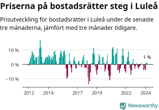 Priserna på bostadsrätter har gått upp i Luleå kommun. Medelpriset på försäljningarna under de senaste tre månaderna visar på en uppgång med 1 procent.