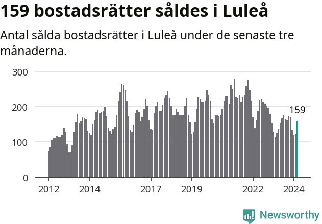 Graf: Antal sålda bostadsrätter i Luleå kommun