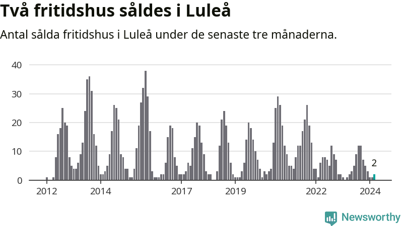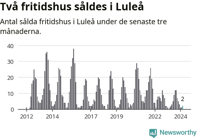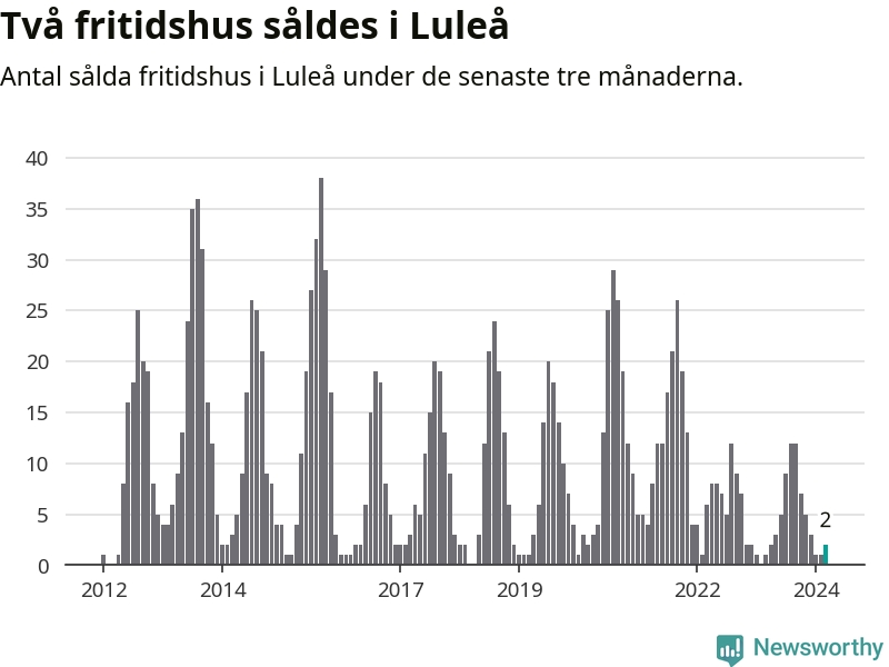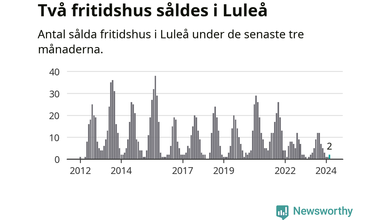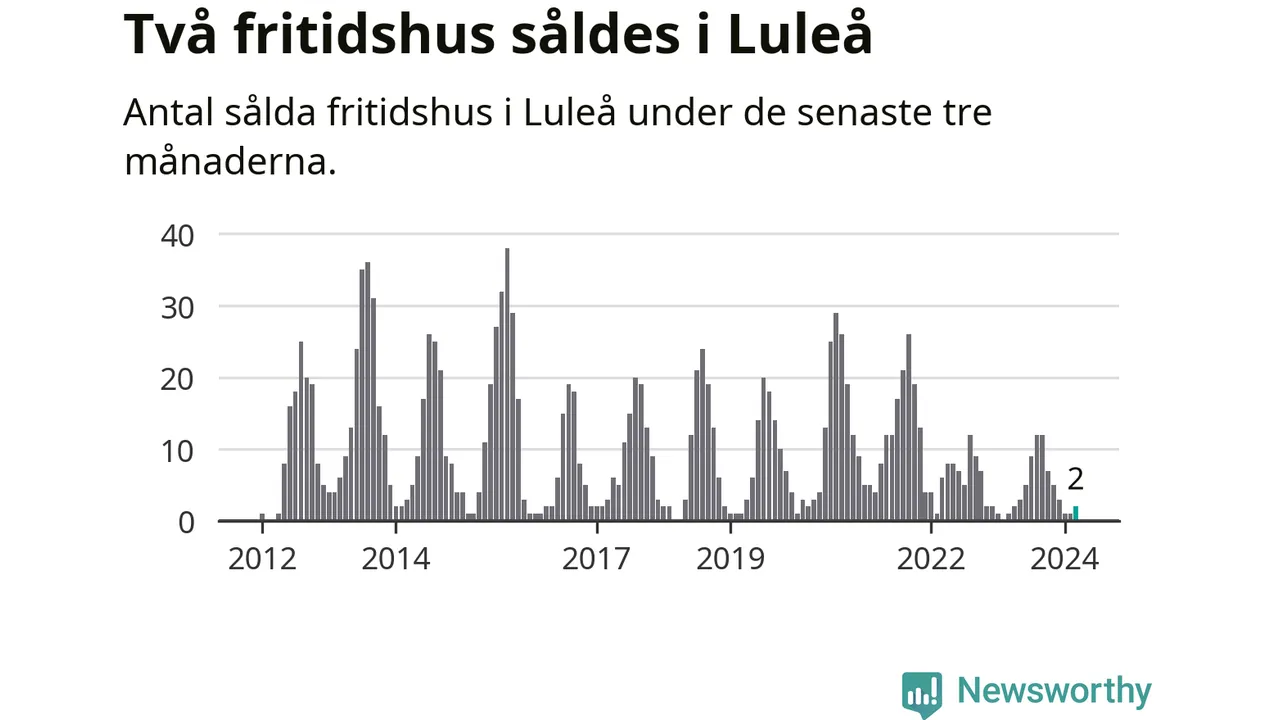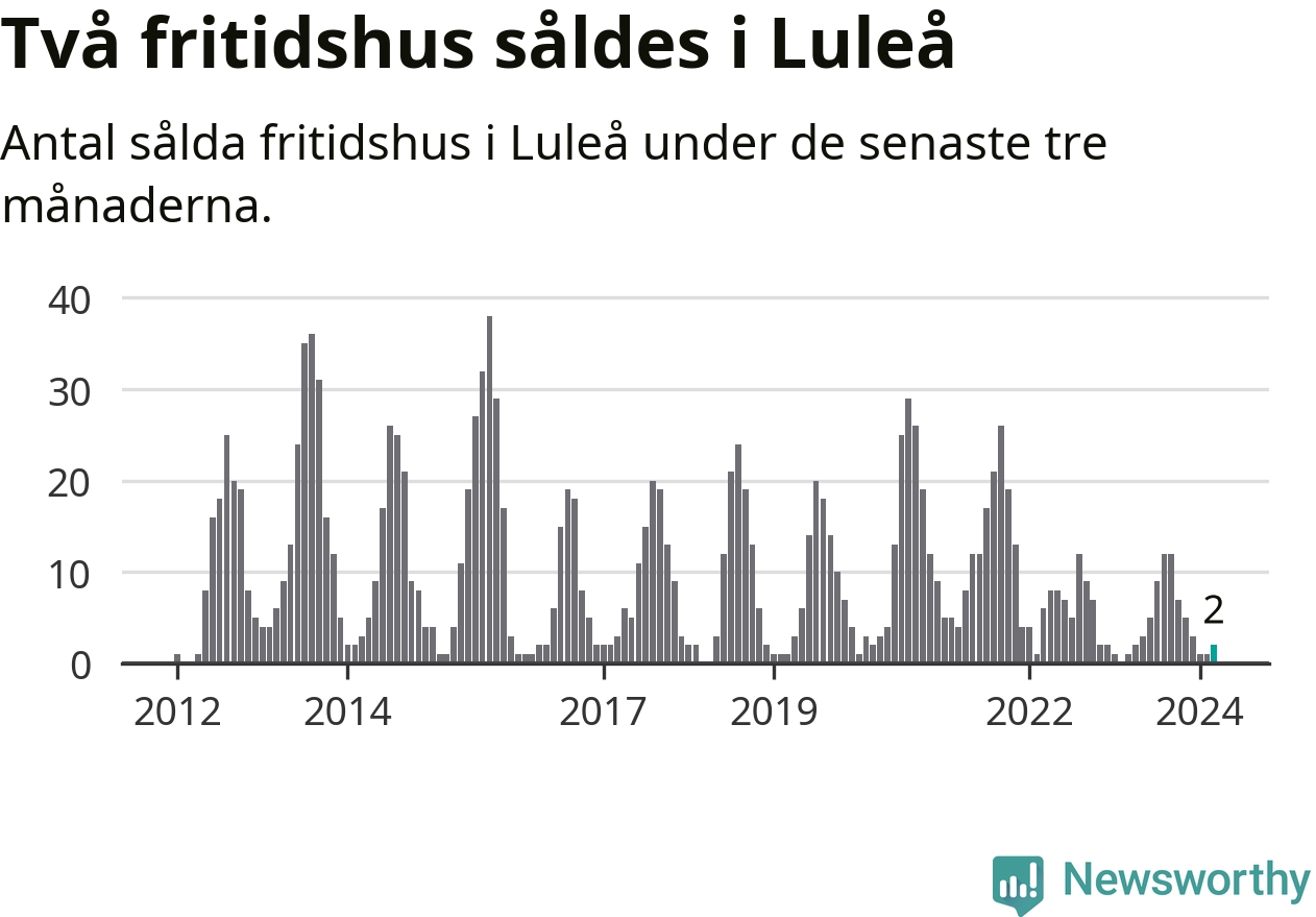 Mellan januari och mars gjordes sammanlagt två affärer med fritidshus i Luleå kommun. Det kan jämföras med ett vid motsvarande tid i fjol.