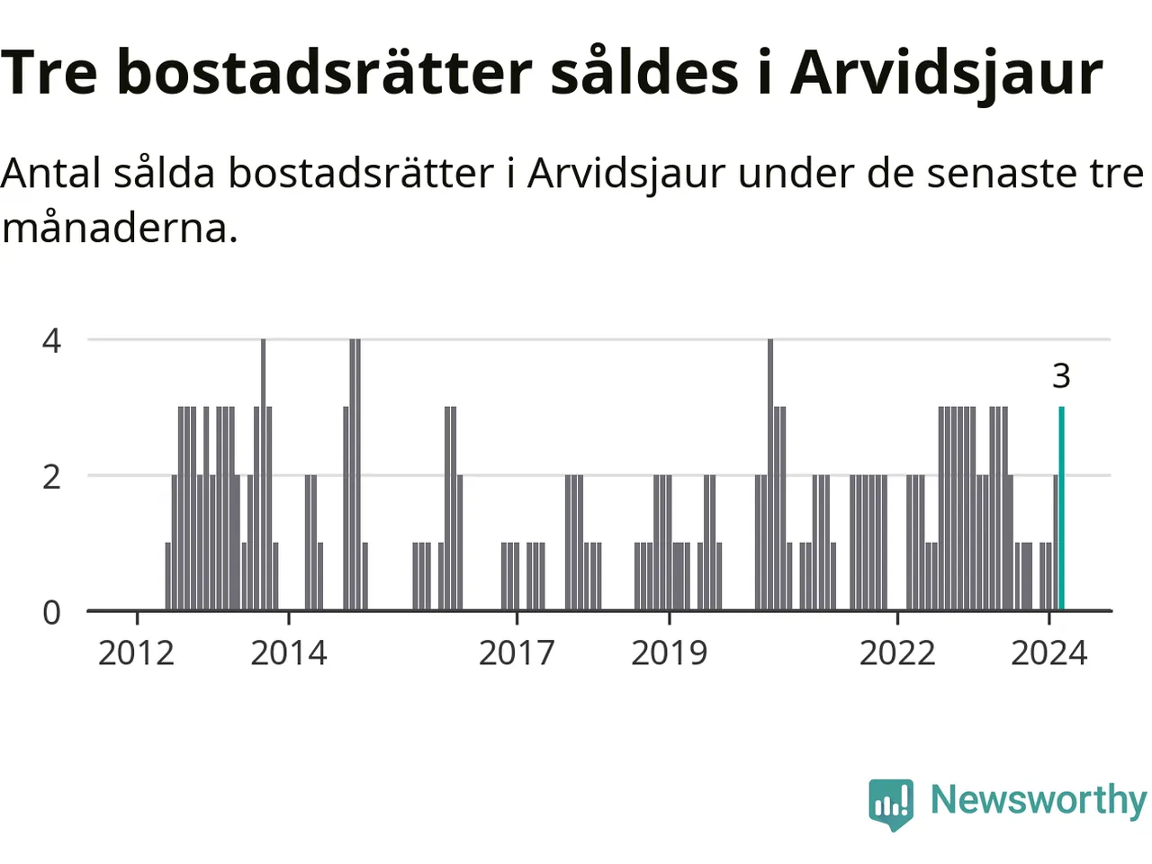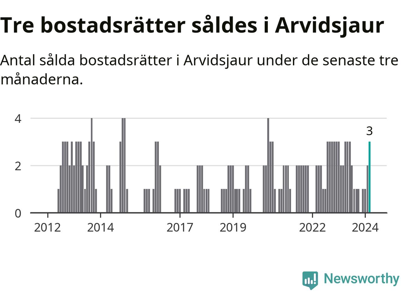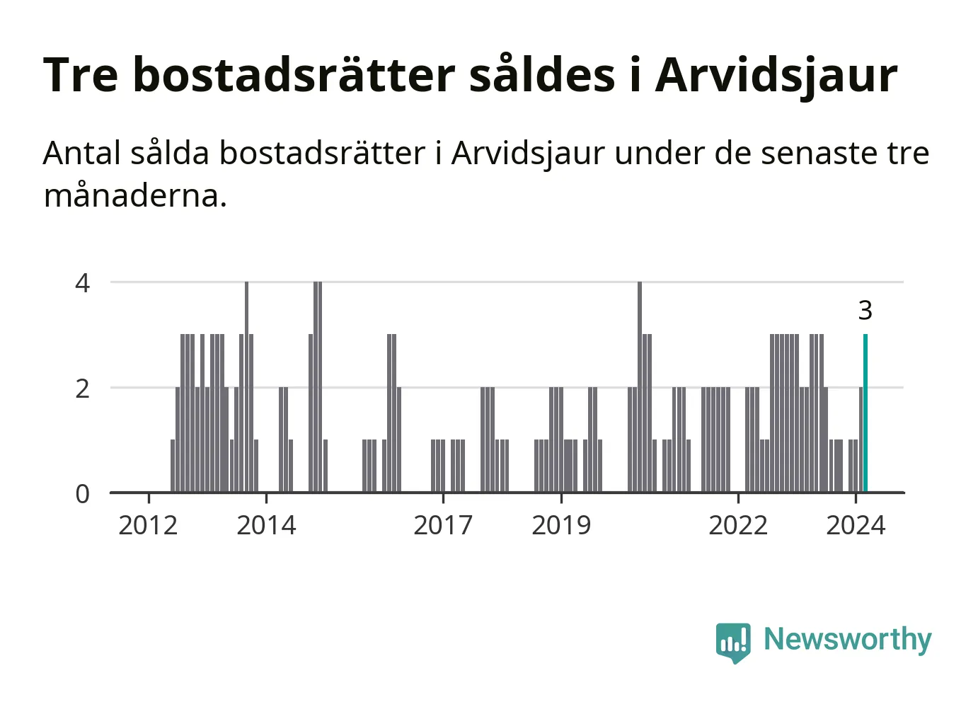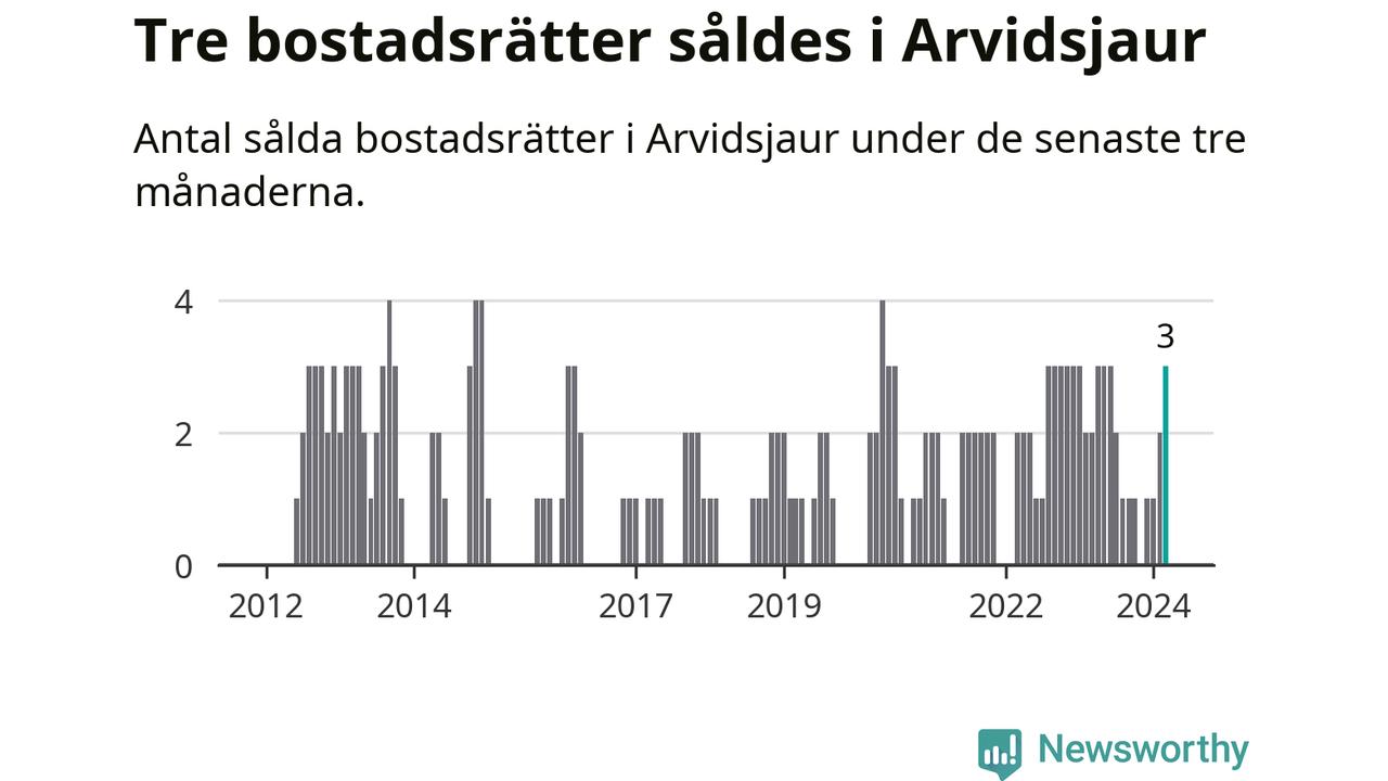 Mellan januari och mars gjordes sammanlagt tre affärer med bostadsrätter i Arvidsjaurs kommun. Det kan jämföras med två vid motsvarande tid i fjol.