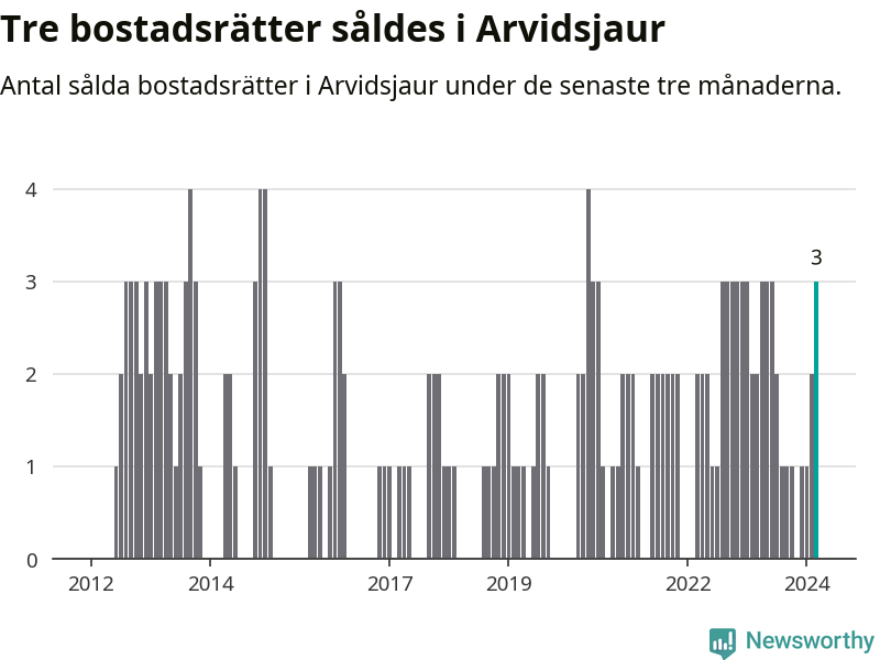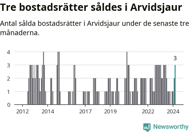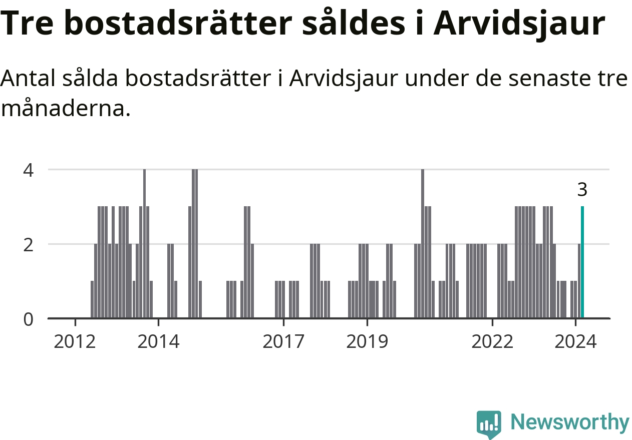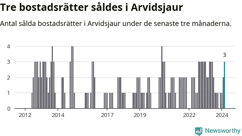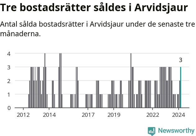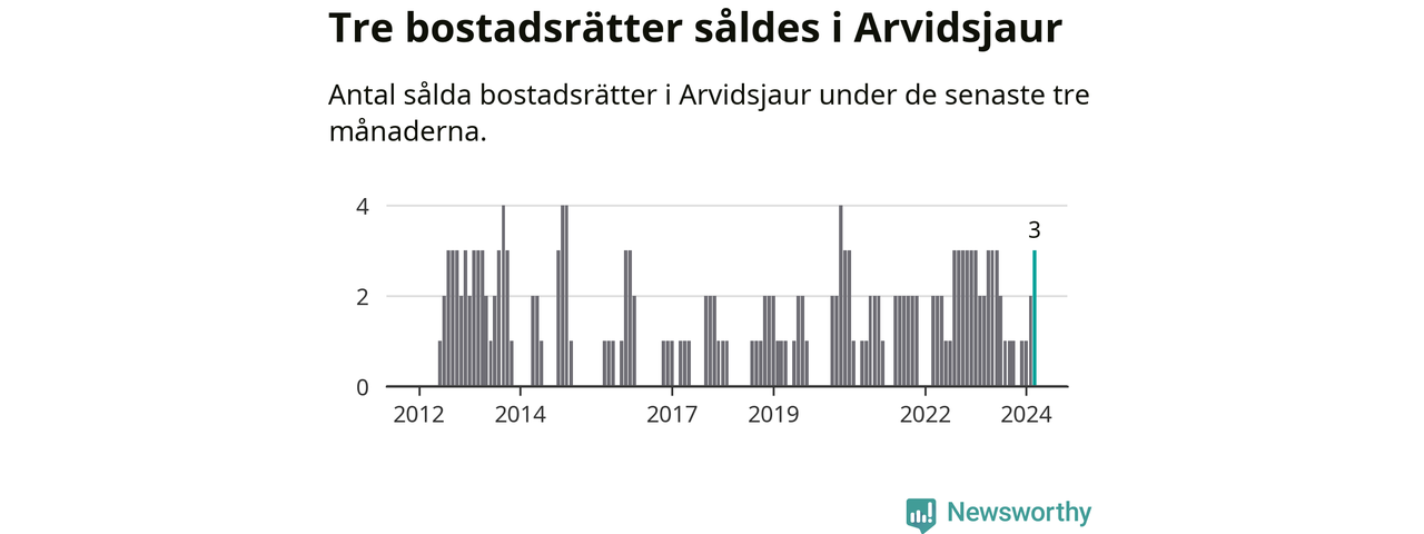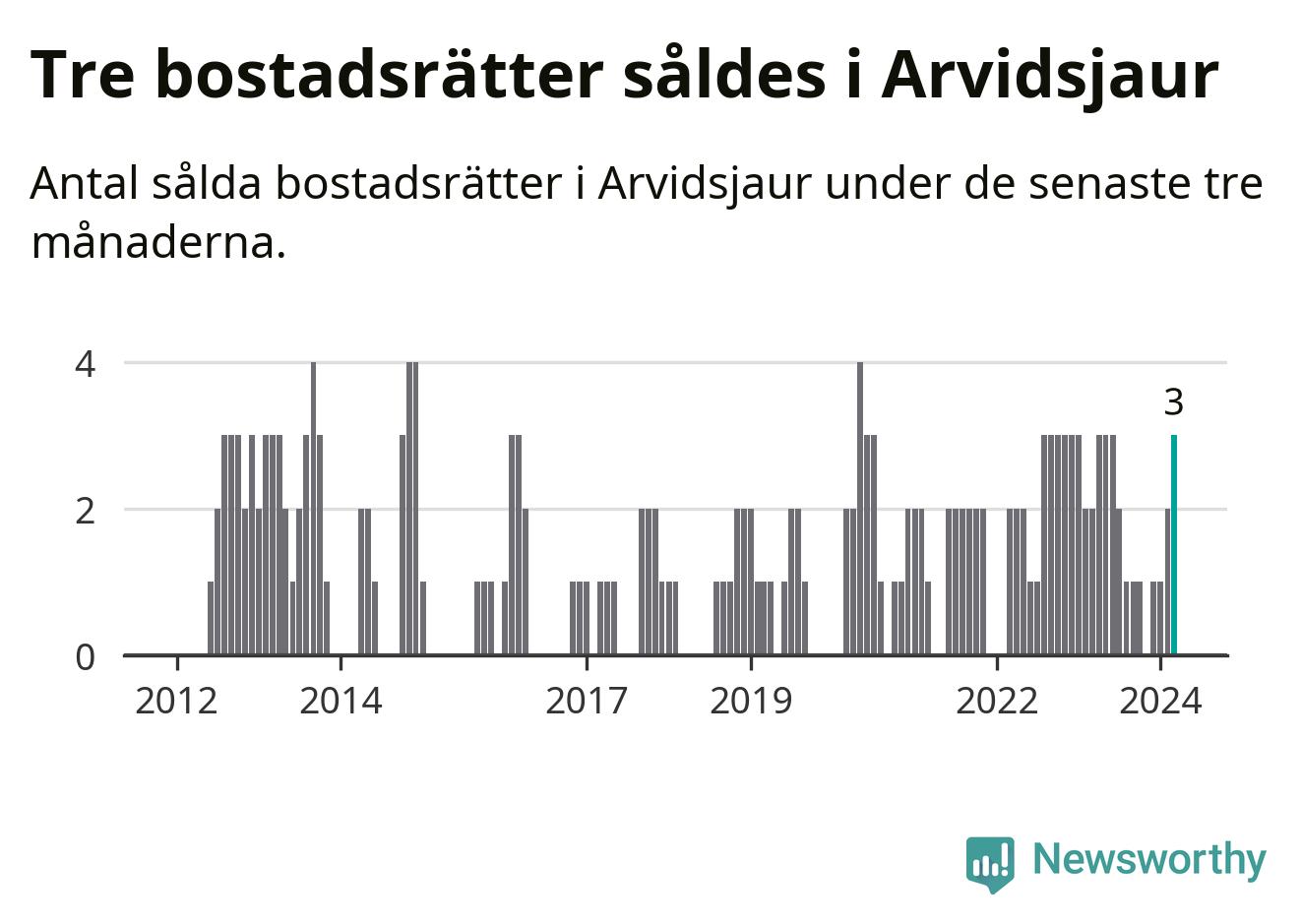 Mellan januari och mars gjordes sammanlagt tre affärer med bostadsrätter i Arvidsjaurs kommun. Det kan jämföras med två vid motsvarande tid i fjol.