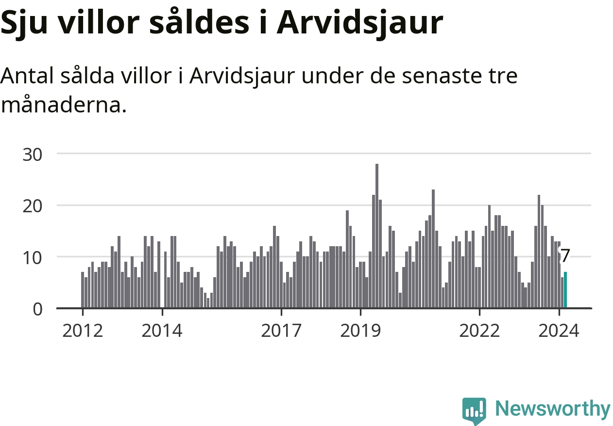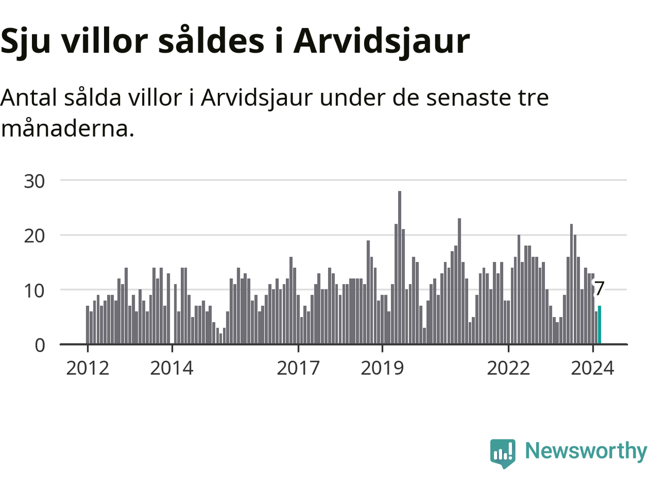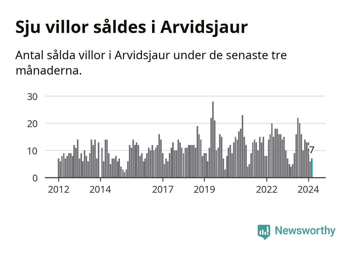 Mellan januari och mars gjordes sammanlagt sju affärer med villor i Arvidsjaurs kommun. Det kan jämföras med fyra vid motsvarande tid i fjol.