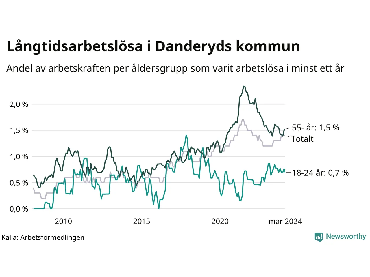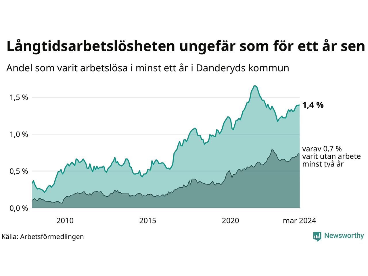 Andel arbetslösa i minst ett år1,4 %2,6 %2,7 %