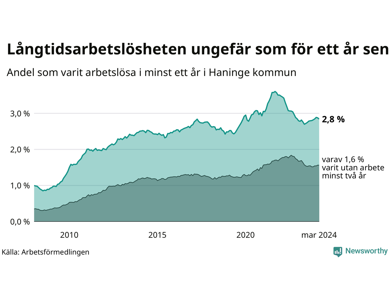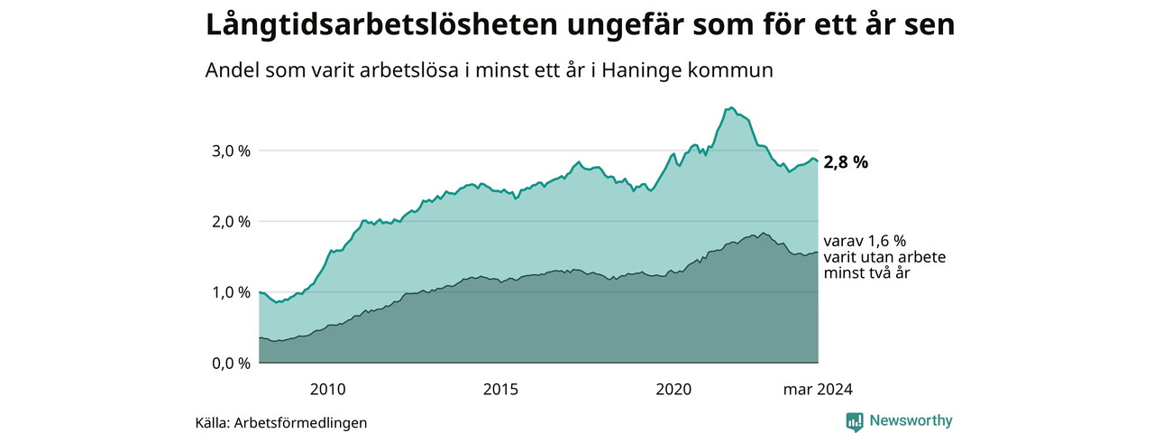 Långtidsarbetslöshet i Haninge i mars 2024