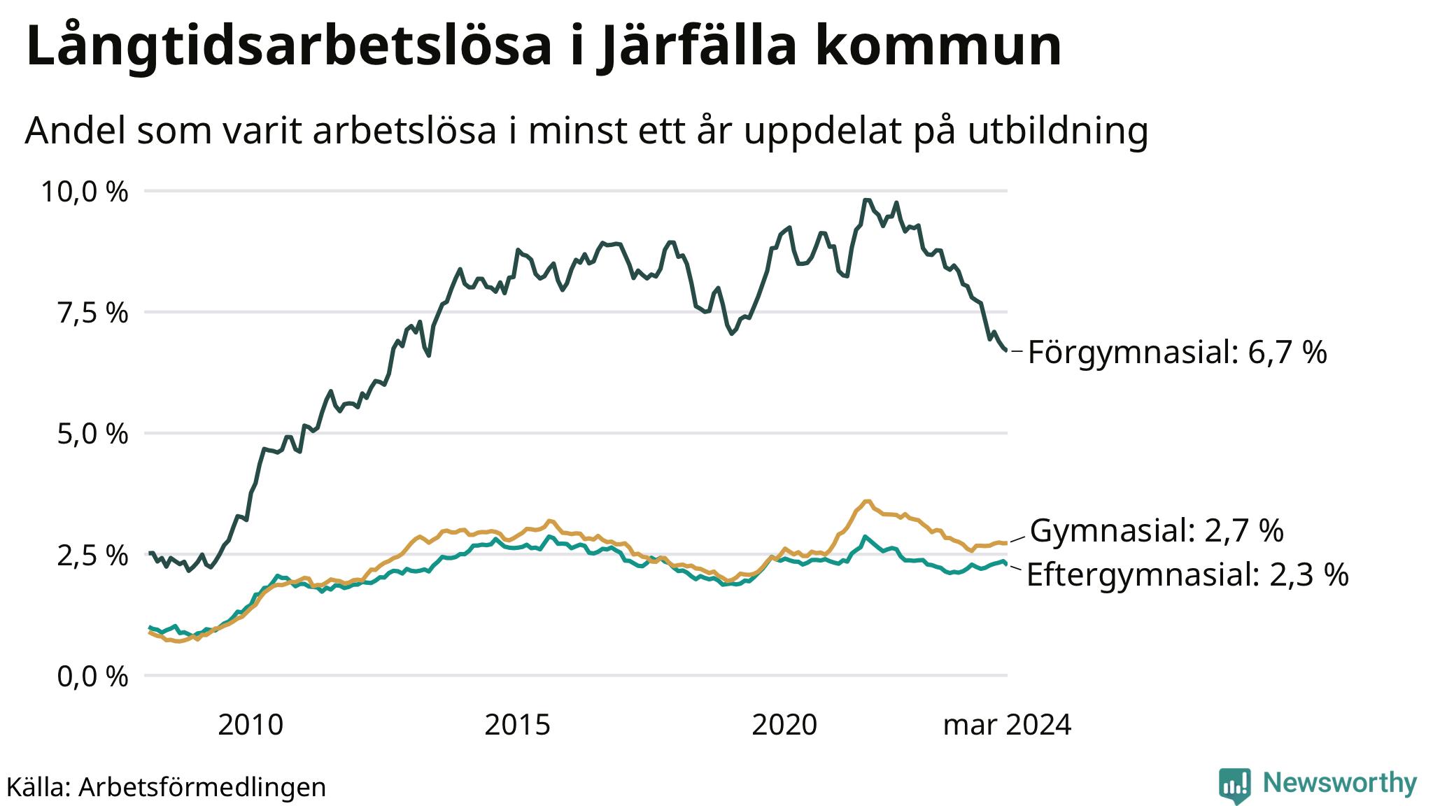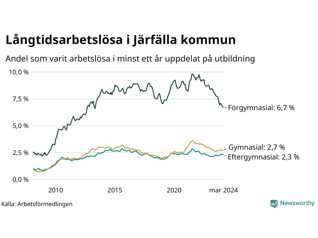 | Bland dem med gymnasieutbildning | 2,7 % | 2,5 % | 2,2 % |