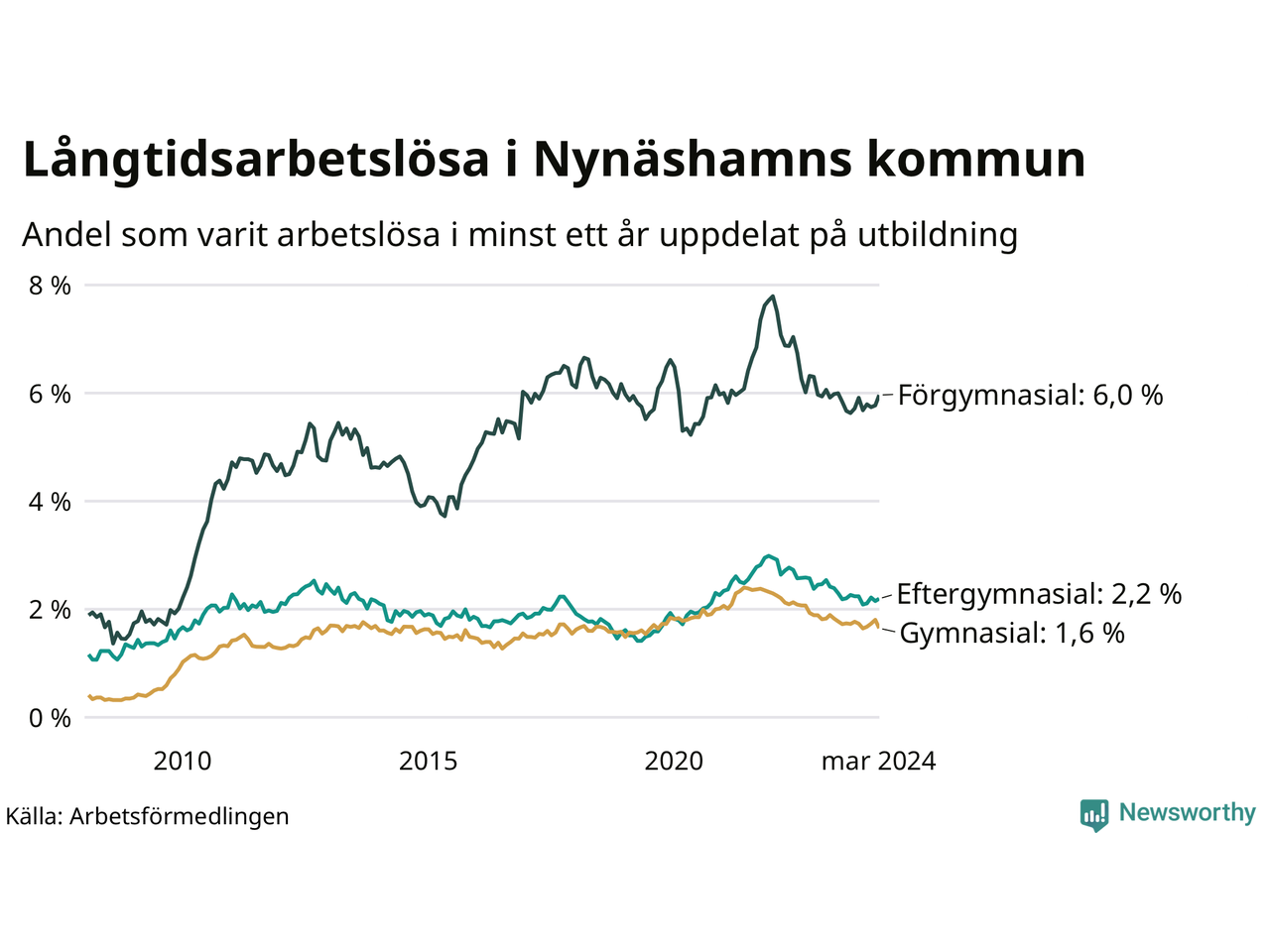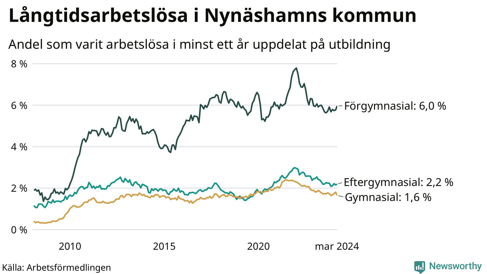 | Bland dem utan gymnasieutbildning | 6,0 % | 6,7 % | 7,9 % |