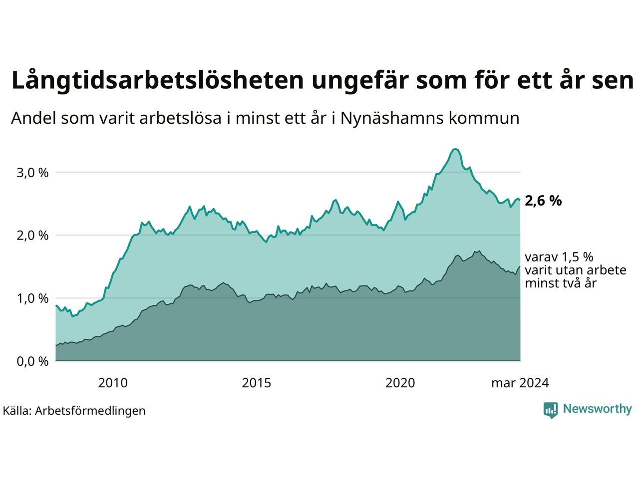 | Andel arbetslösa i minst ett år | 2,6 % | 2,6 % | 2,7 % |