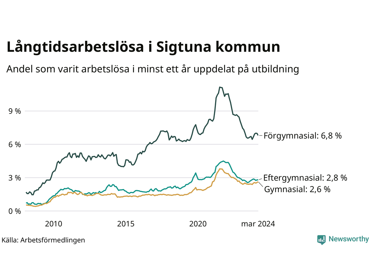 | Bland dem med gymnasieutbildning | 2,6 % | 2,5 % | 2,2 % |