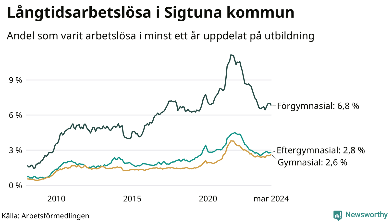 | Bland dem med eftergymnasial utbildning | 2,8 % | 1,7 % | 1,6 % |