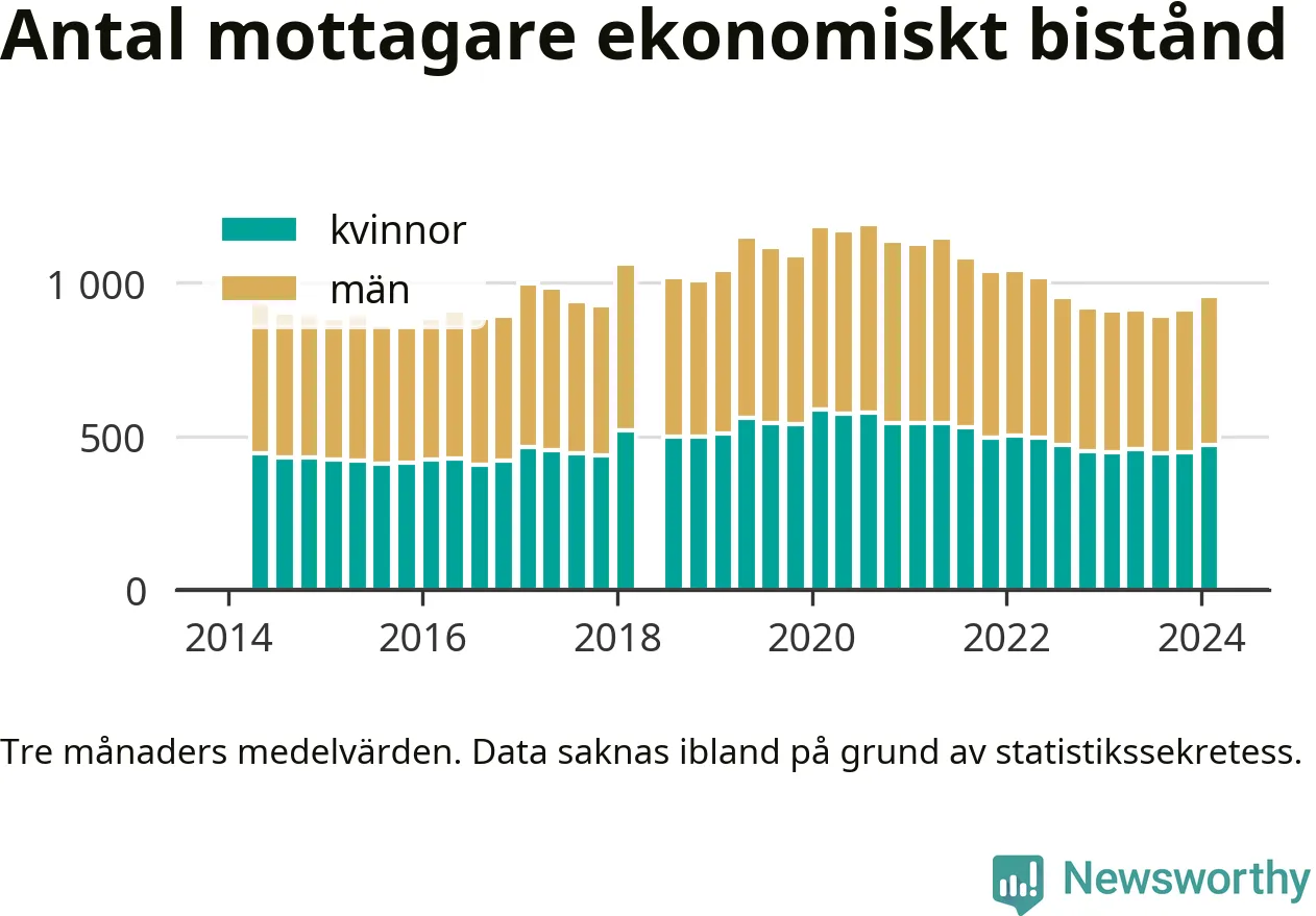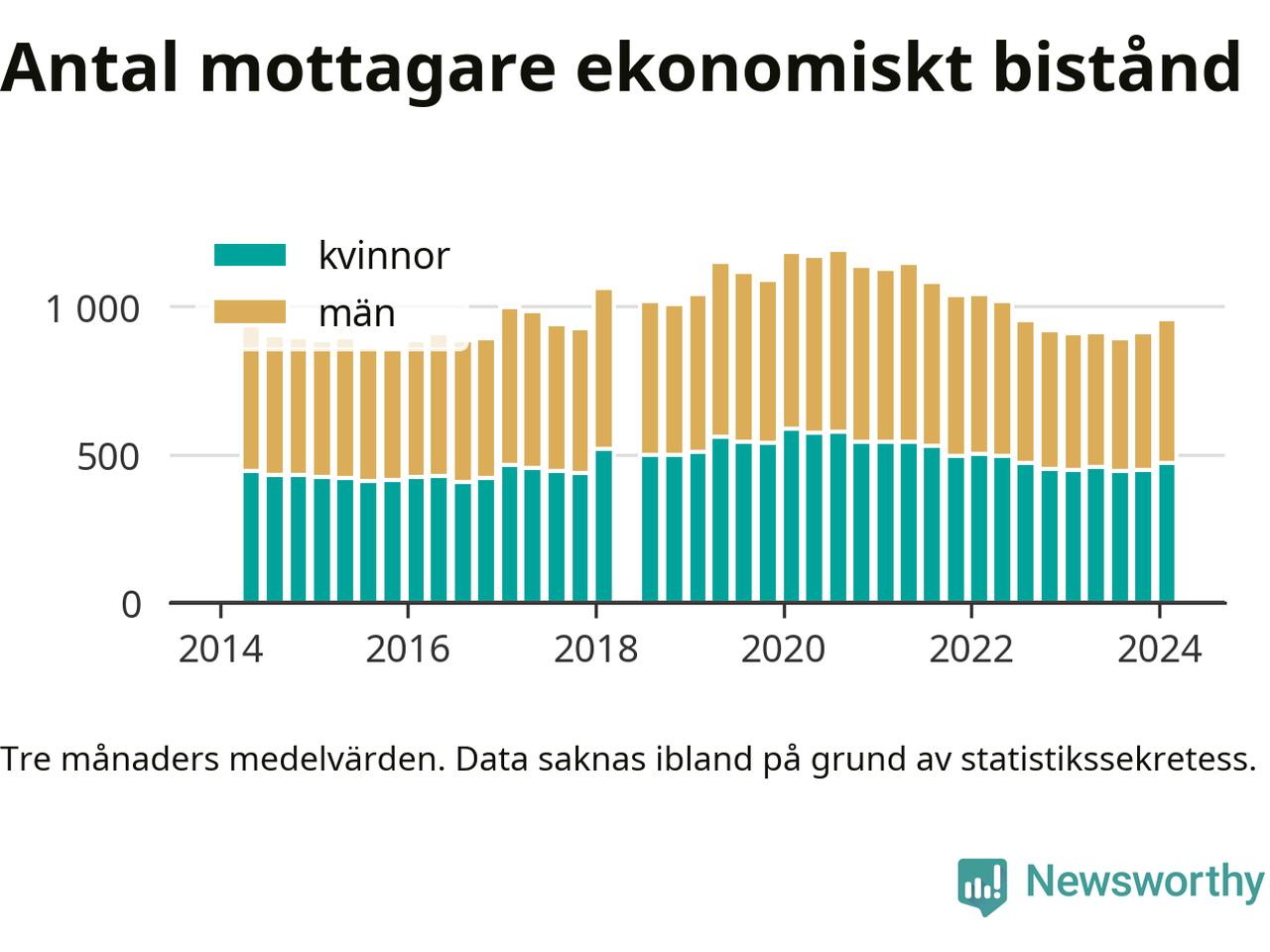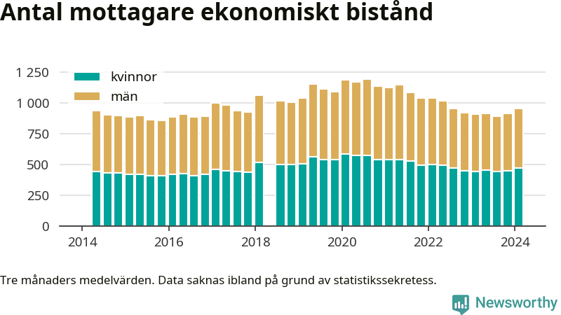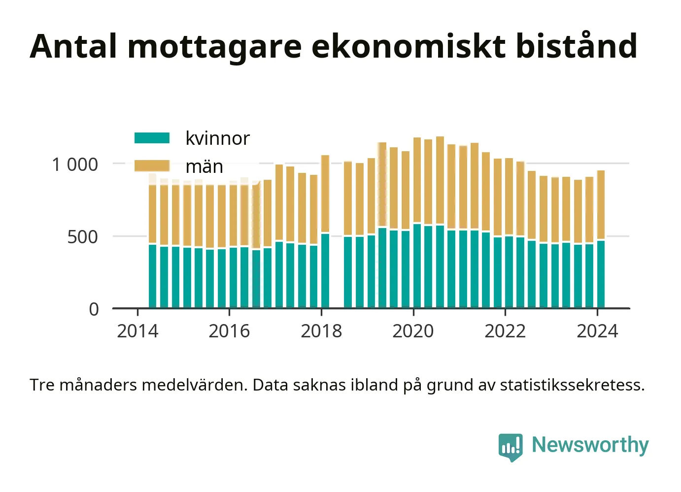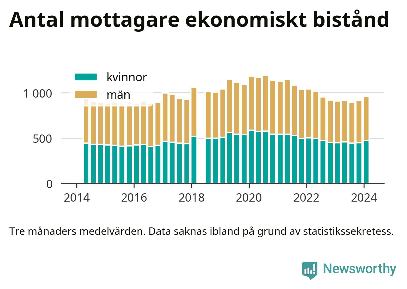 I genomsnitt 486 män och 471 kvinnor fick ekonomiskt bistånd varje månad under vintern.