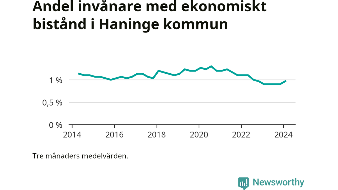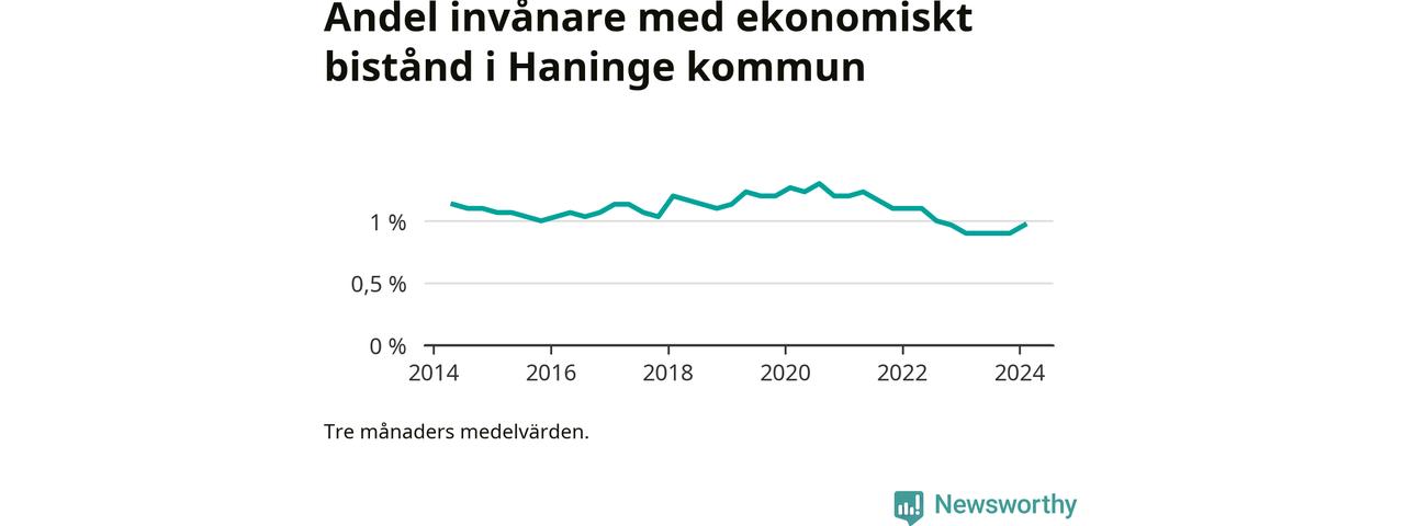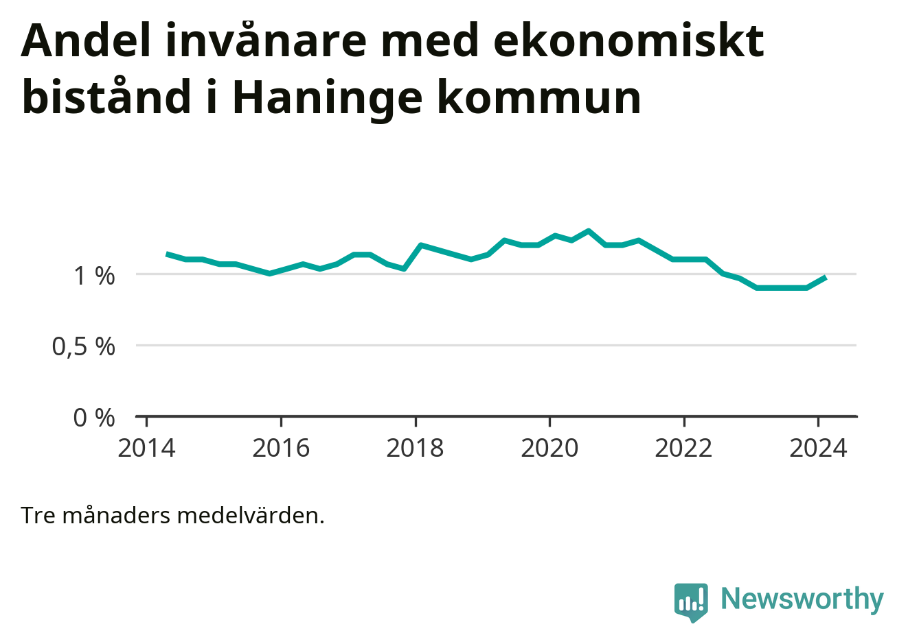 Andelen invånare med ekonomiskt bistånd i Haninge kommun var i stort sett oförändrad under vintern jämfört med perioden innan. Det visar den senaste, preliminära statistiken från Socialstyrelsen.