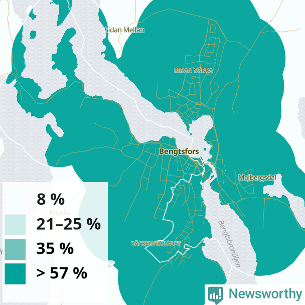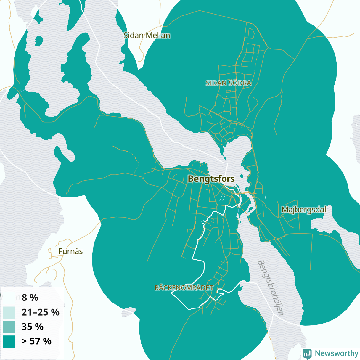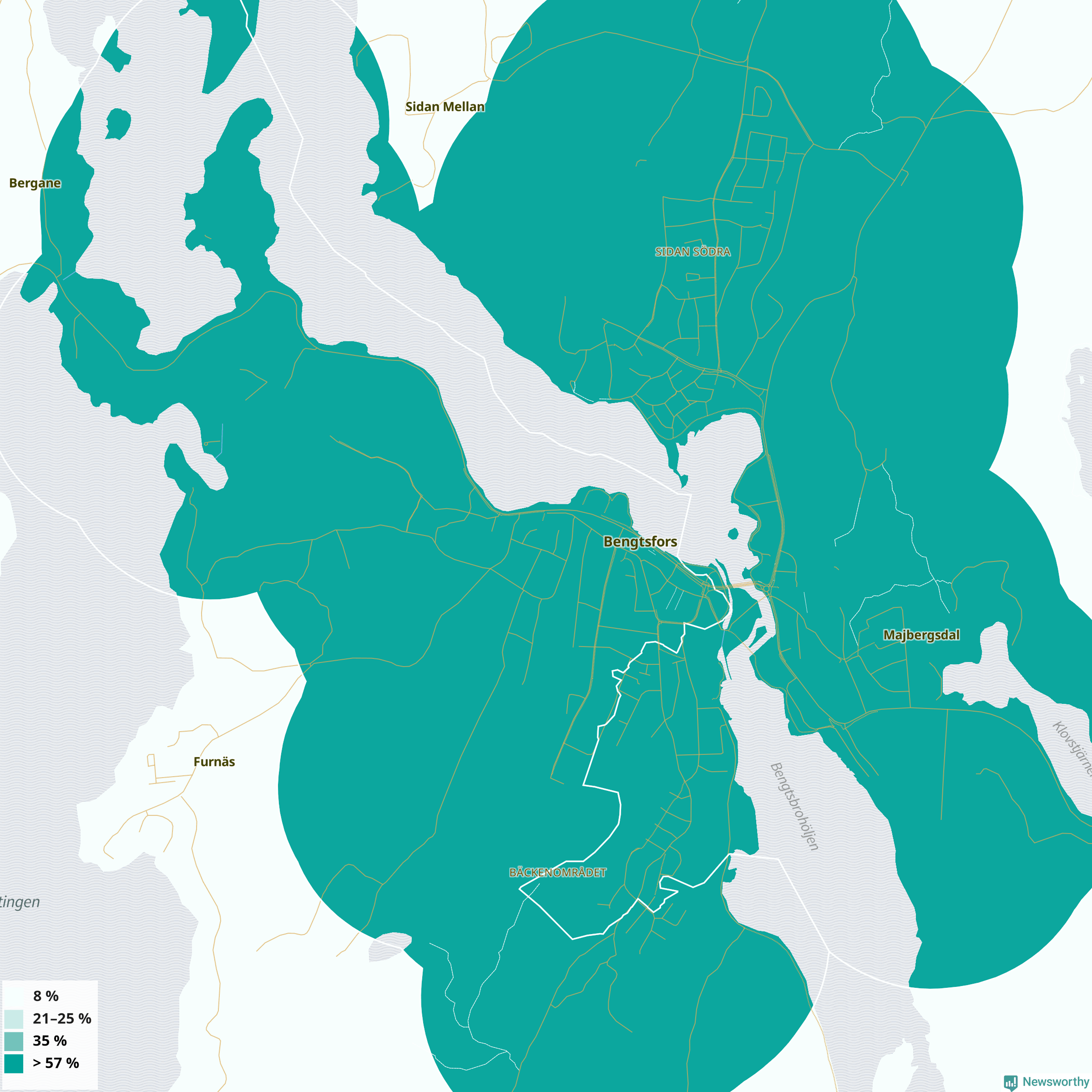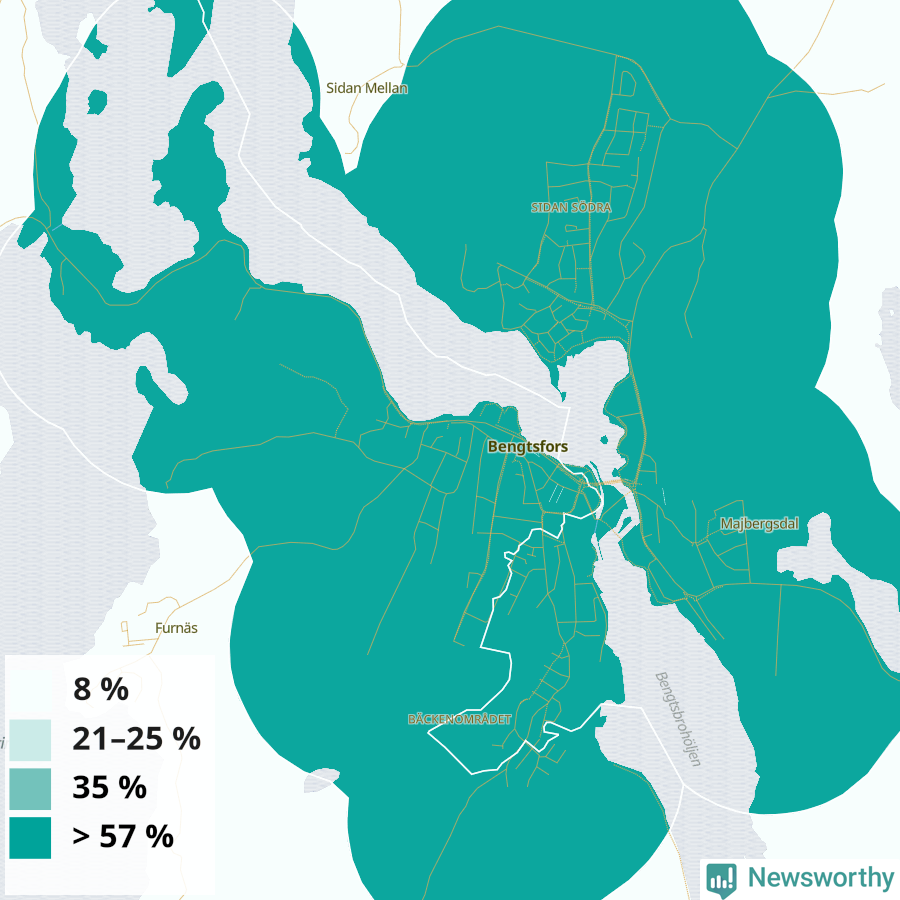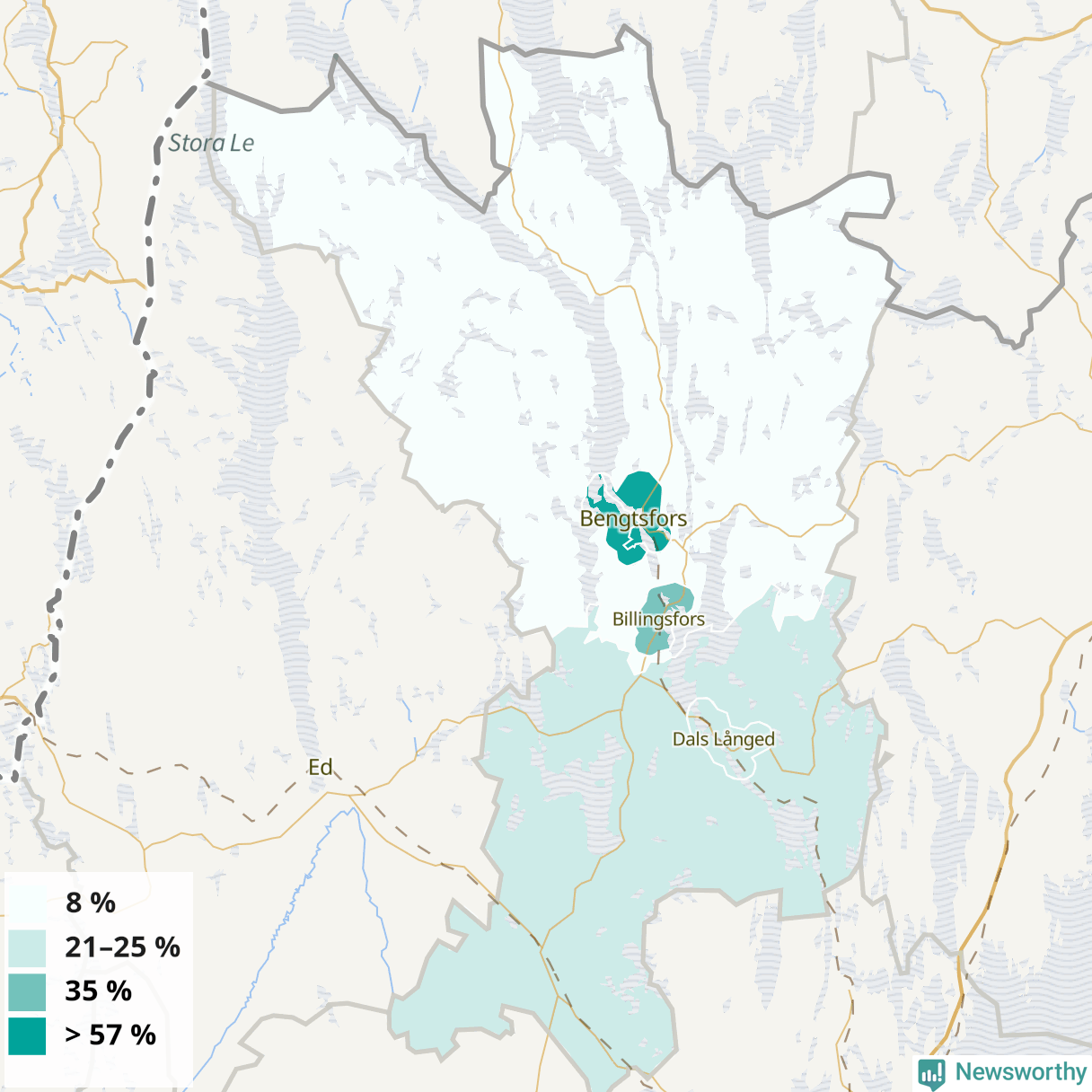 | Bengtsfors | 35 % | 36 % | 33 % | Bengtsfors centrum (64 %) |