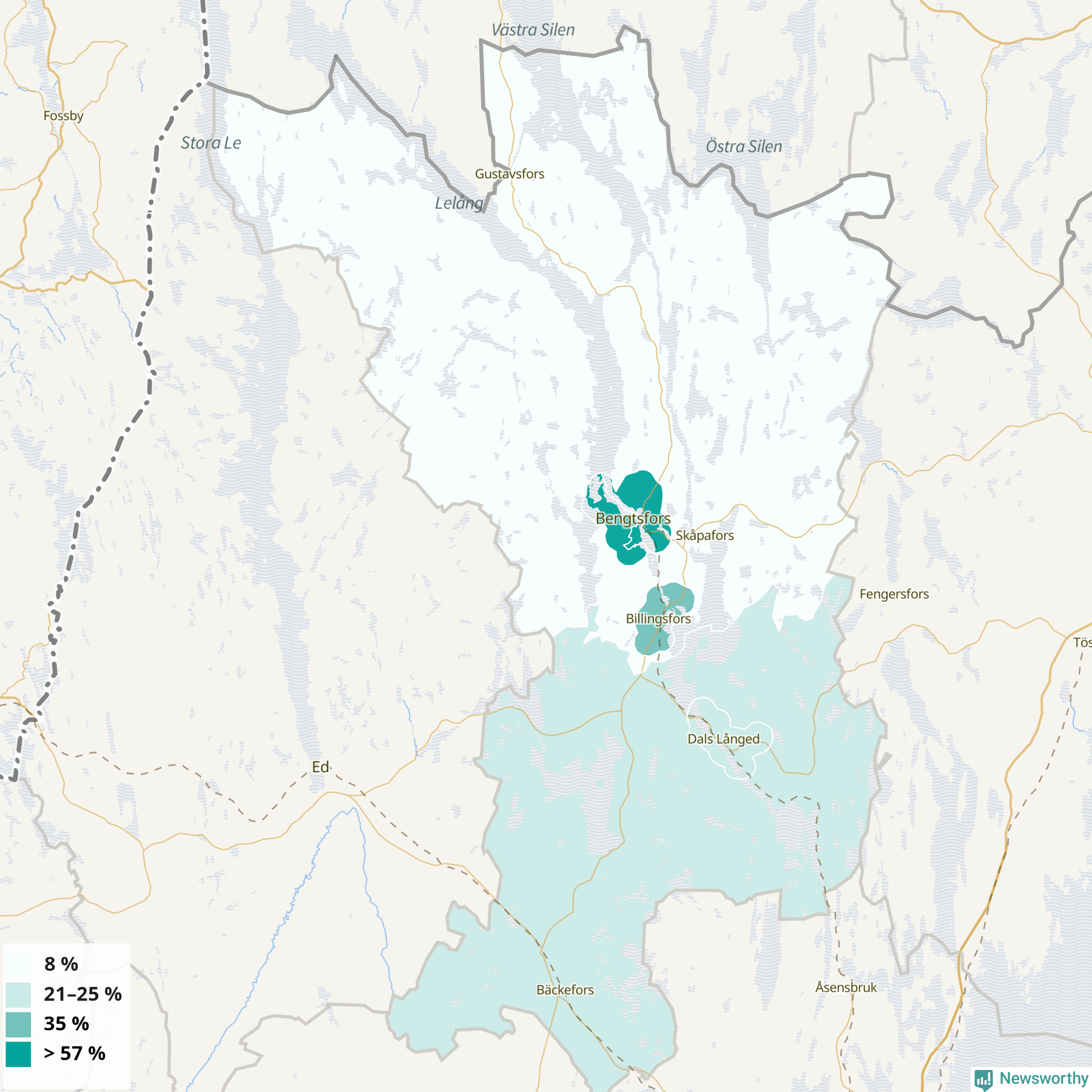 | Dals-Ed | 50 % | 52 % | 48 % | Dals-Ed-Äng (70 %) |