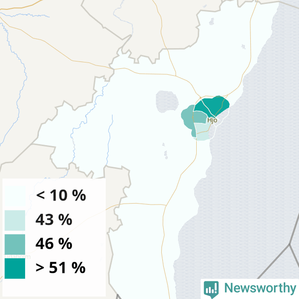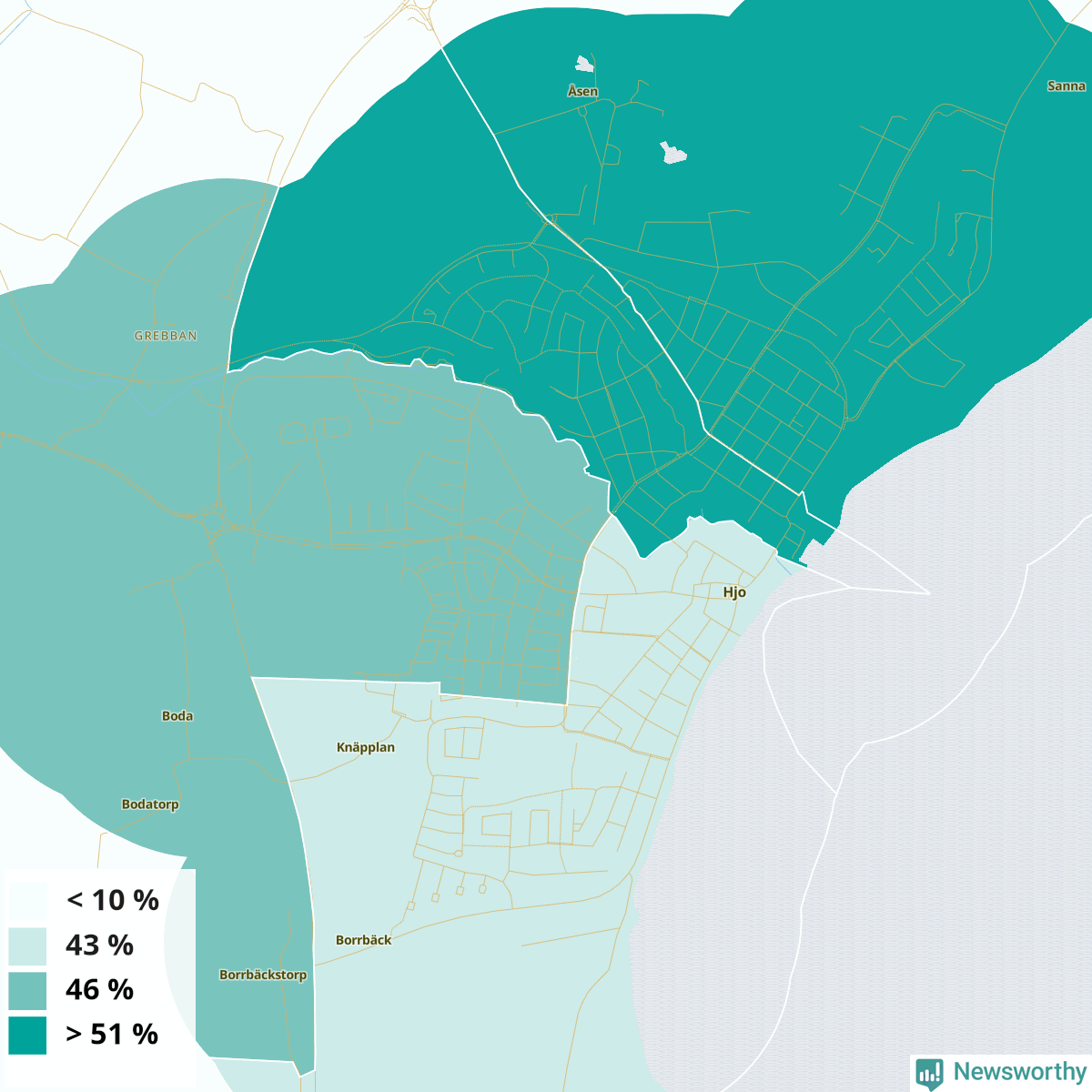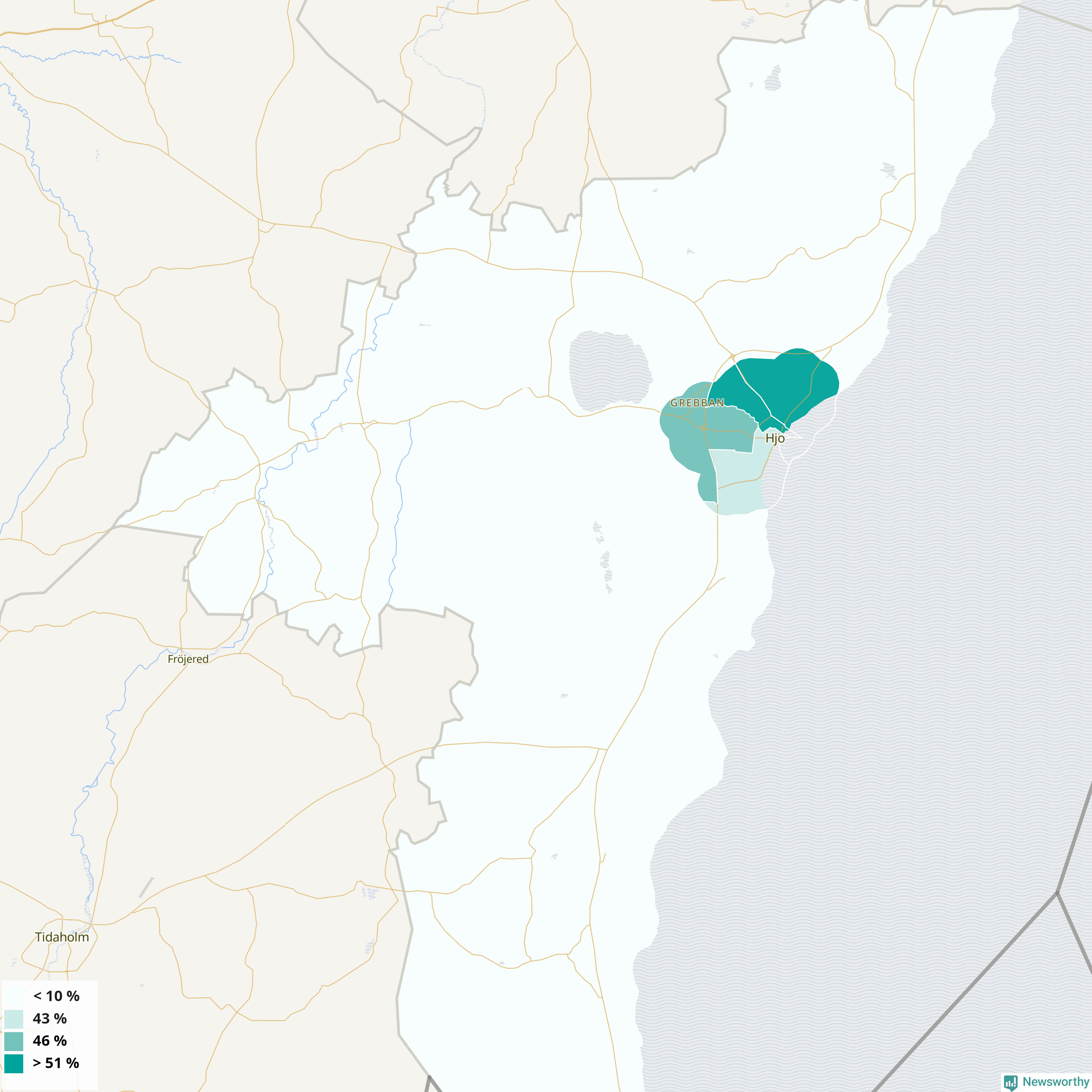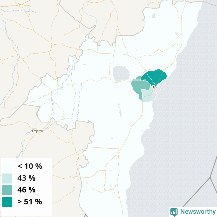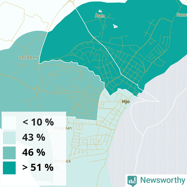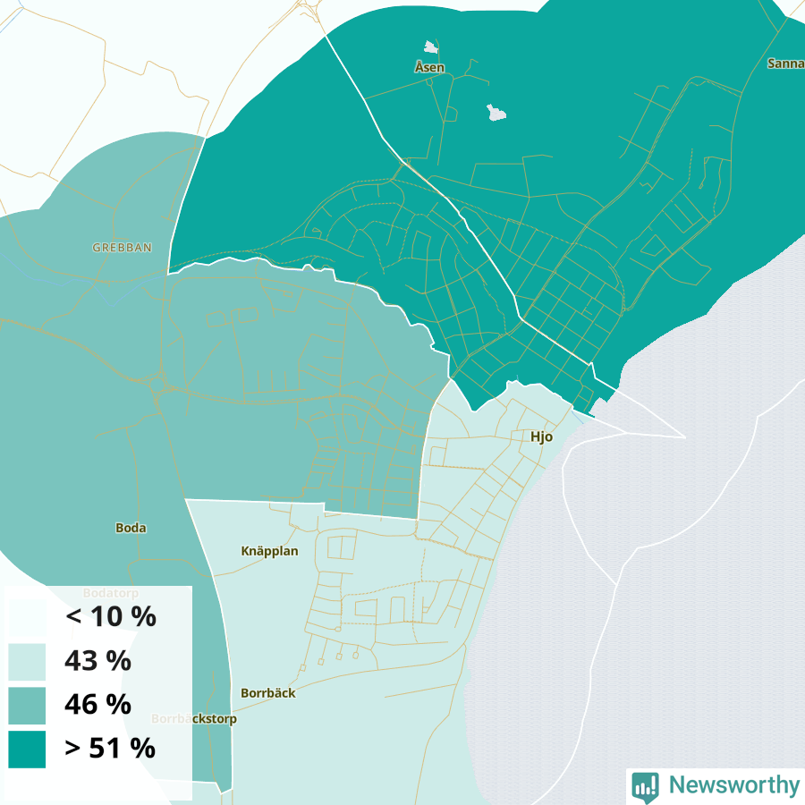 Hjo37 %41 %33 %Delar av Hjo norr (54 %)