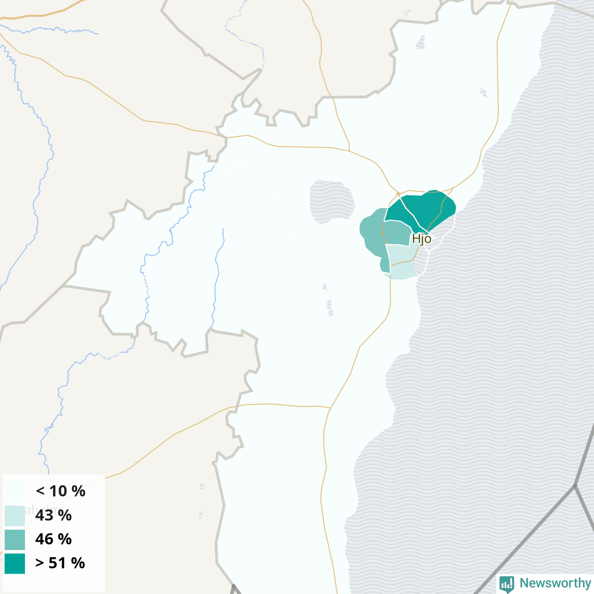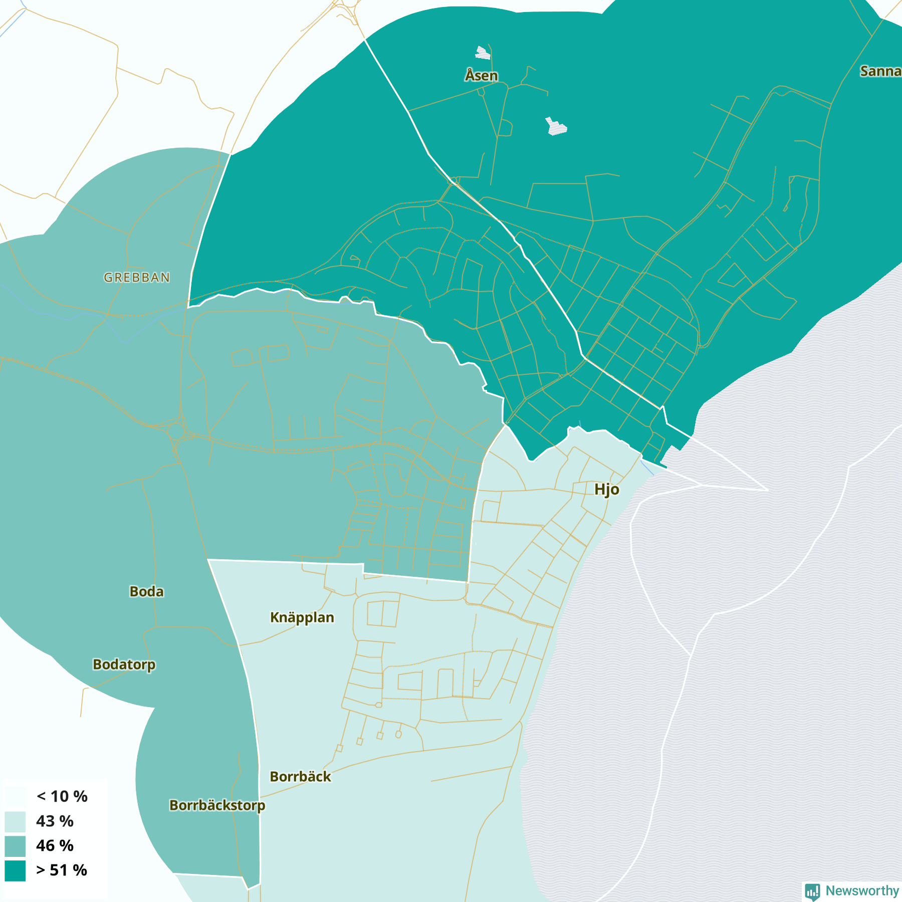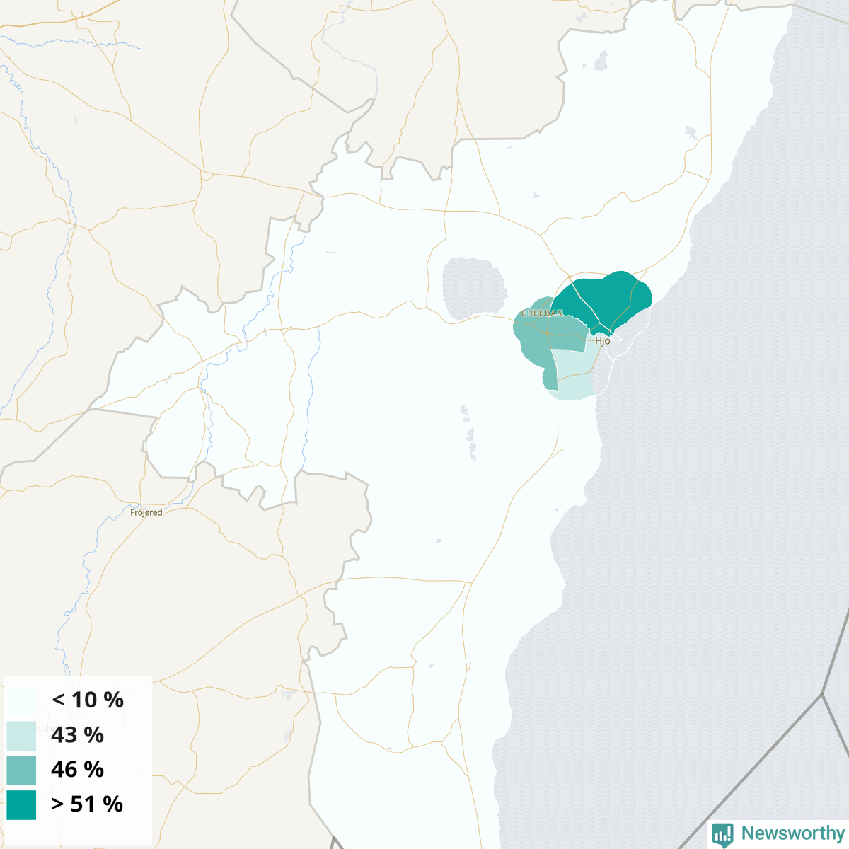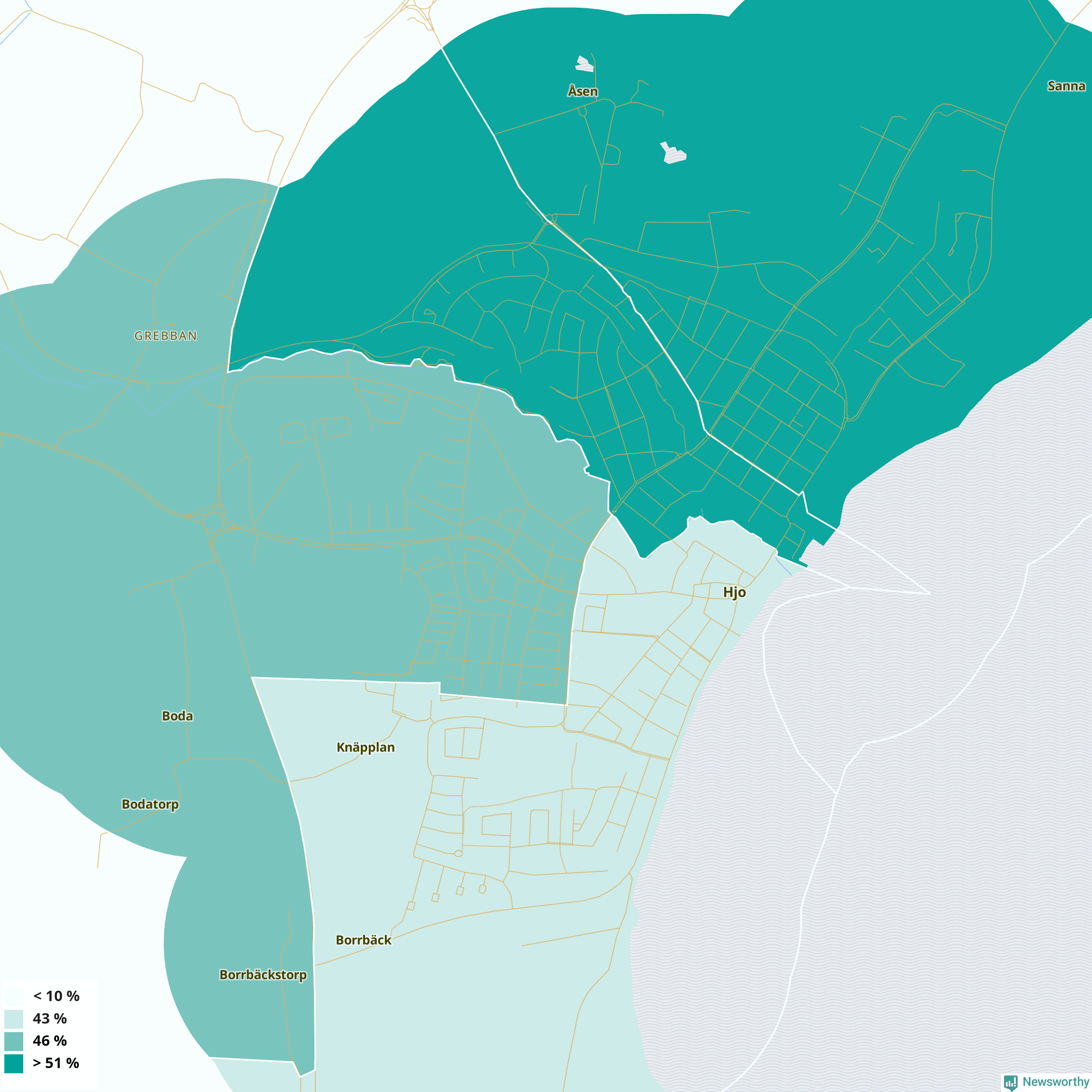 Hjo37 %41 %33 %Delar av Hjo norr (54 %)