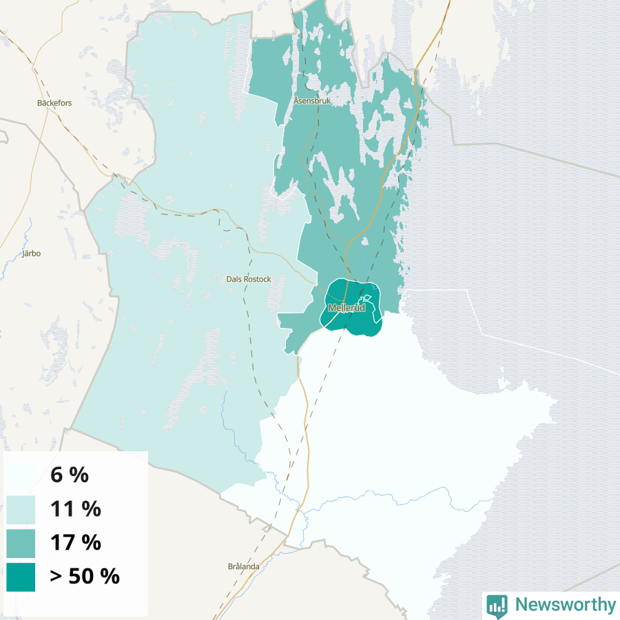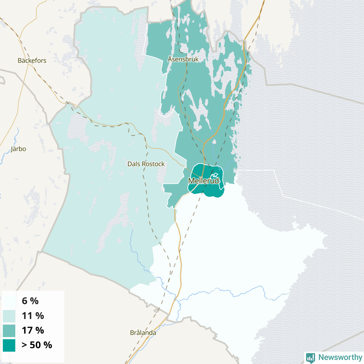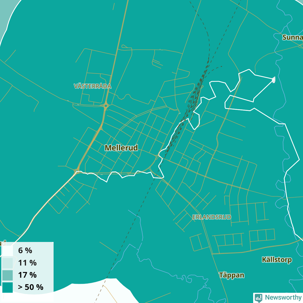 Mellerud29 %32 %26 %Mellerud norra (53 %)