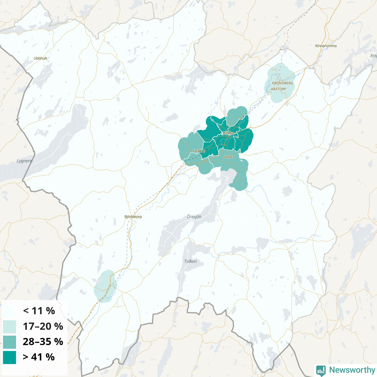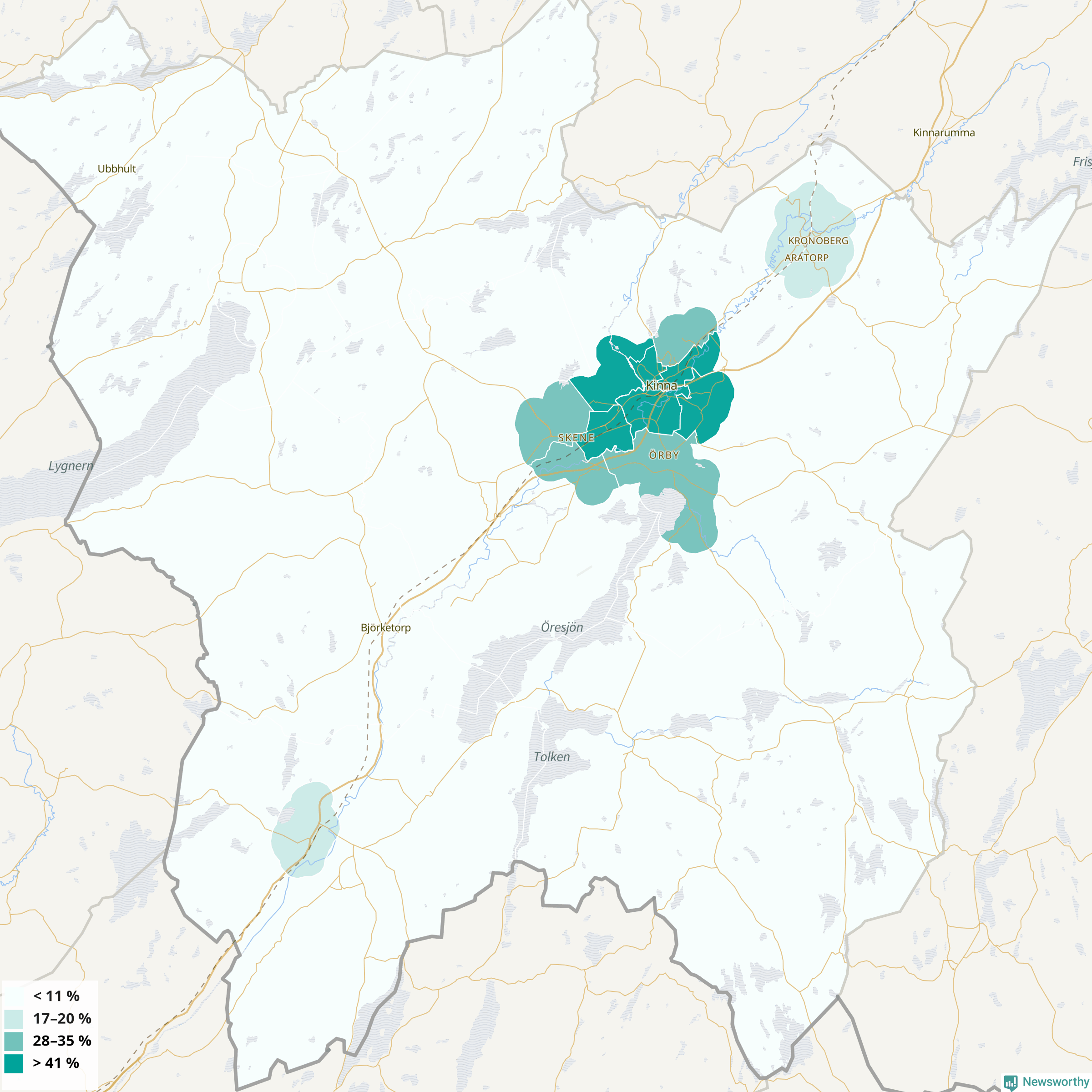 Mark22 %25 %19 %Skene centrum och Snickare-Muraren-Aspäng (45 %)