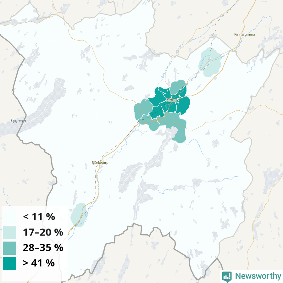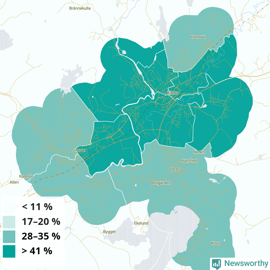 Falköping33 %37 %29 %Delar av Falköping östra stad (54 %)