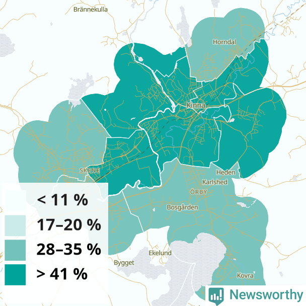 Lidköping42 %45 %38 %Margretelund (69 %)