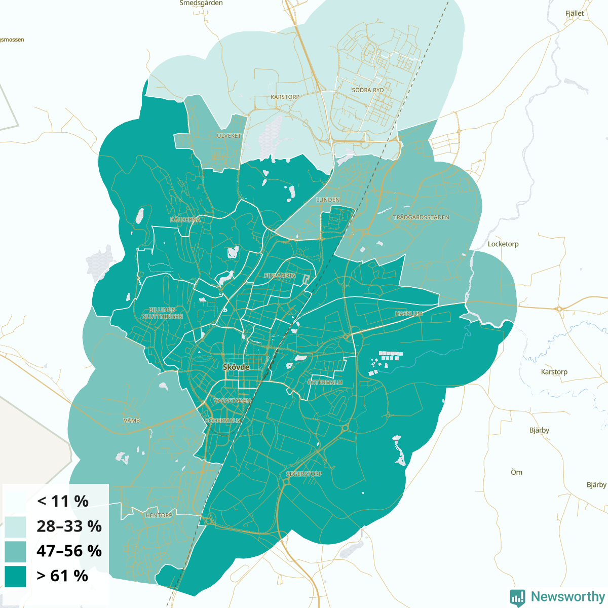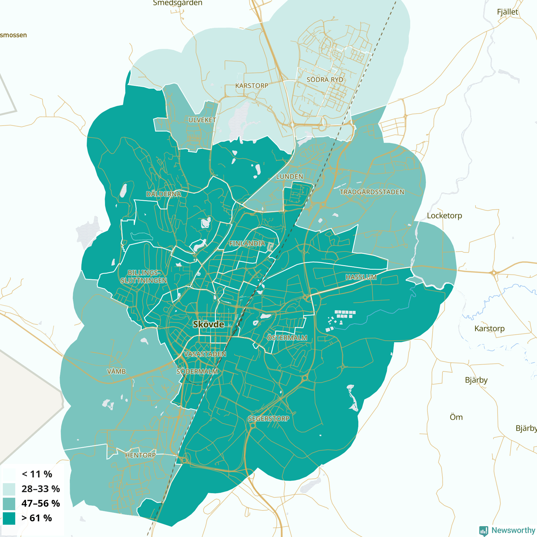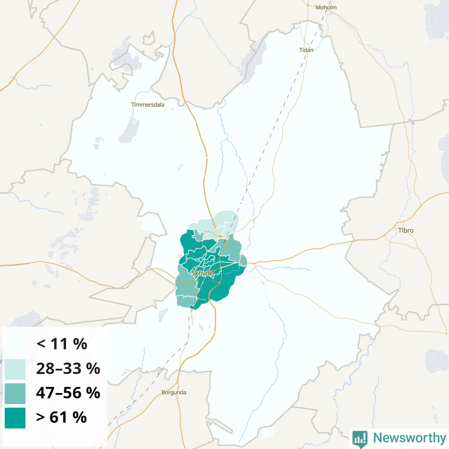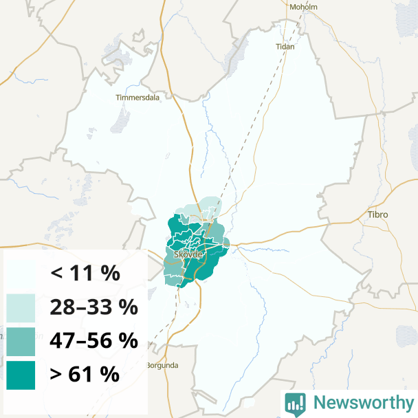 Skara34 %37 %31 %Kämpagården-Gällkvist-Sörskogen (56 %)