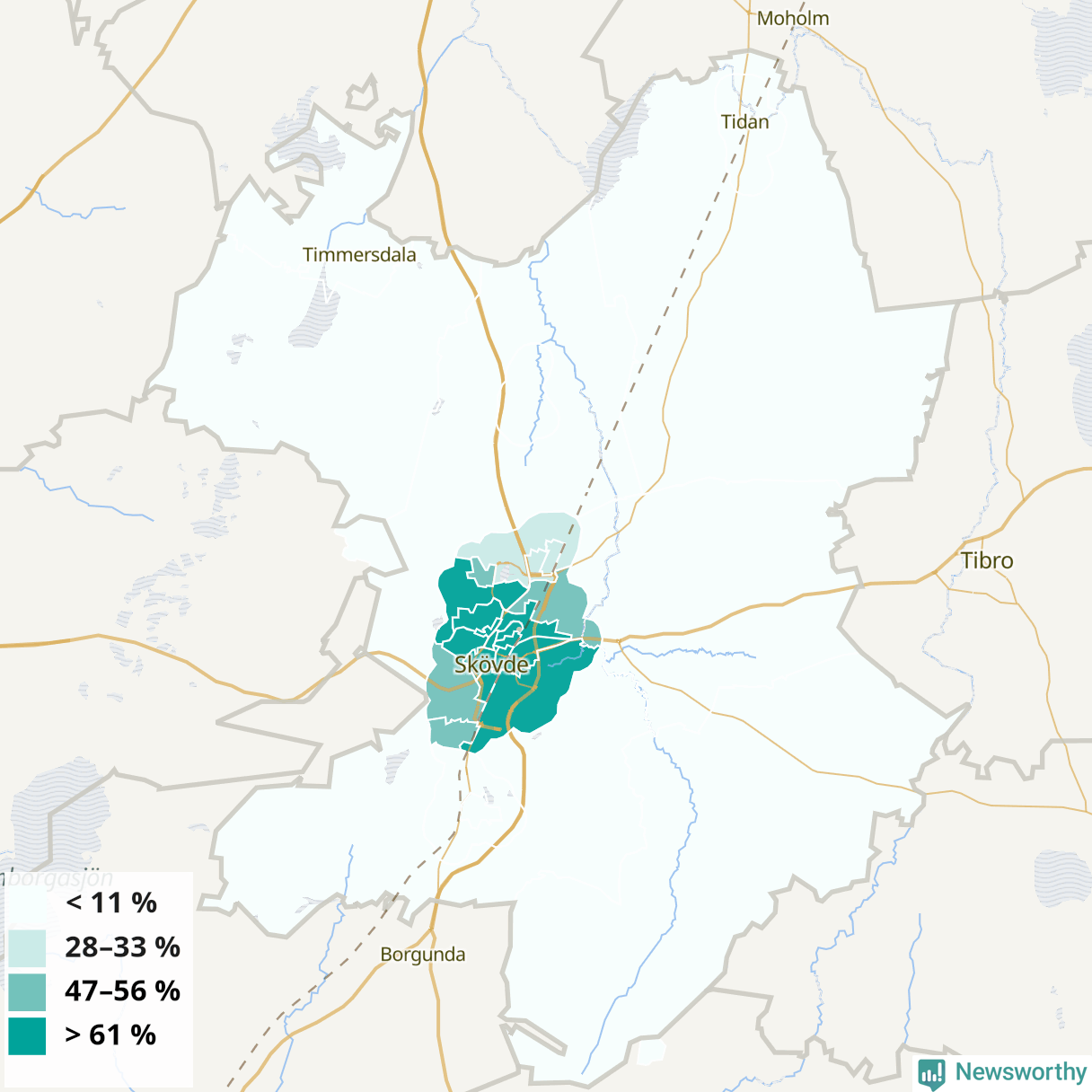 Tidaholm40 %44 %36 %Tidaholm östra (62 %)