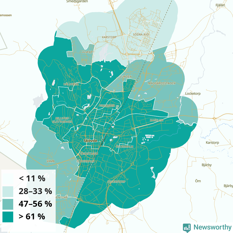 Falköping33 %37 %29 %Delar av Falköping östra stad (54 %)