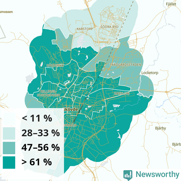 Lidköping42 %45 %38 %Margretelund (69 %)