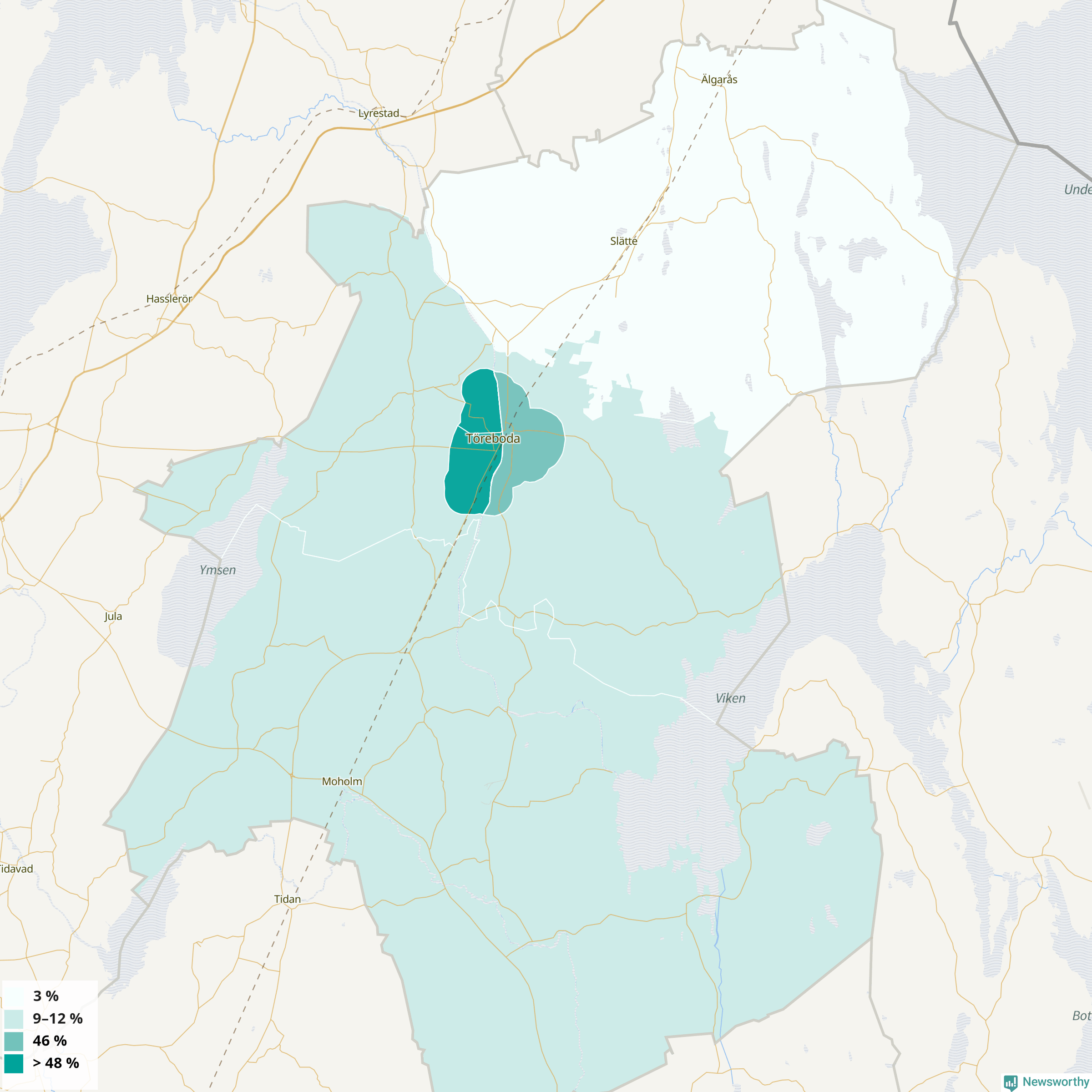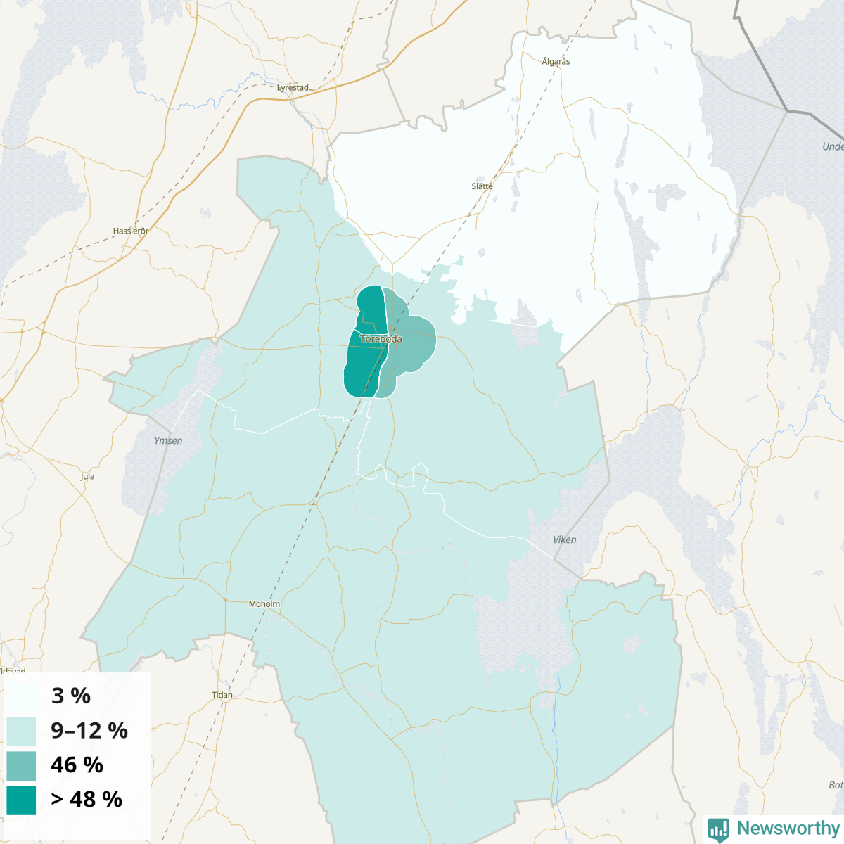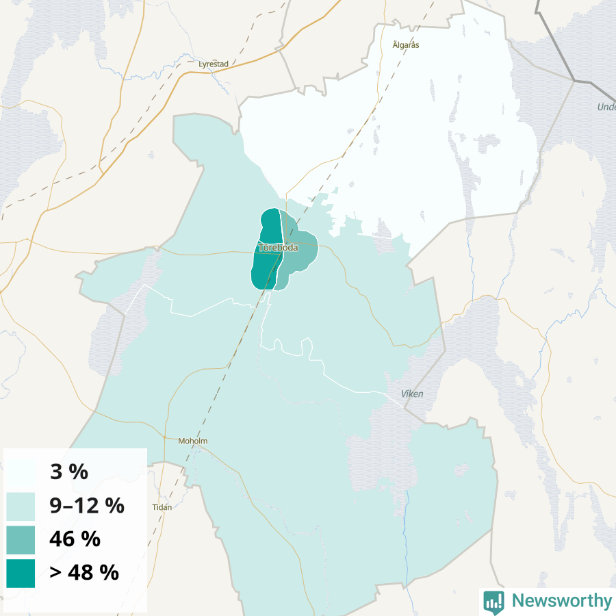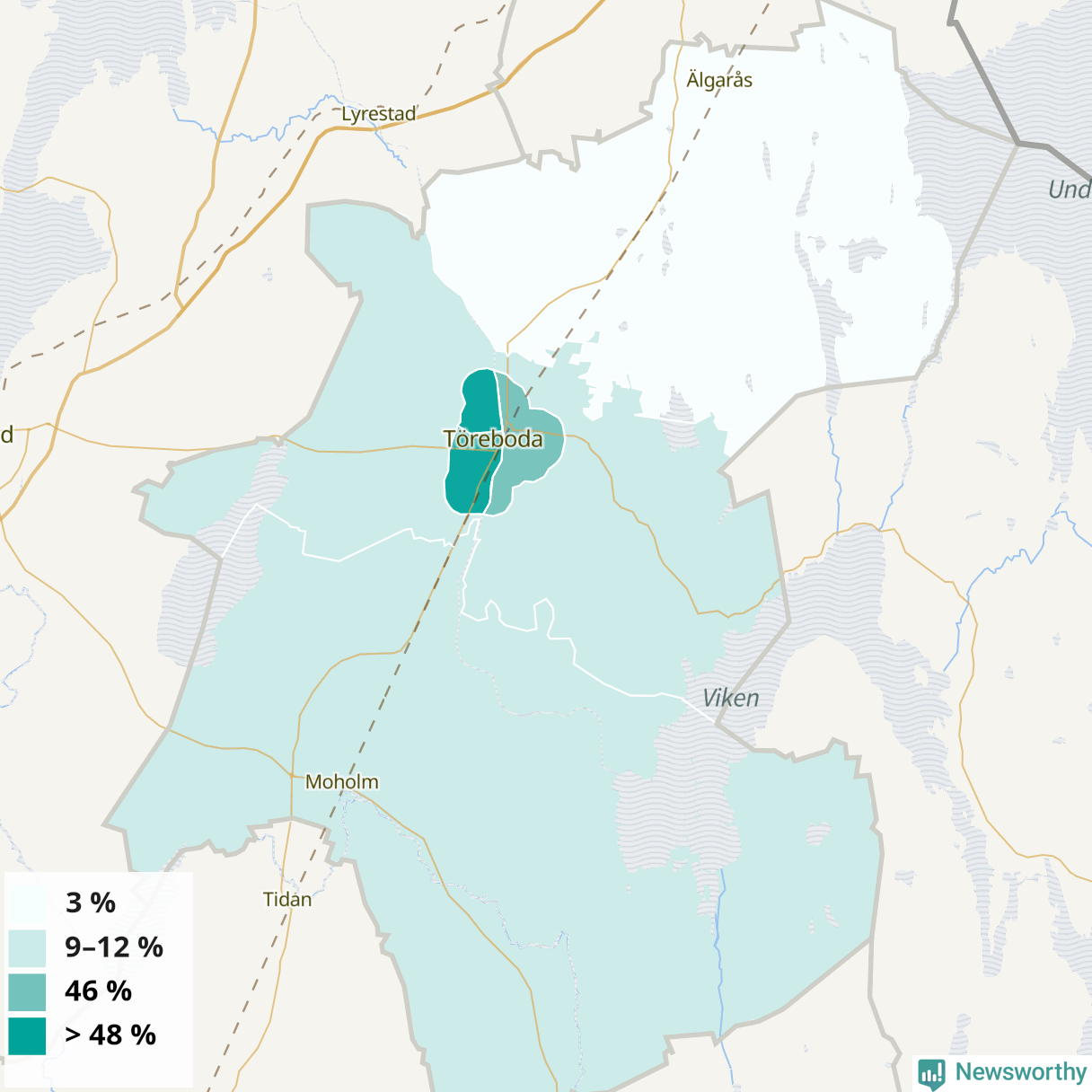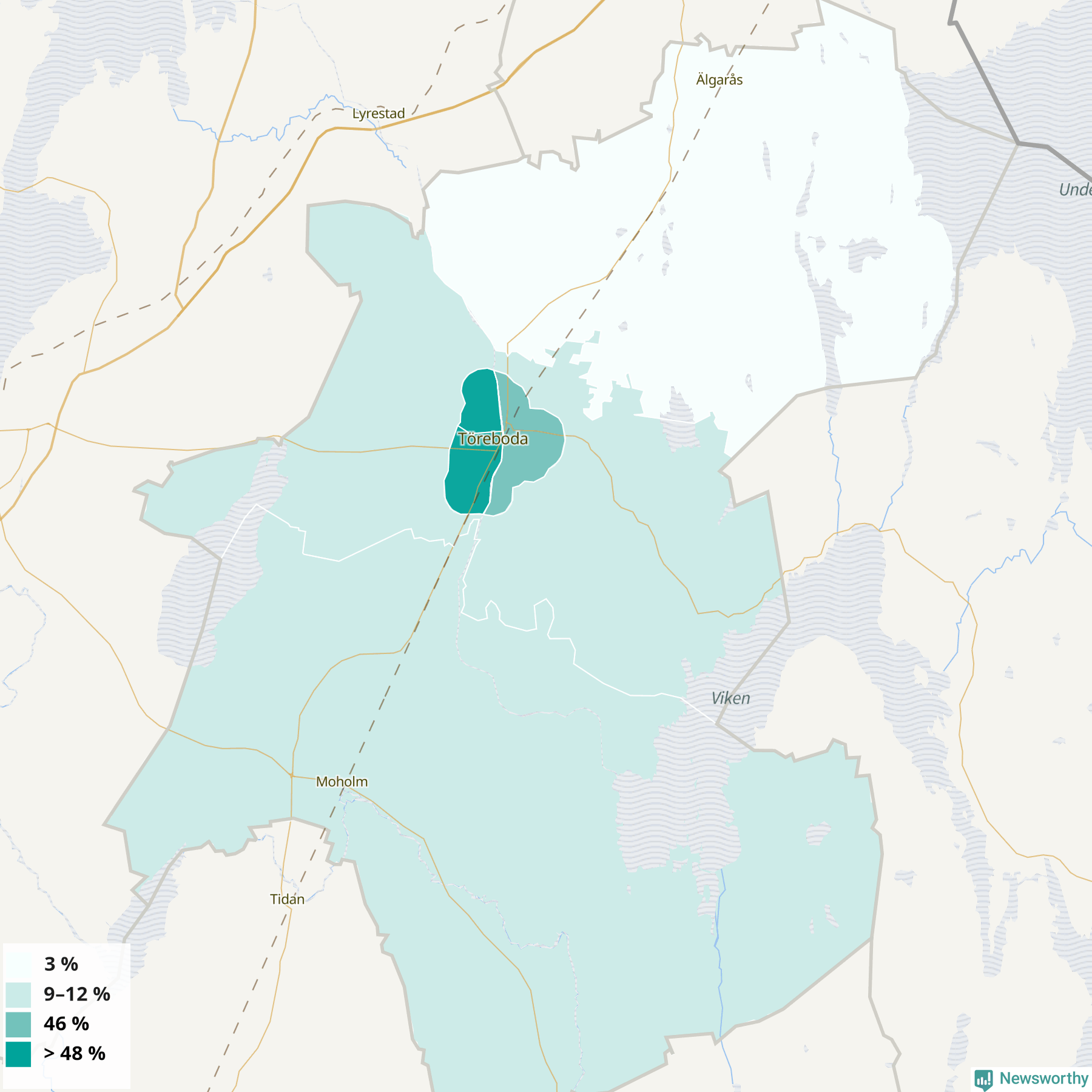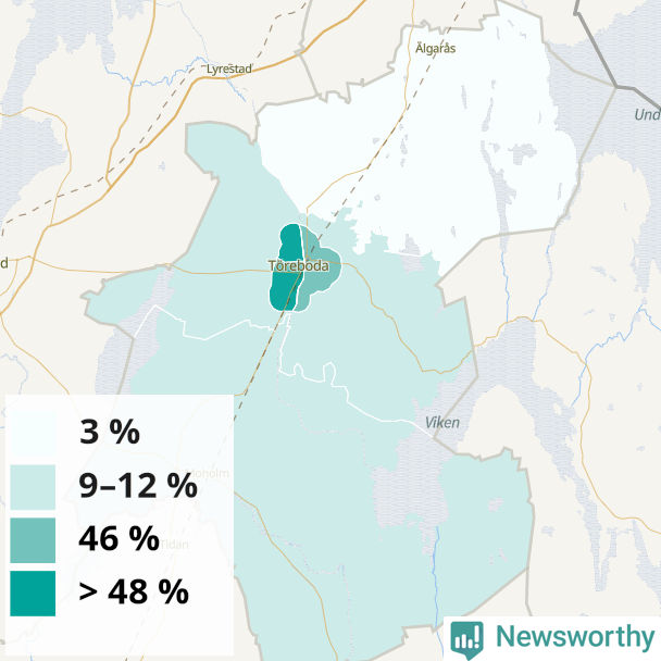 | Töreboda centrum norra-Berget-Kårtorp | 48 % |