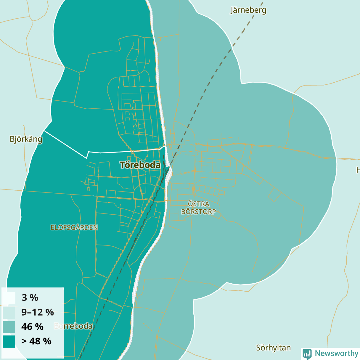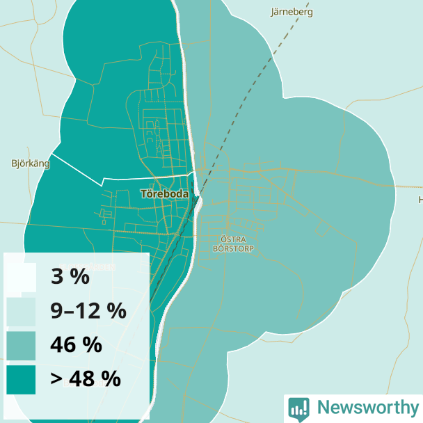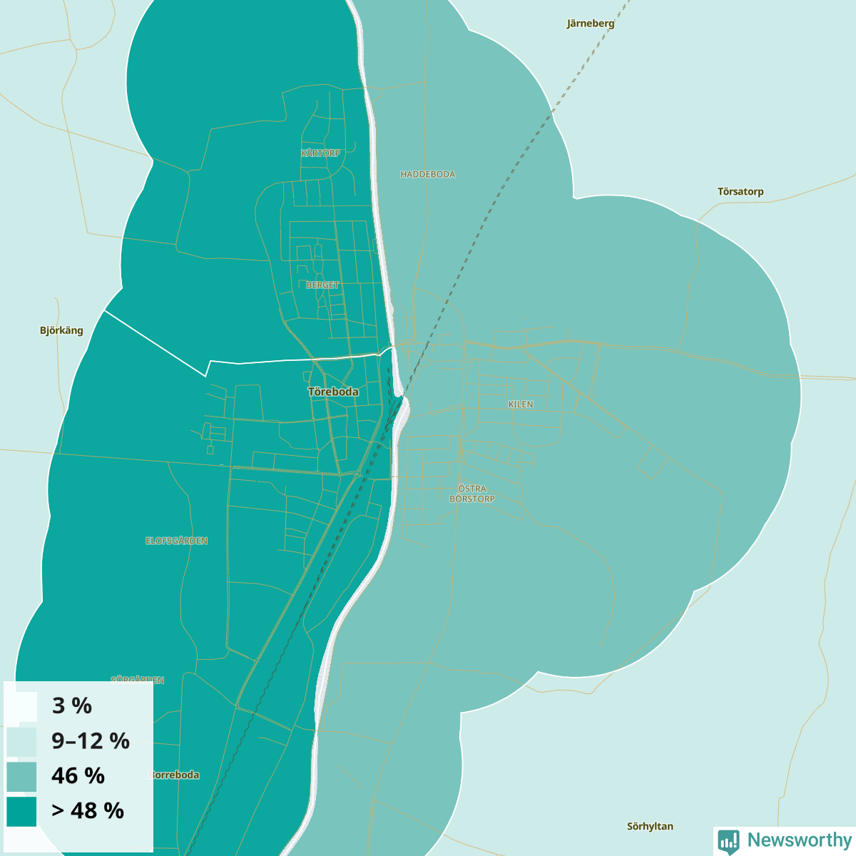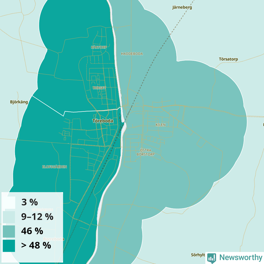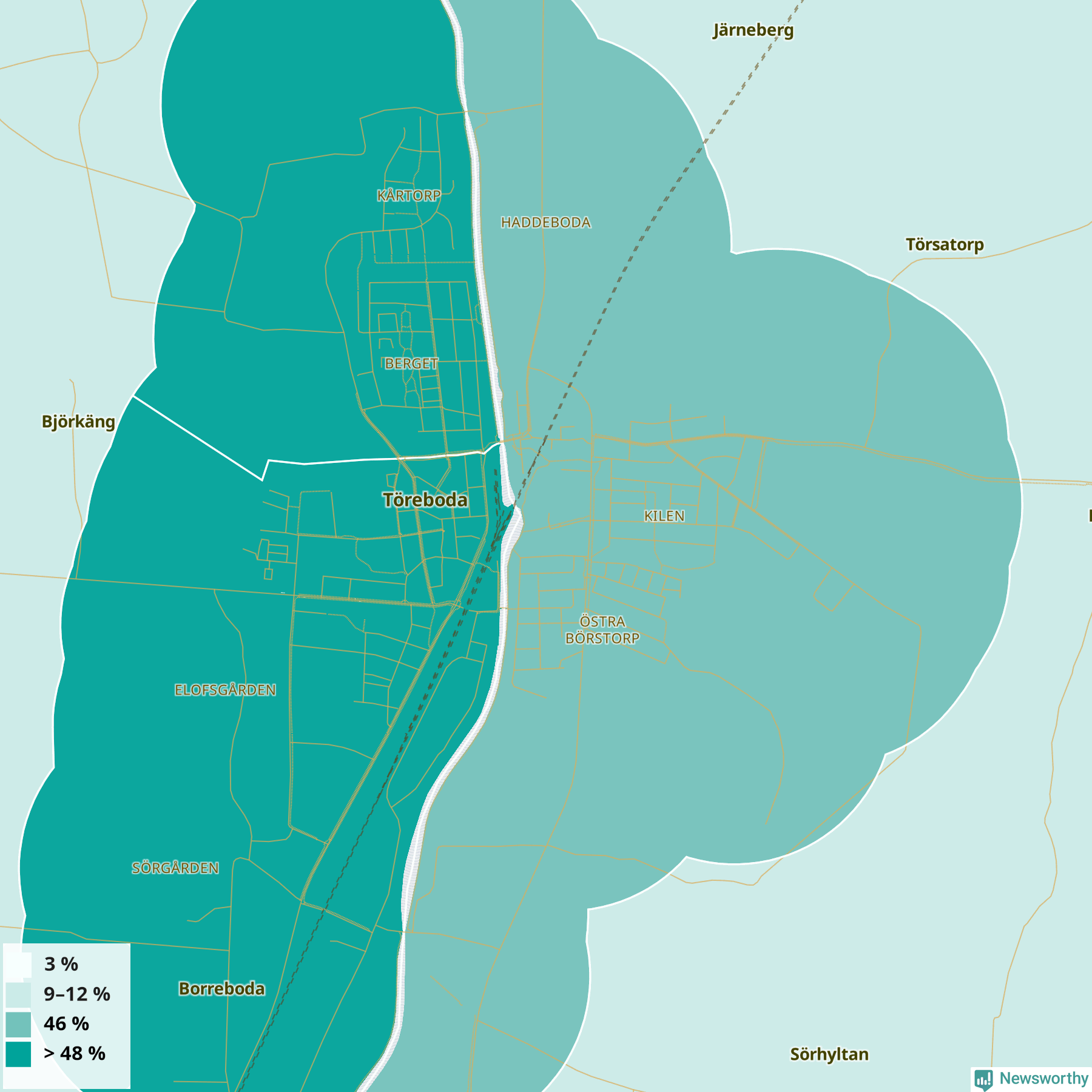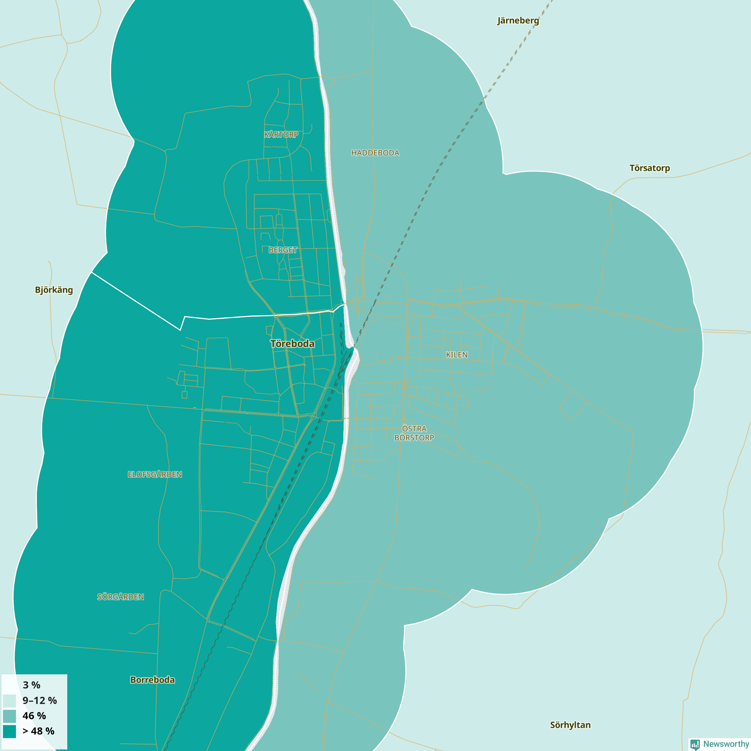 | Töreboda centrum norra-Berget-Kårtorp | 48 % |
