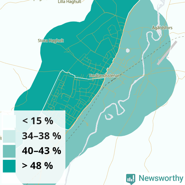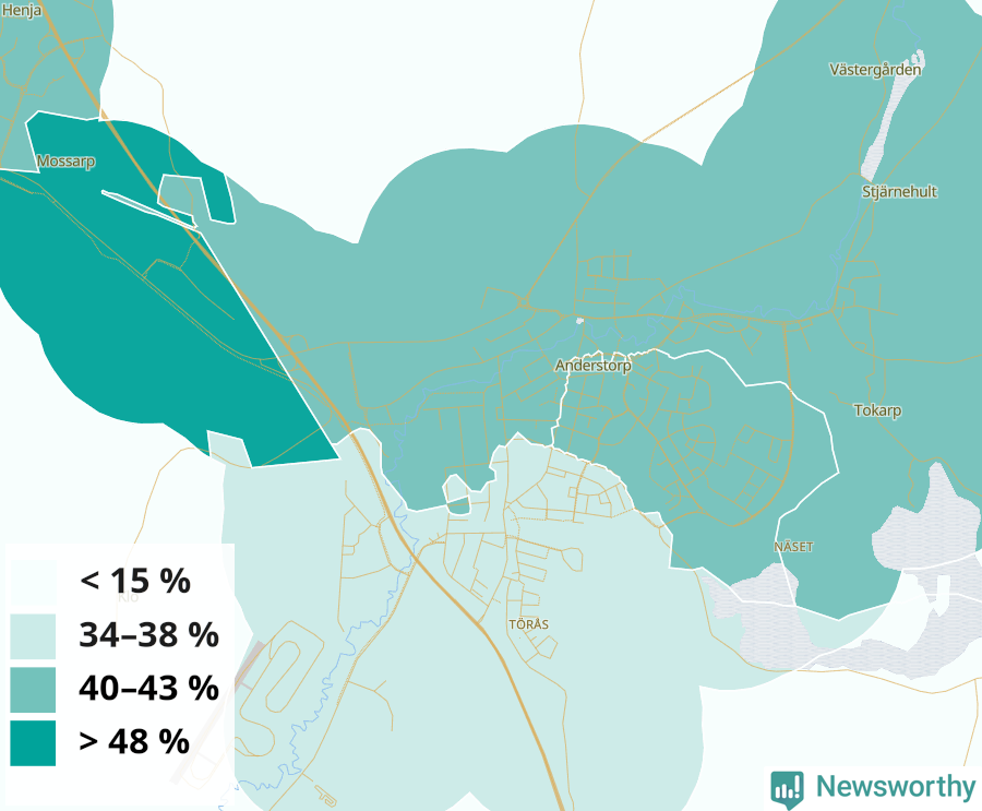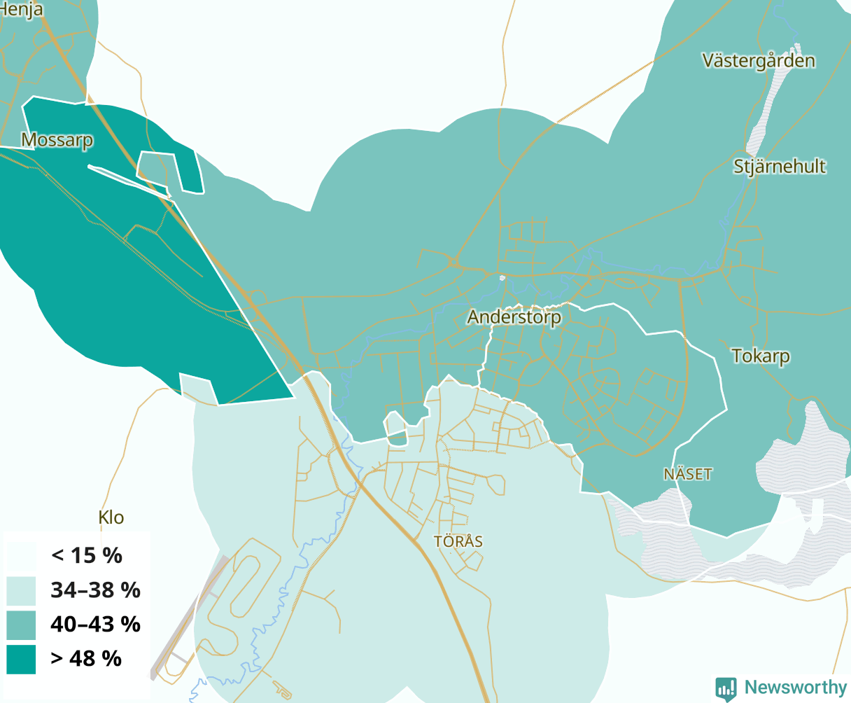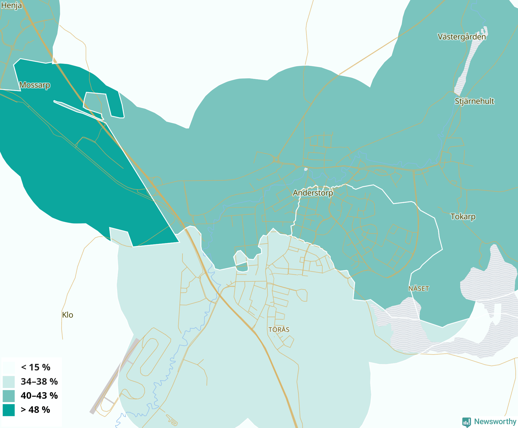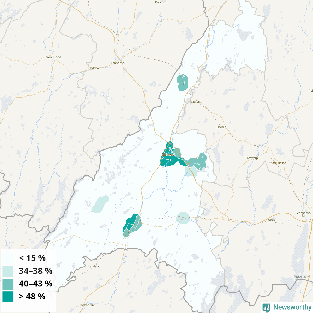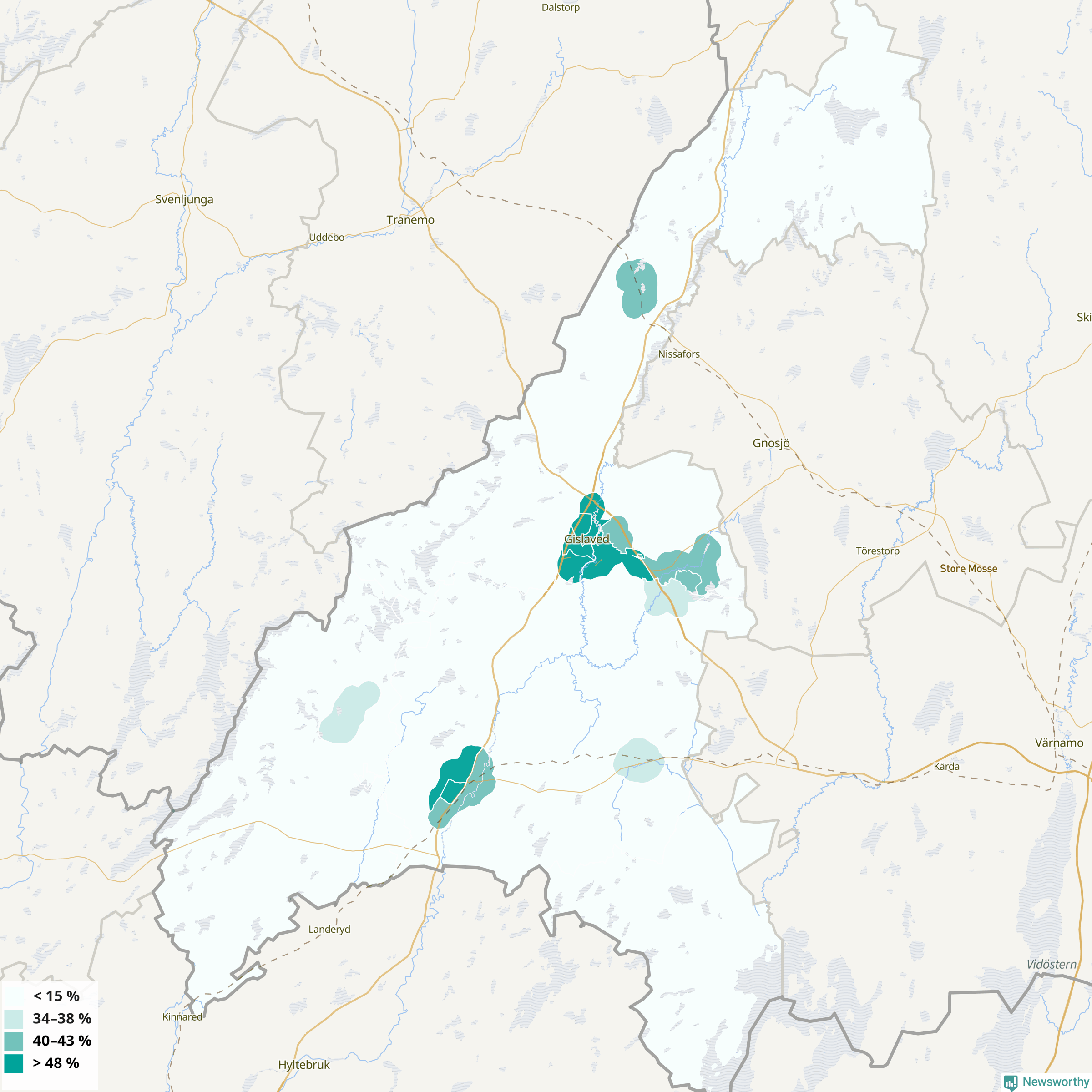 | Nässjö | 40 % | 44 % | 37 % | Nässjö centrum (64 %) |